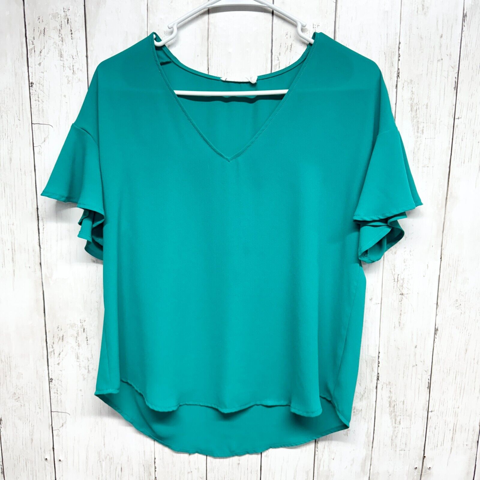 LUSH Blouse Women Size S Deep V Short Sleeve High Low Casual Business Casual