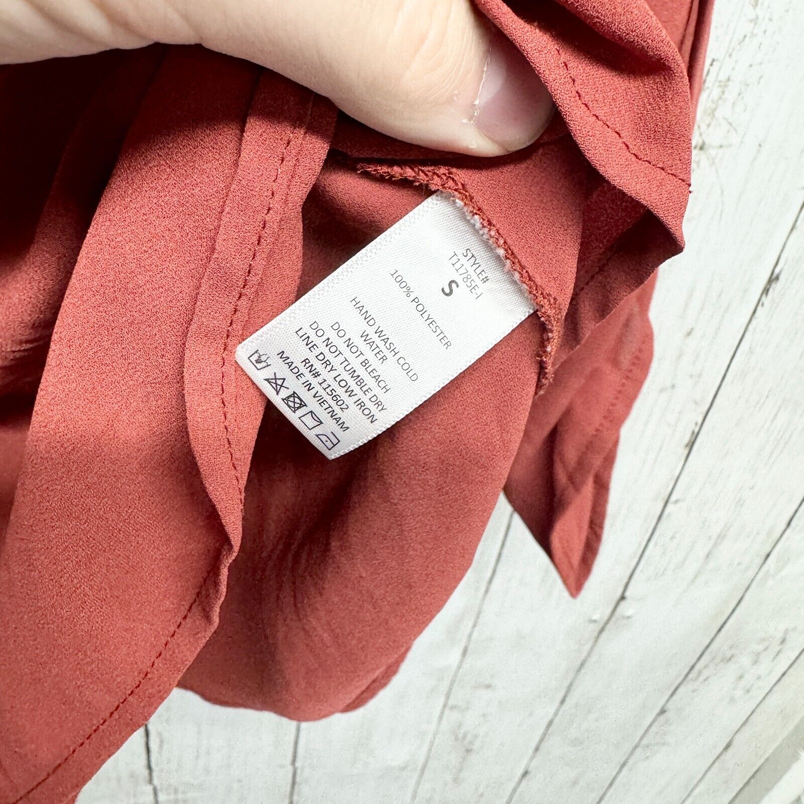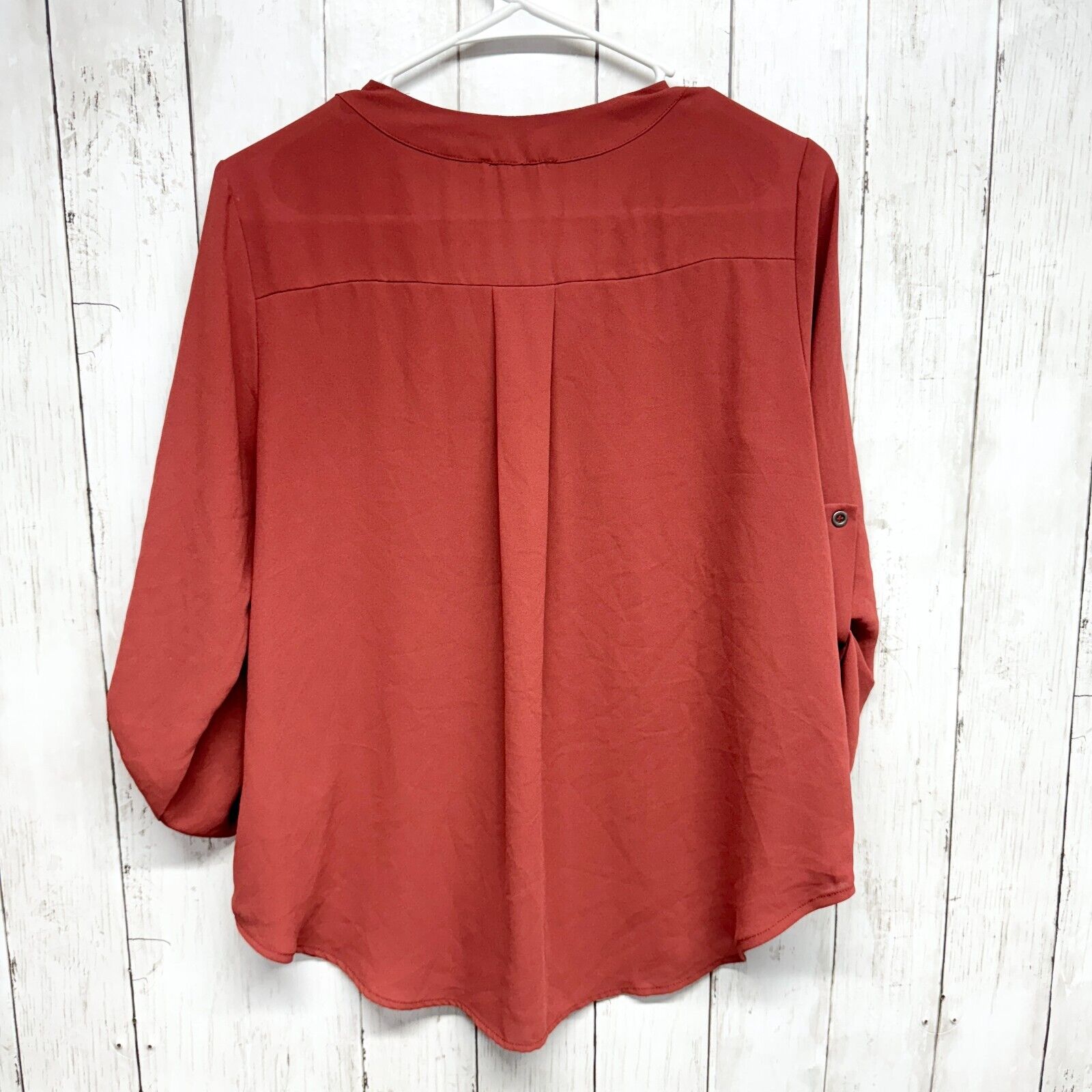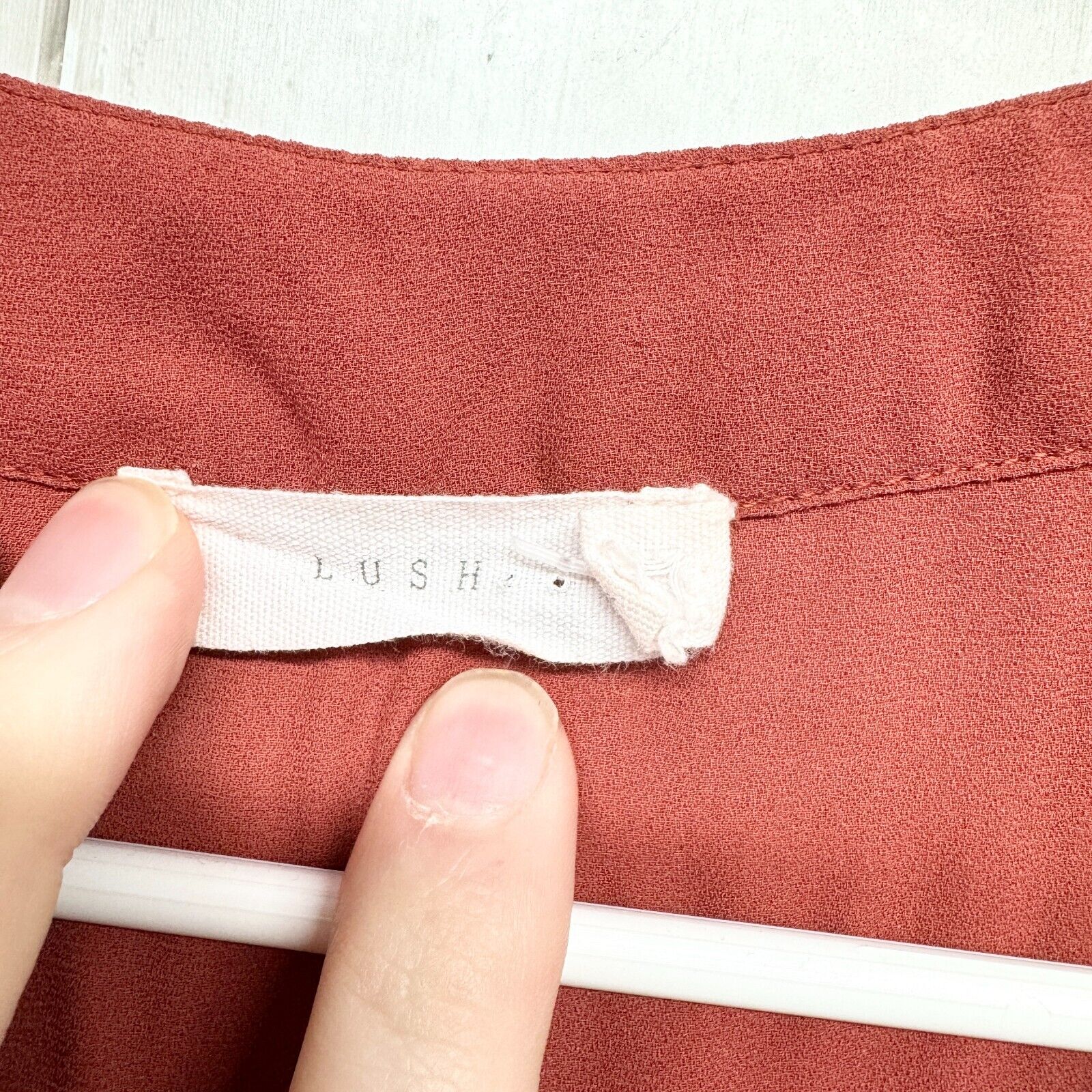 LUSH Blouse Women Small Split Neck Long Sleeve Burgundy Curved Hem Button Cuff
