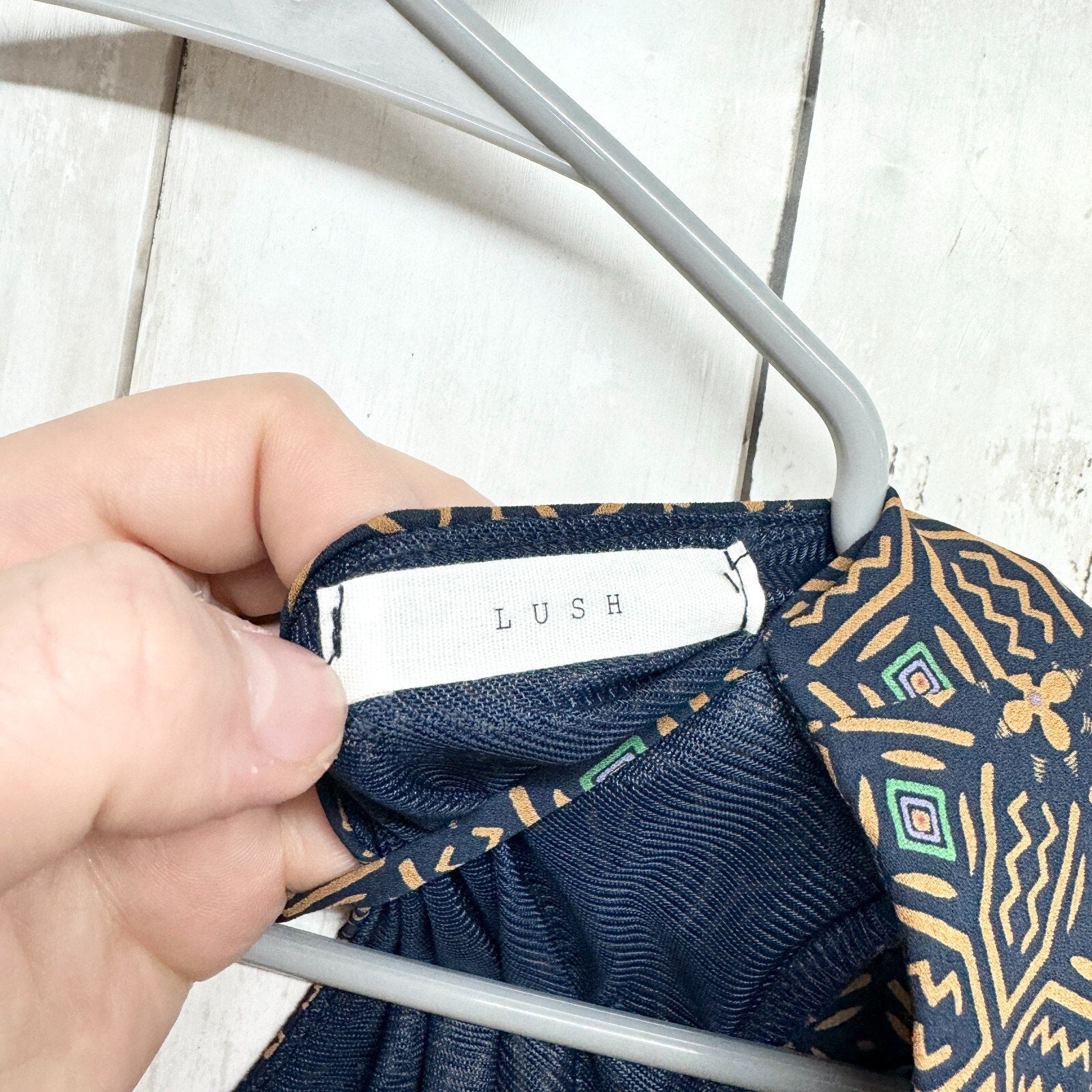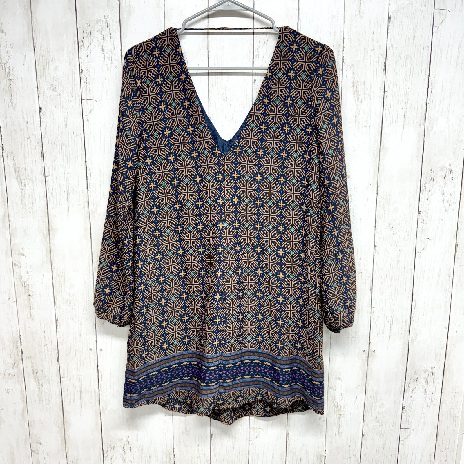 Lush Tunic Dress Women's Small Floral Long Sleeve Back Cut-Out Hi Low Hem Mini