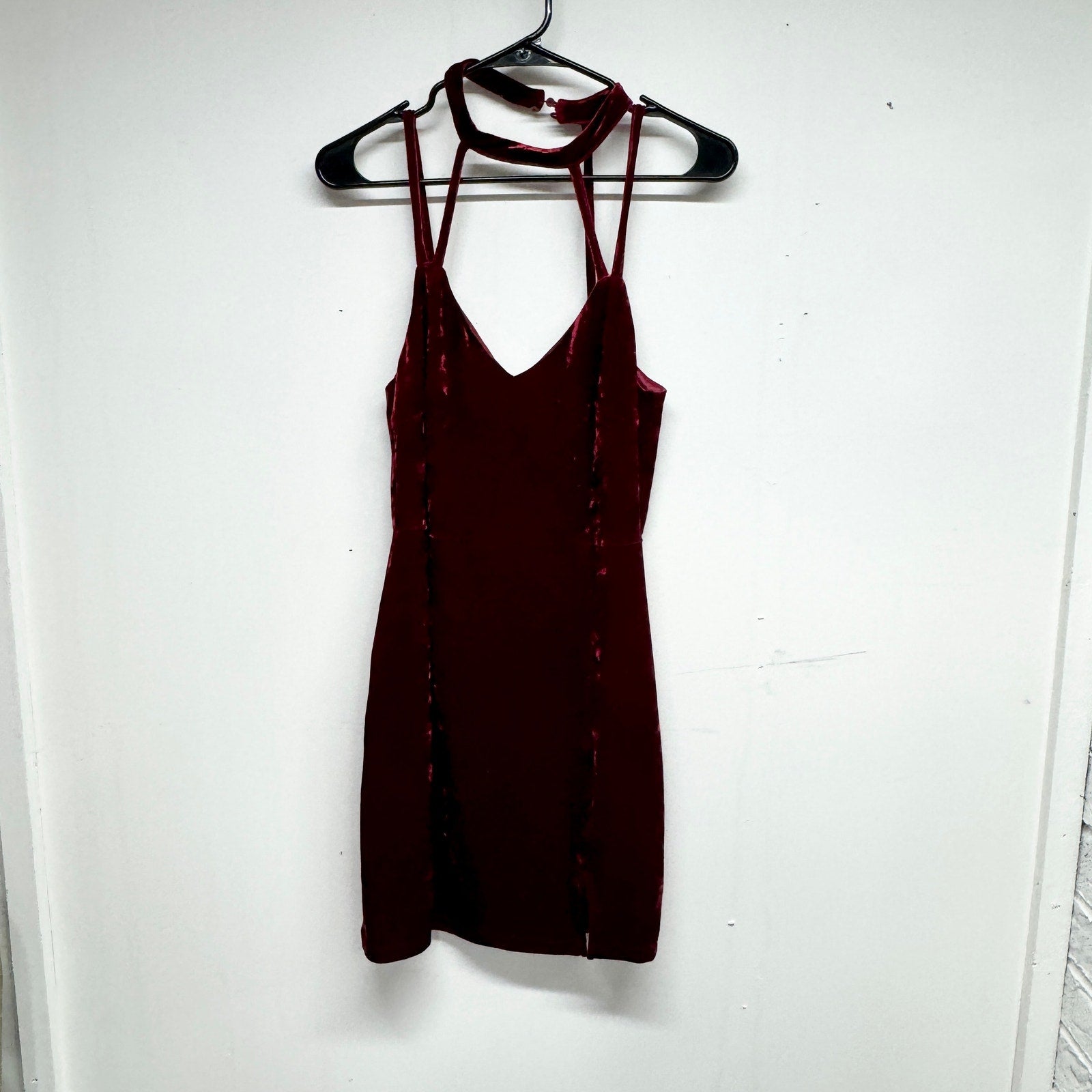Lush Women Red Velvet Halter Neck Sleevless Mini Dress Size Medium