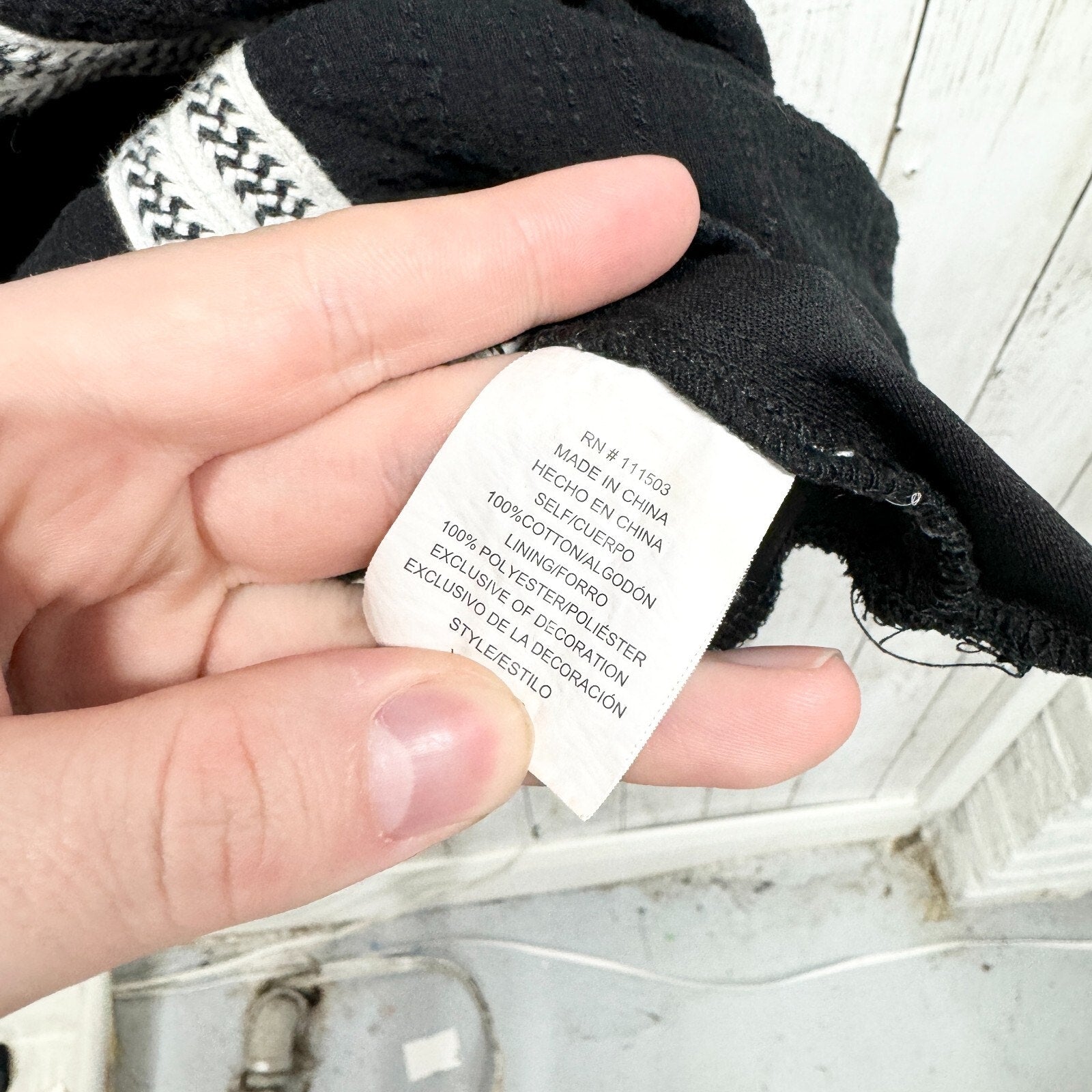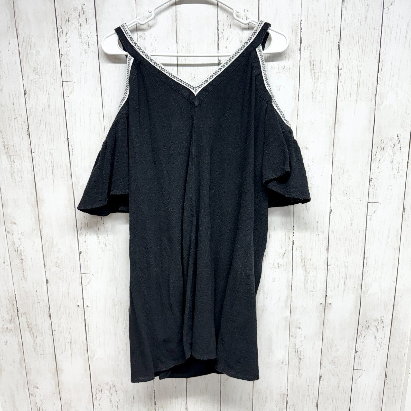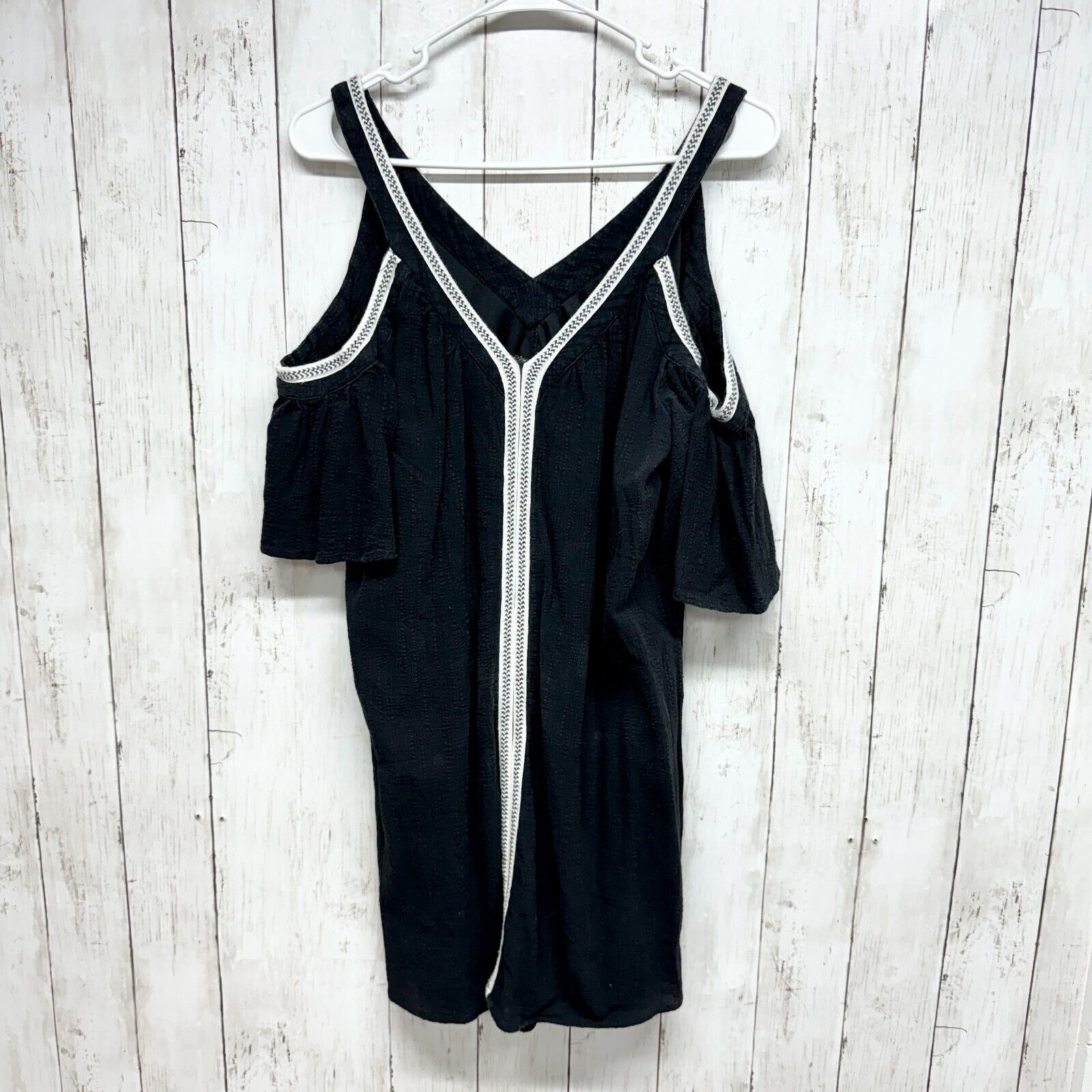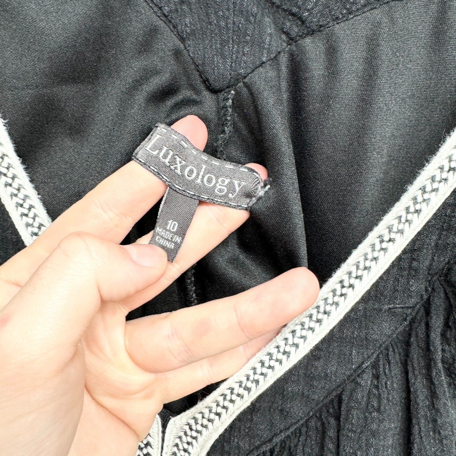LUXOLOGY Dress Women Size 10 Black White Trim Mini Off Shoulder Cotton Boho