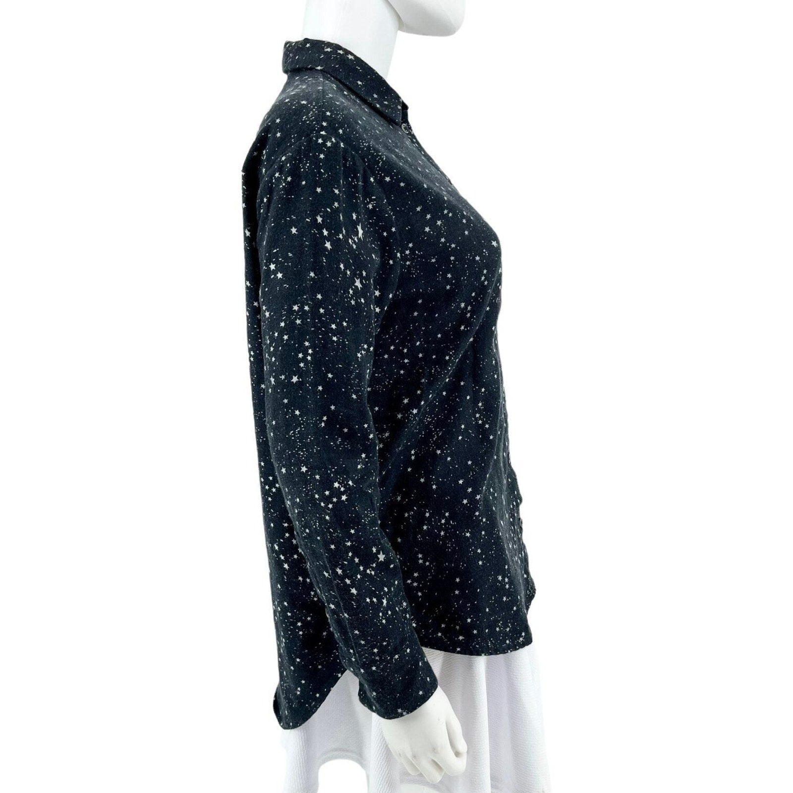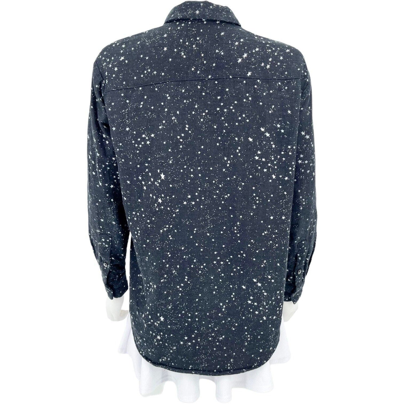 MADEWELL Button Up Shirt Women Size XS Oversized EX Boyfriend Black Star Print oversized fit, ex-boyfriend style, black star print, casual top, trendy design, lightweight fabric, versatile wear, everyday fashion, stylish layering, relaxed silhouette, chic shirt