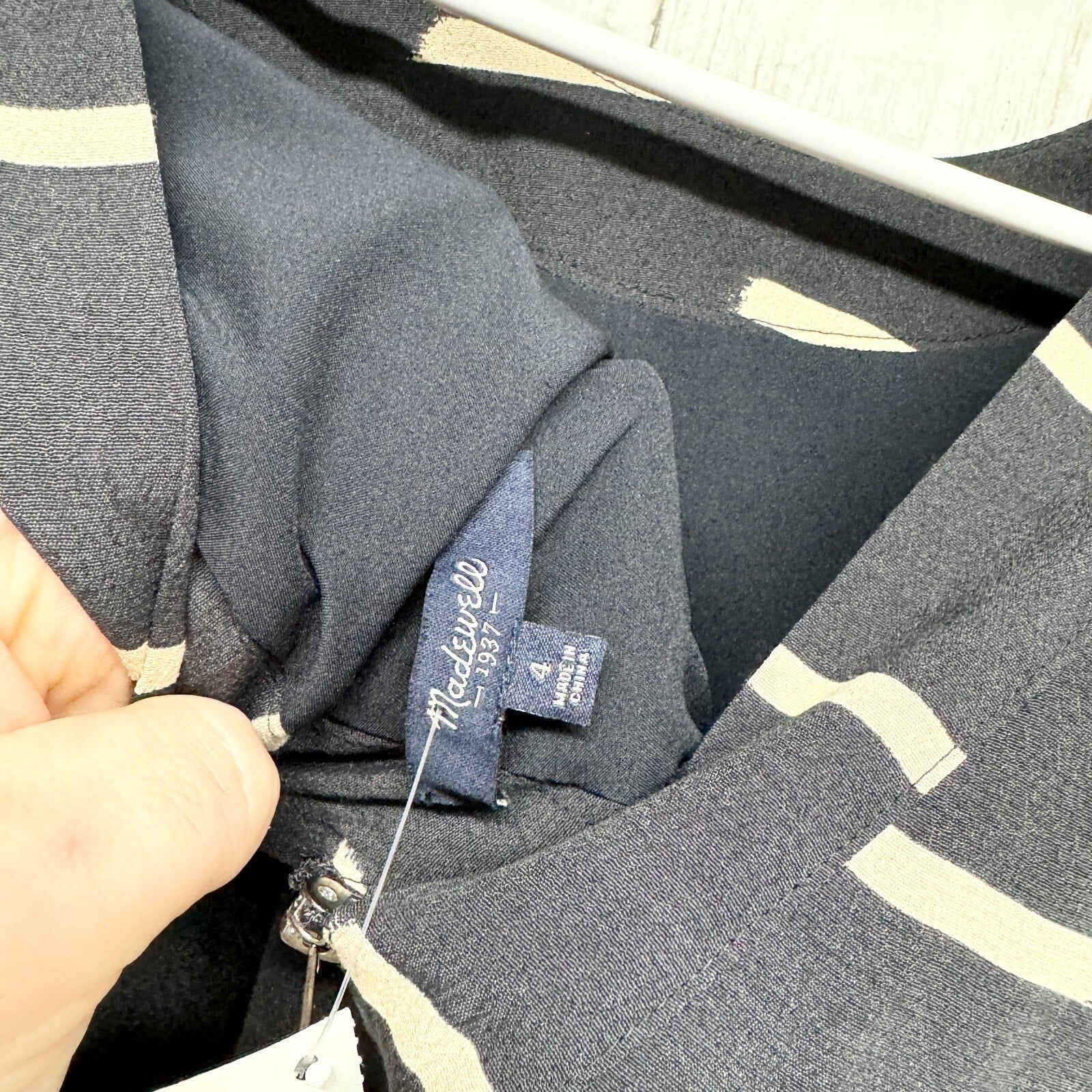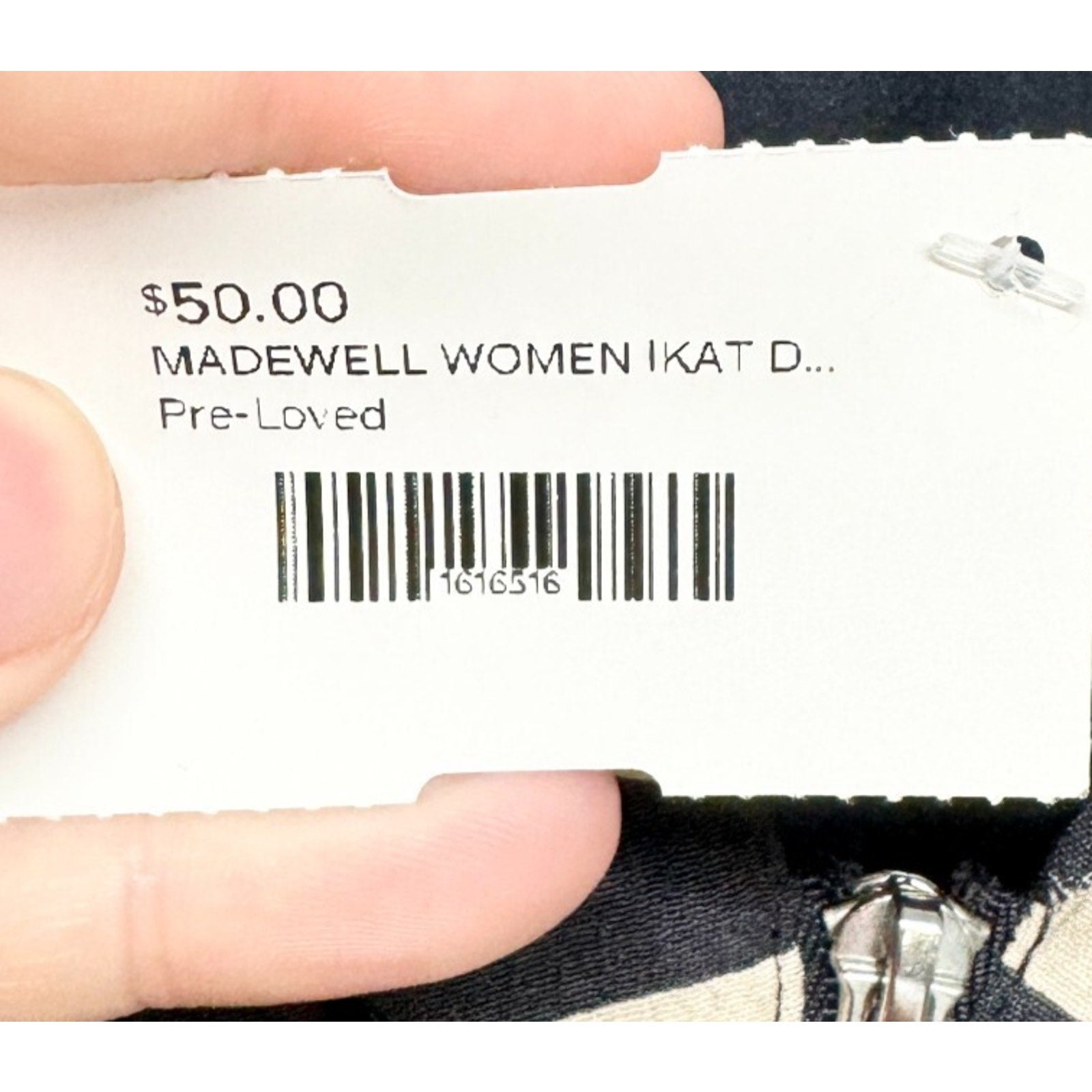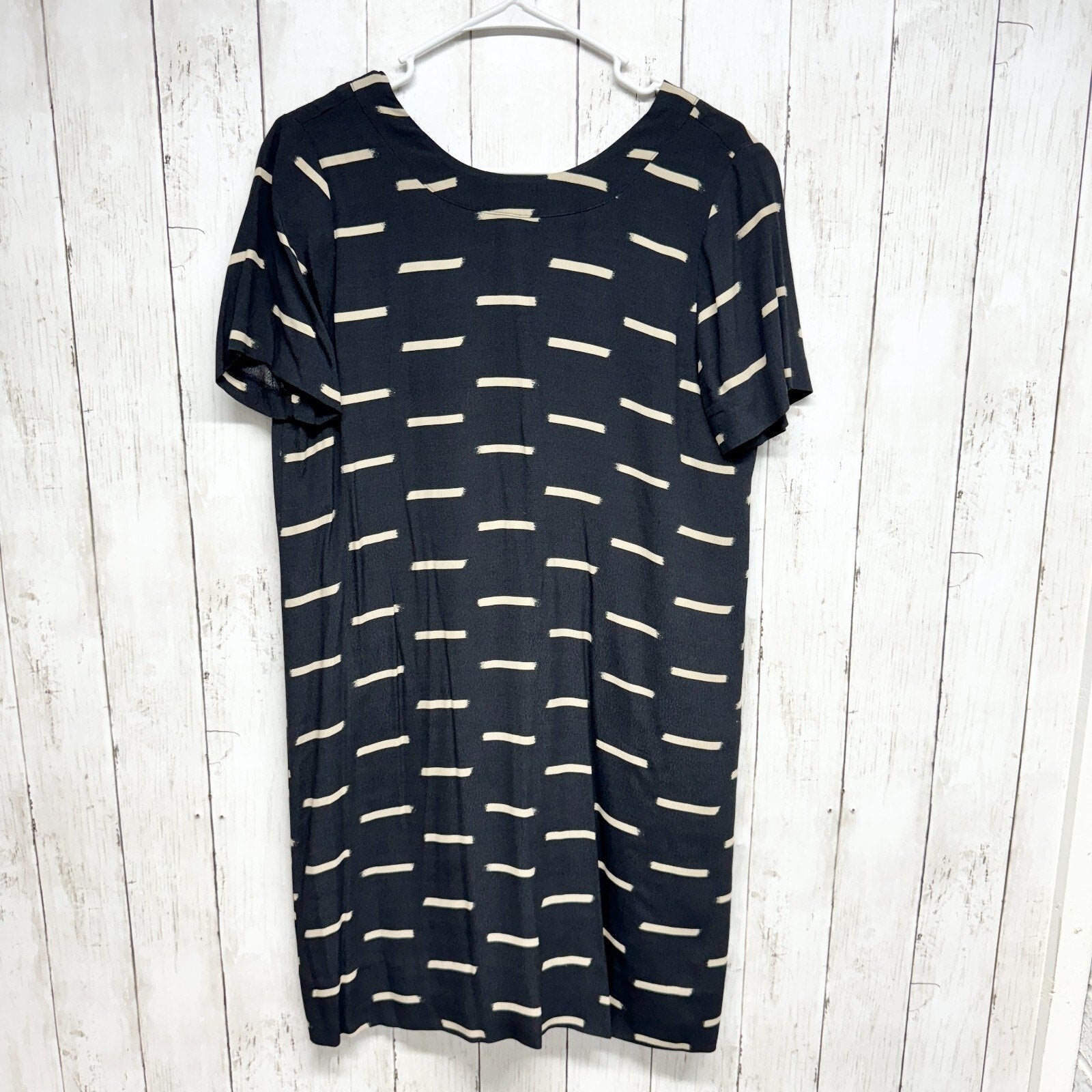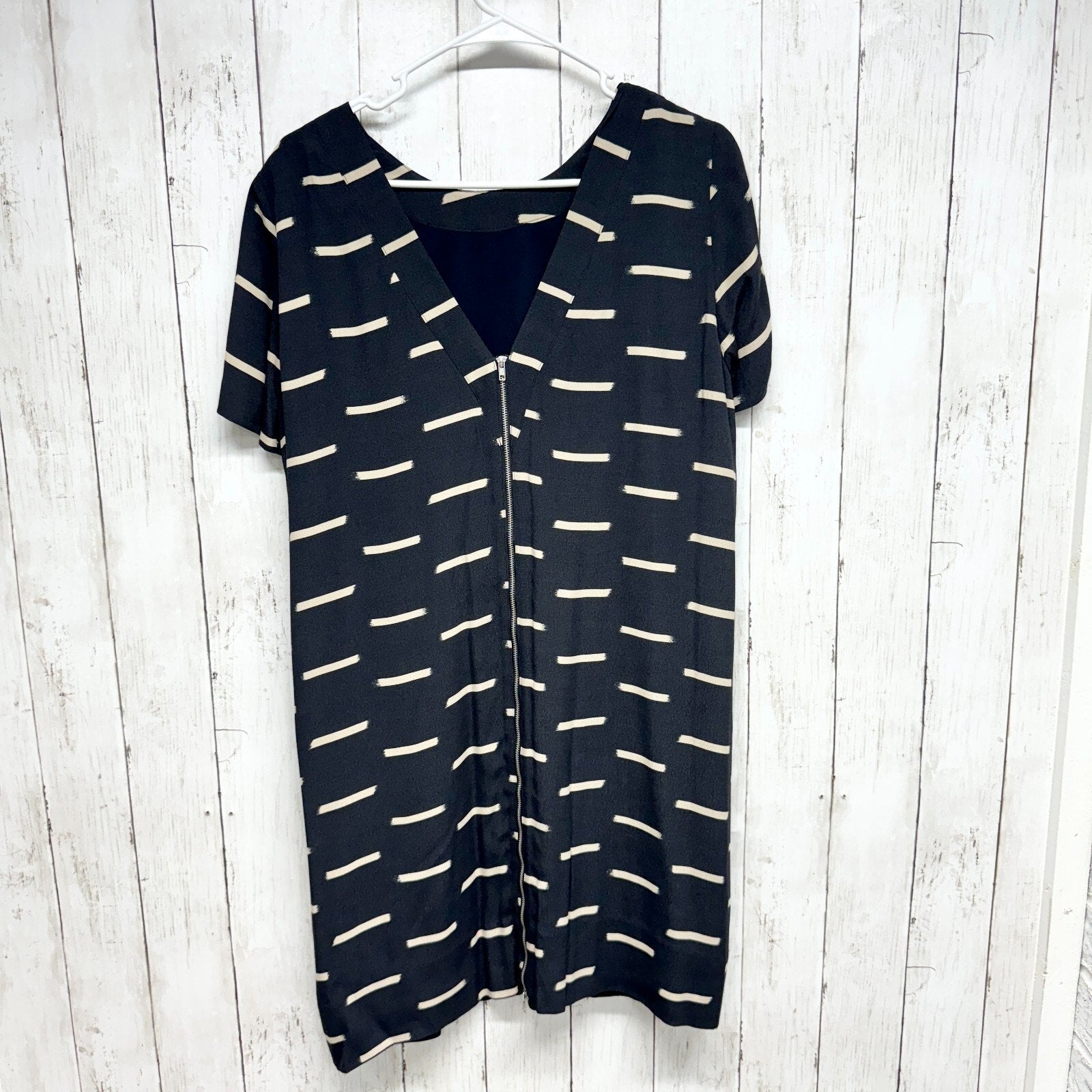 Madewell Dress Size 4 Navy Blue White Ikat Dash Short Sleeve Rear Zip Shift Mini