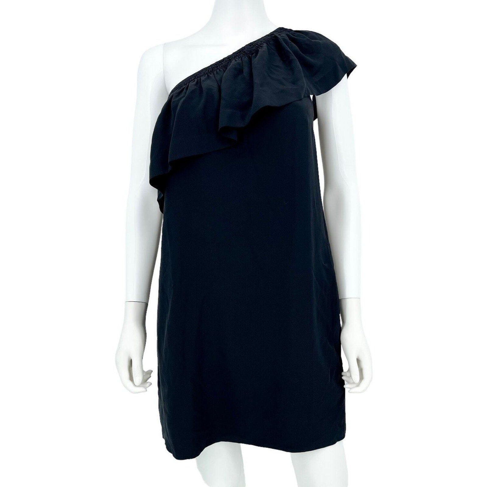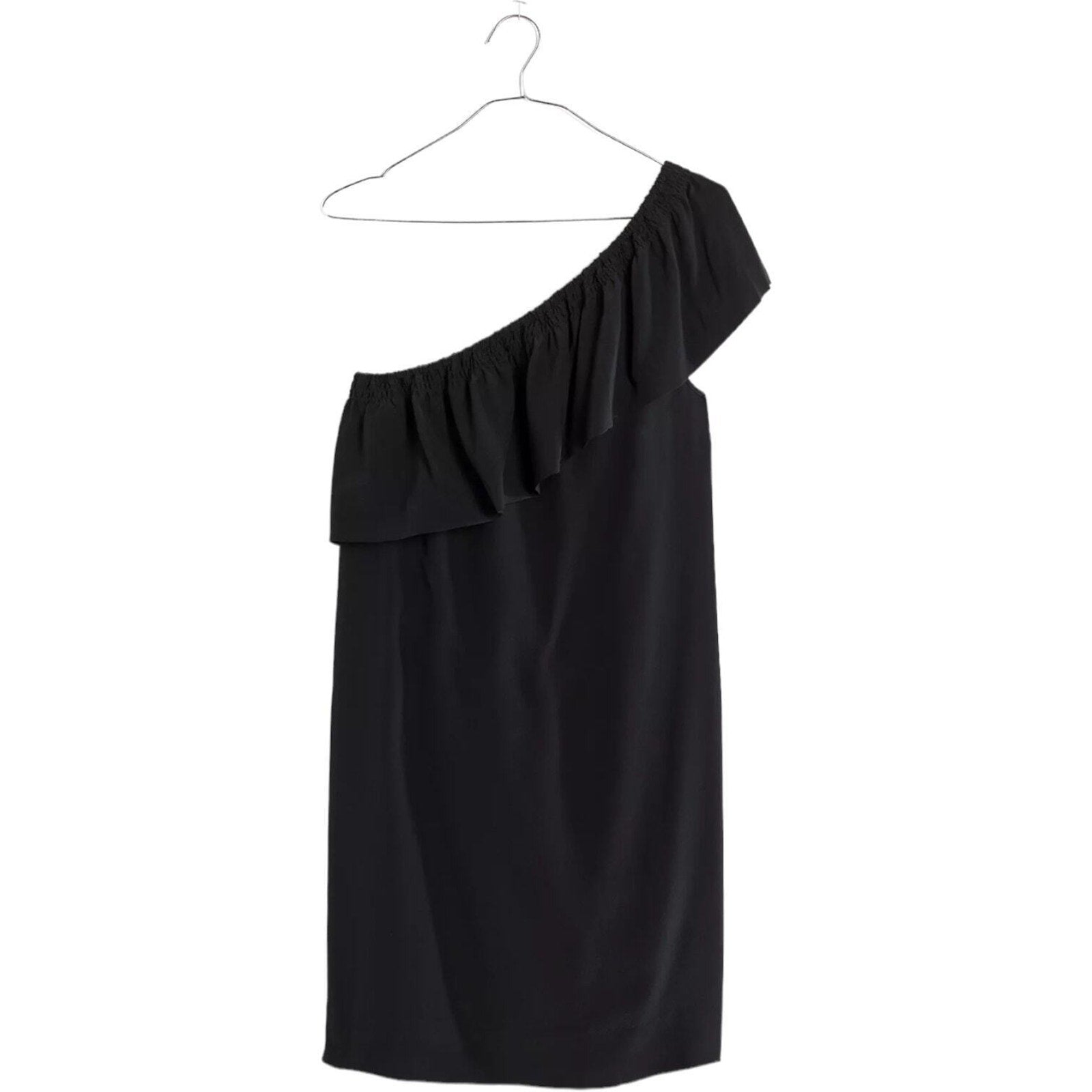 Madewell Dress Women Size 4 Mini Black Asymmetrical Off Shoulder Ruffled Casual