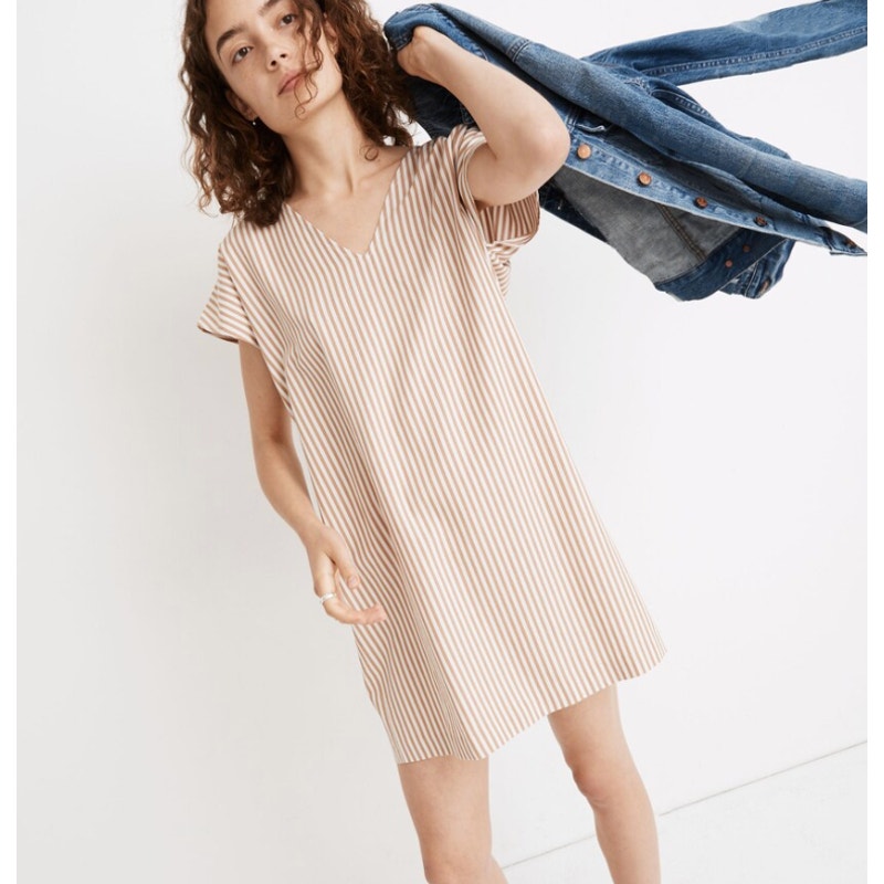 MADEWELL Women Button-Back Easy Short Sleeve Shirt Dress in Stripe Size XXS