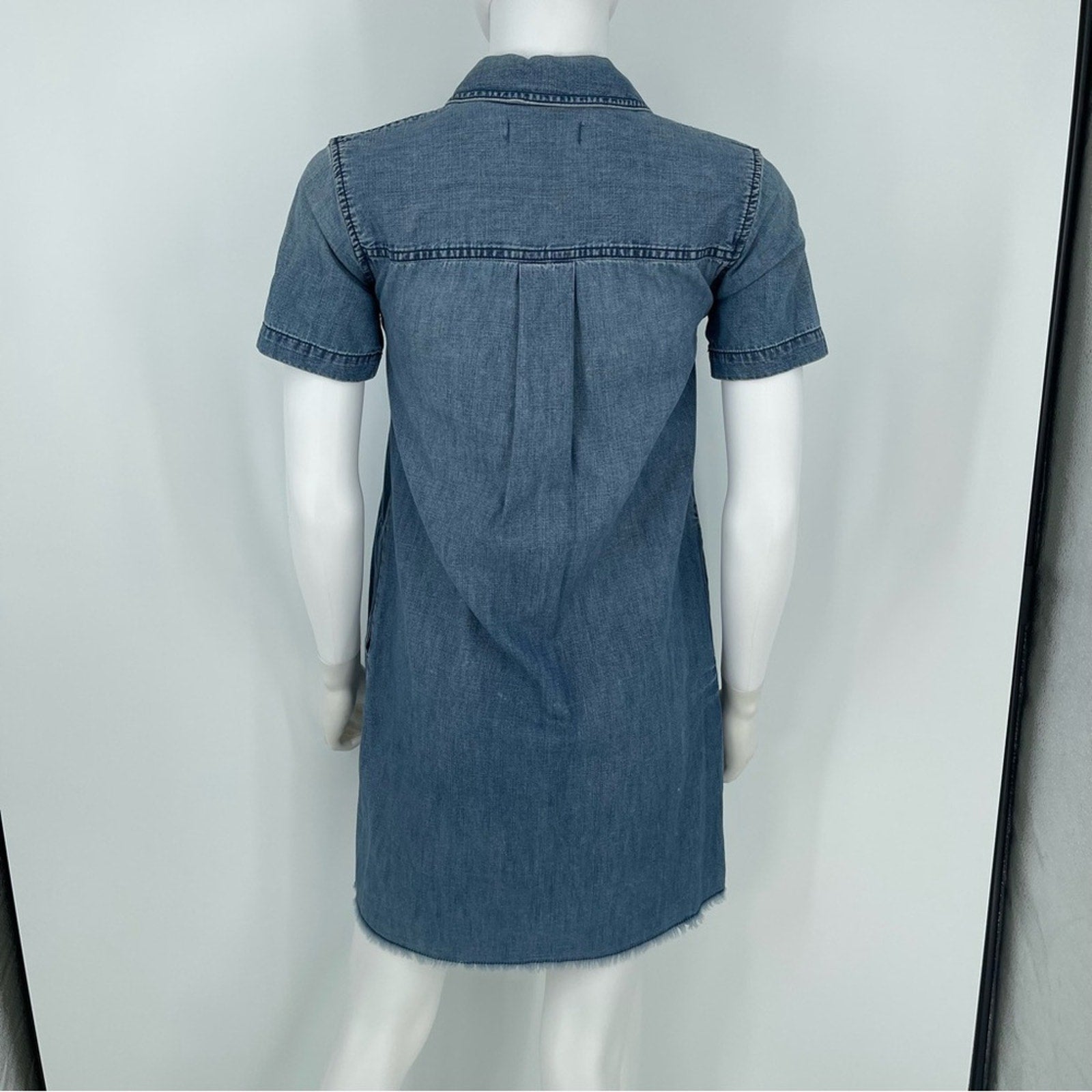 Madewell Women’s Chambray Frayed Hem Button Down Shirt Dress Women XXS