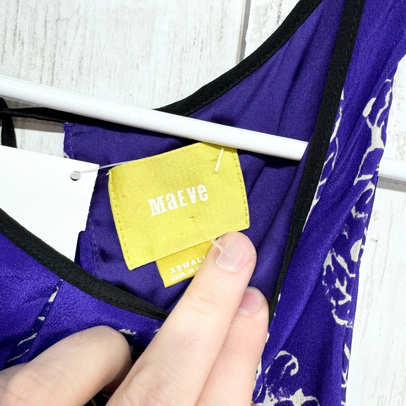Maeve Dress Women's Size XS Silk Purple Floral Petal Stamp Shift Pleated Pockets