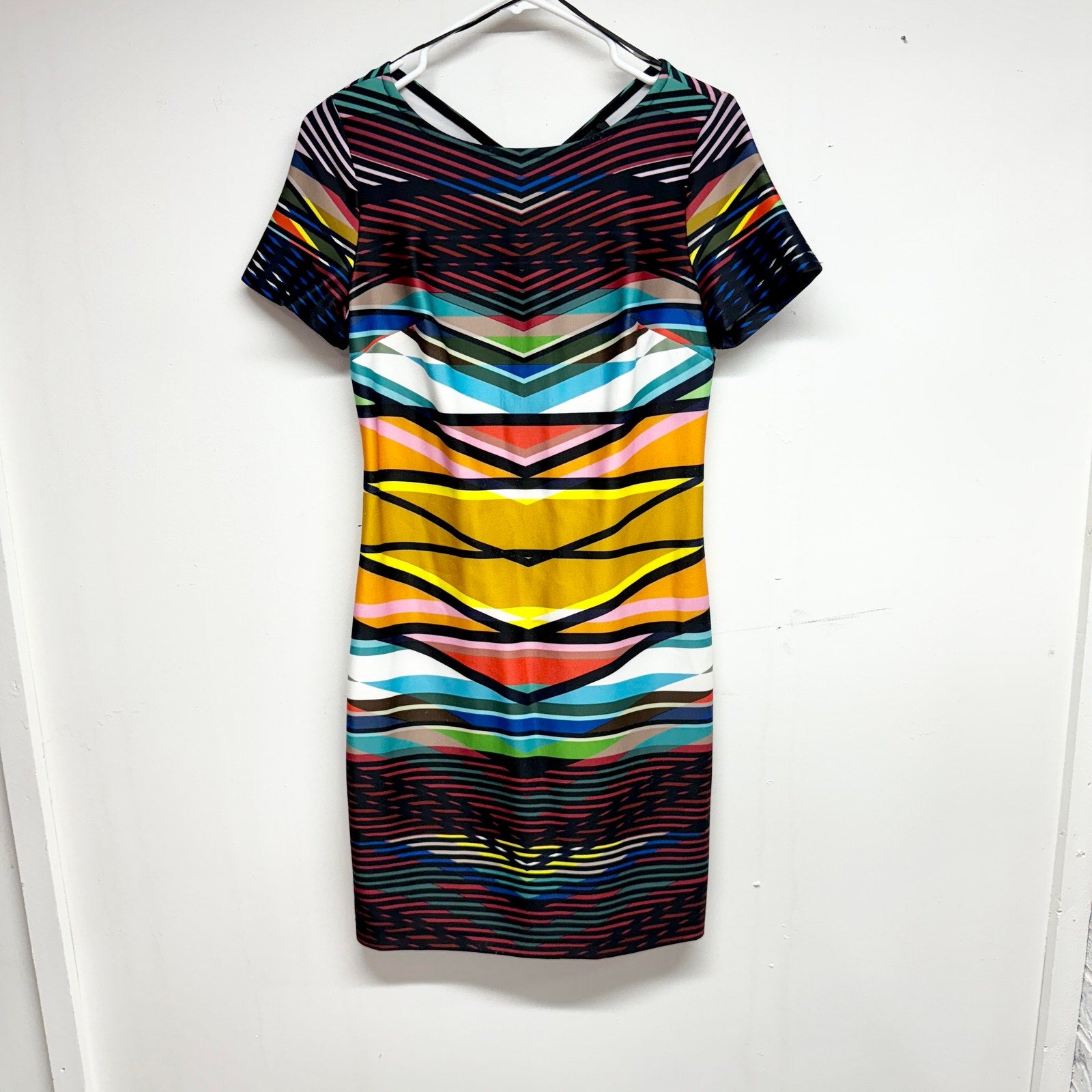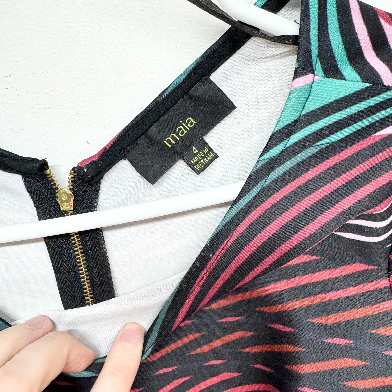 Maia Womens Multicolor Zip Up Mini Short Sleeve Dress Size 4
