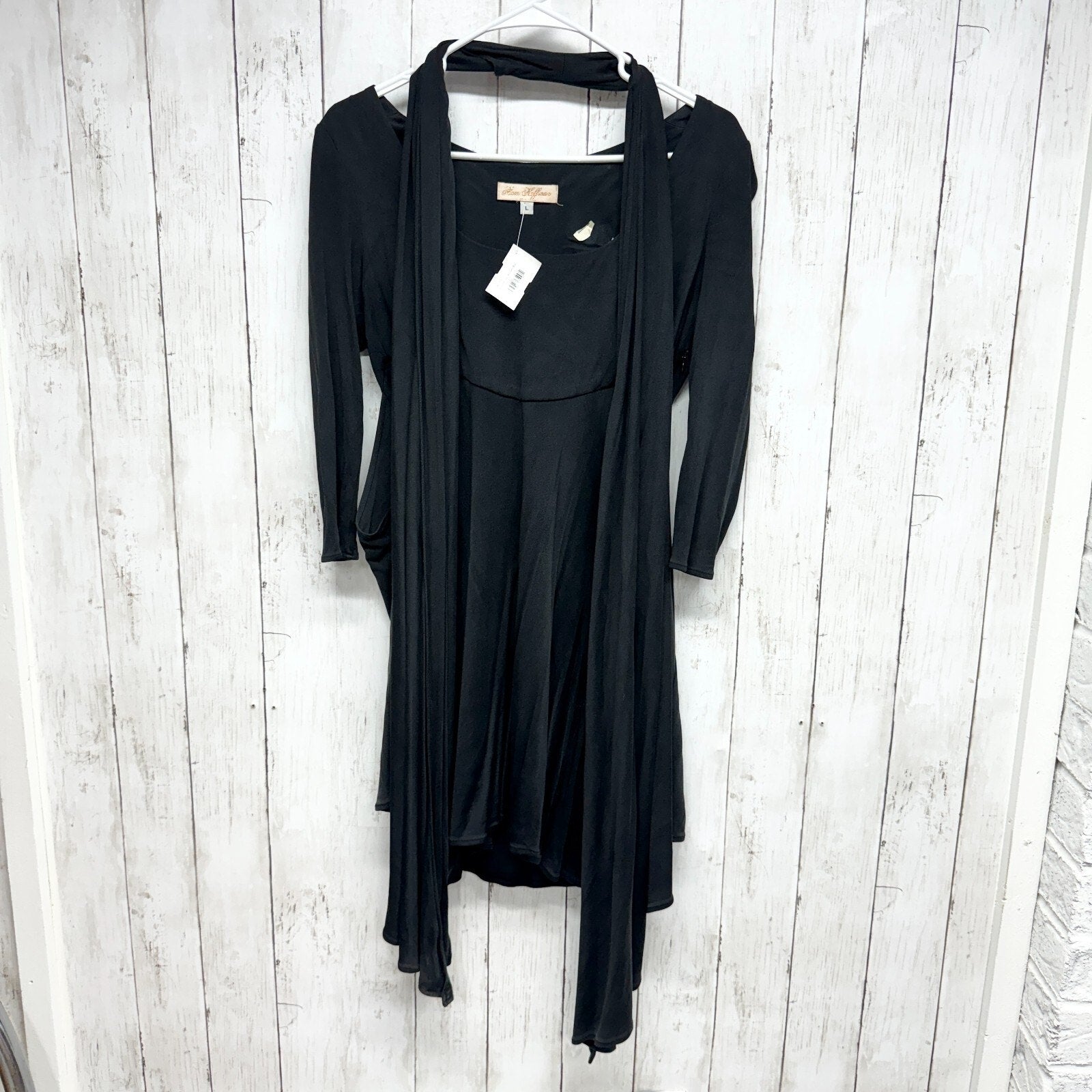 Mara Hoffman Dress Women Size L Vintage Black Long Sleeve Mini Draped 100% Silk