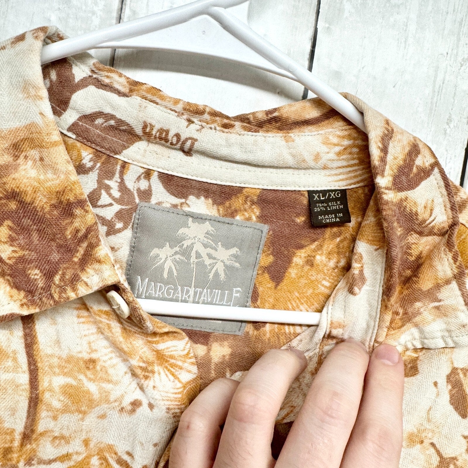 Margaritaville Mens Sz XL Short Sleeve Silk Shirt Hawaiian Jimmy Buffett Tropic