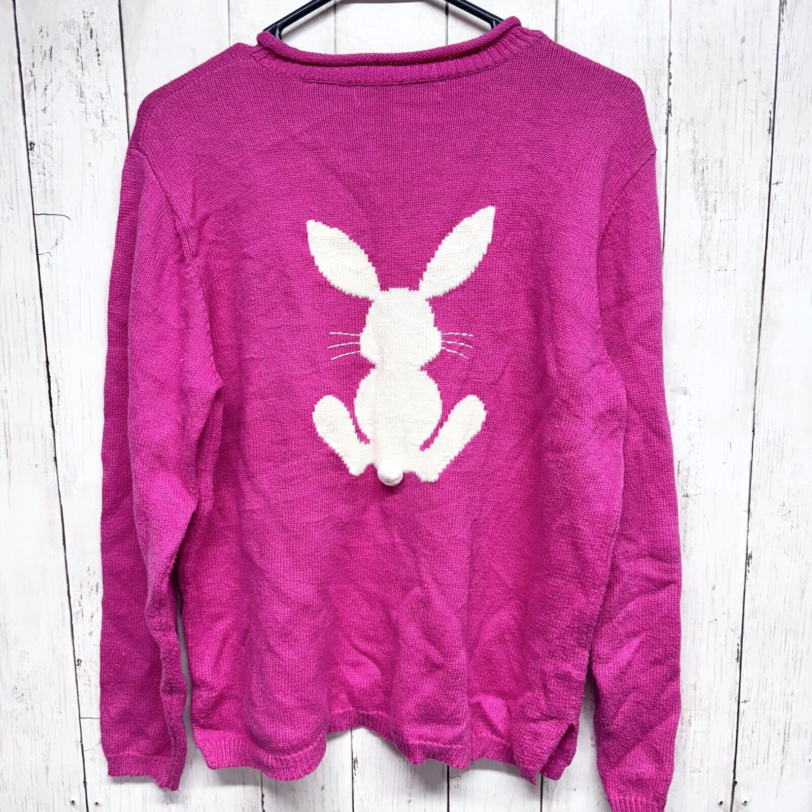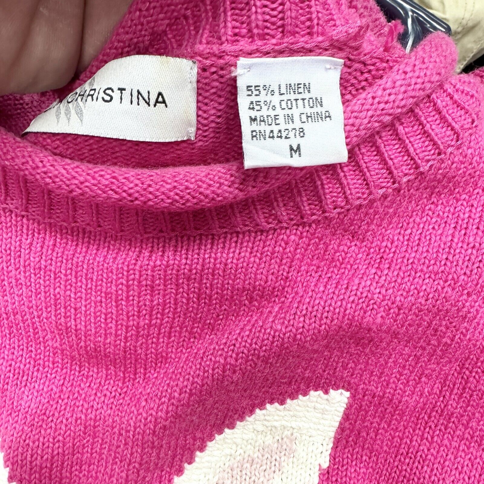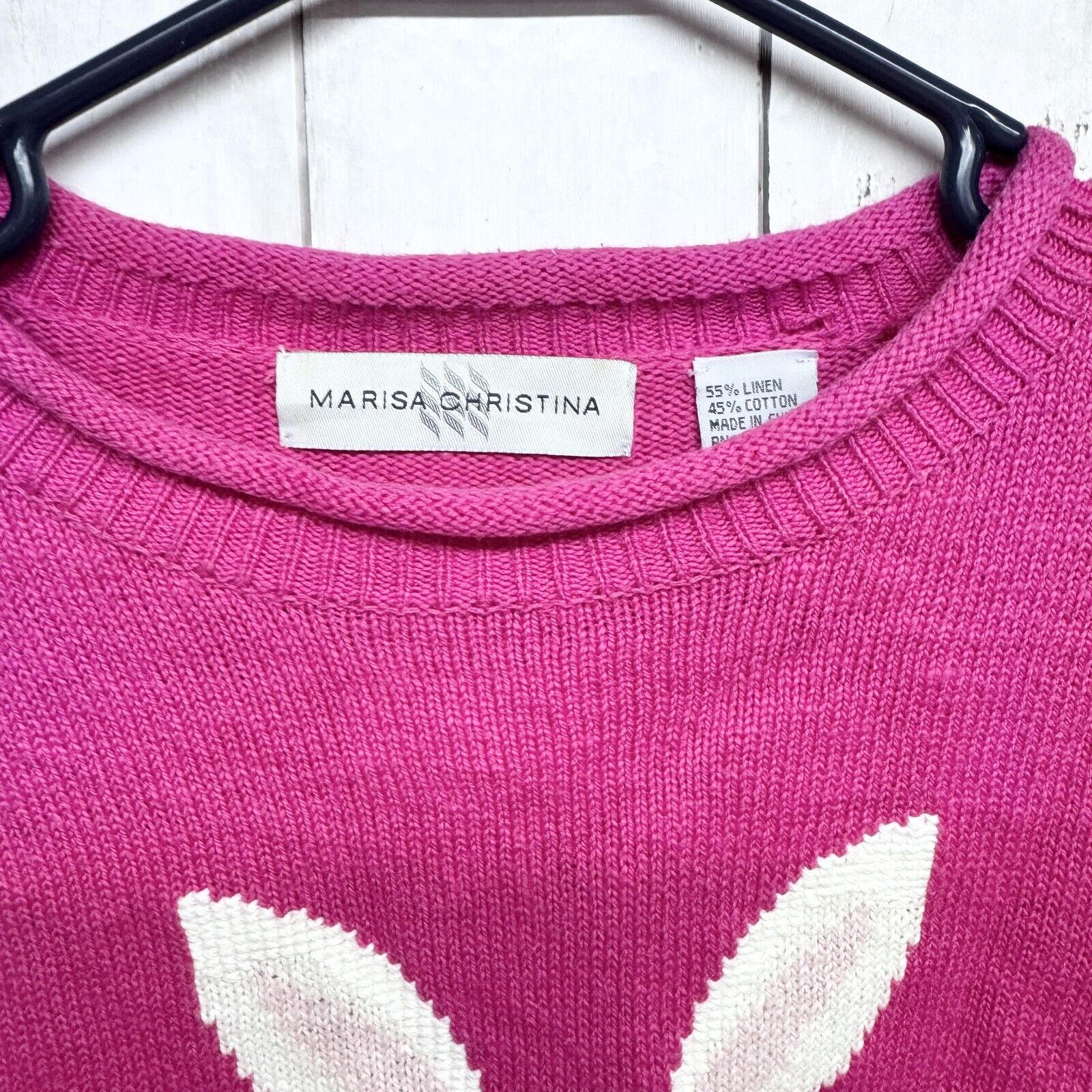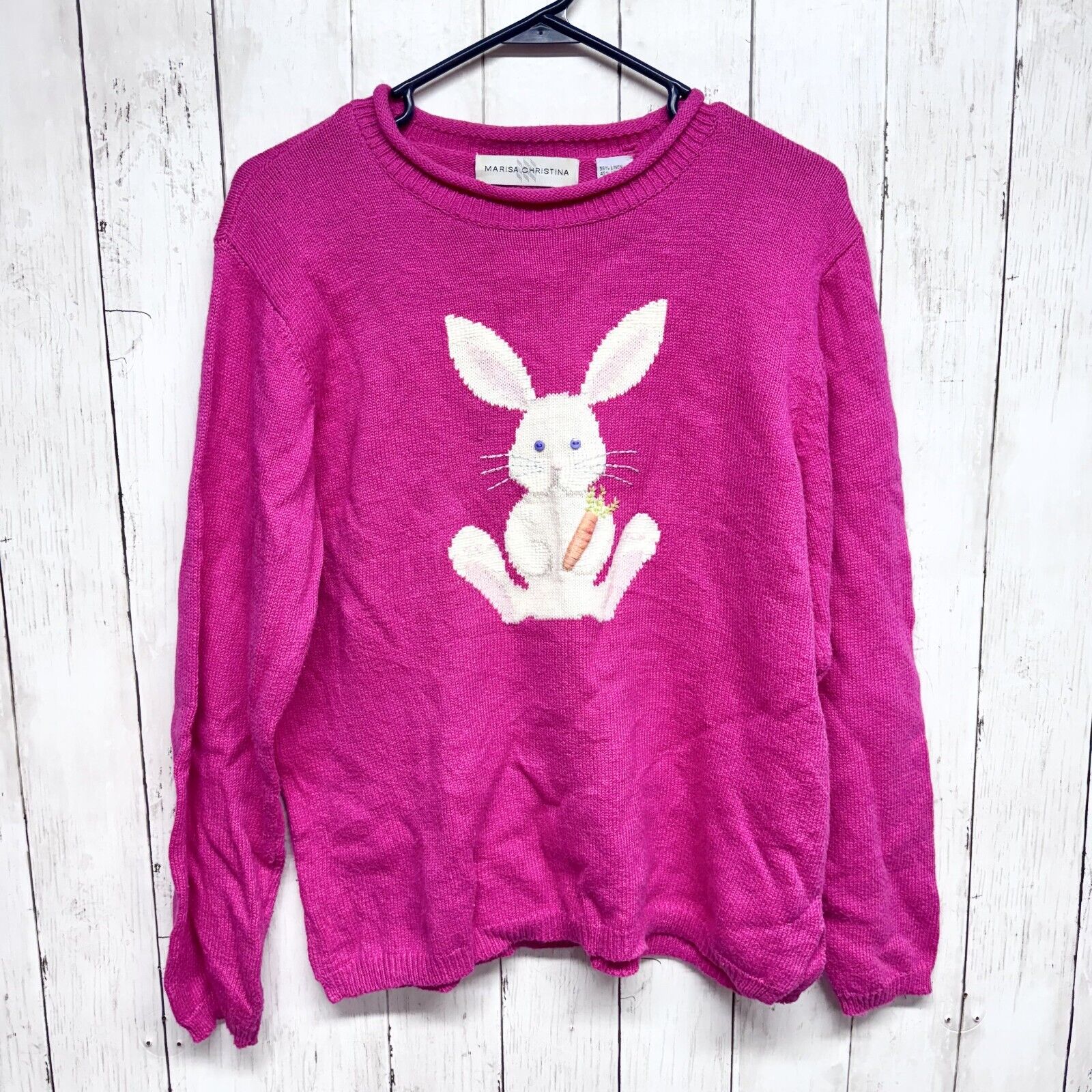 Marisa Christina Sweater Women M Crewneck Bunny Rabbit Hot Pink Linen Cotton
