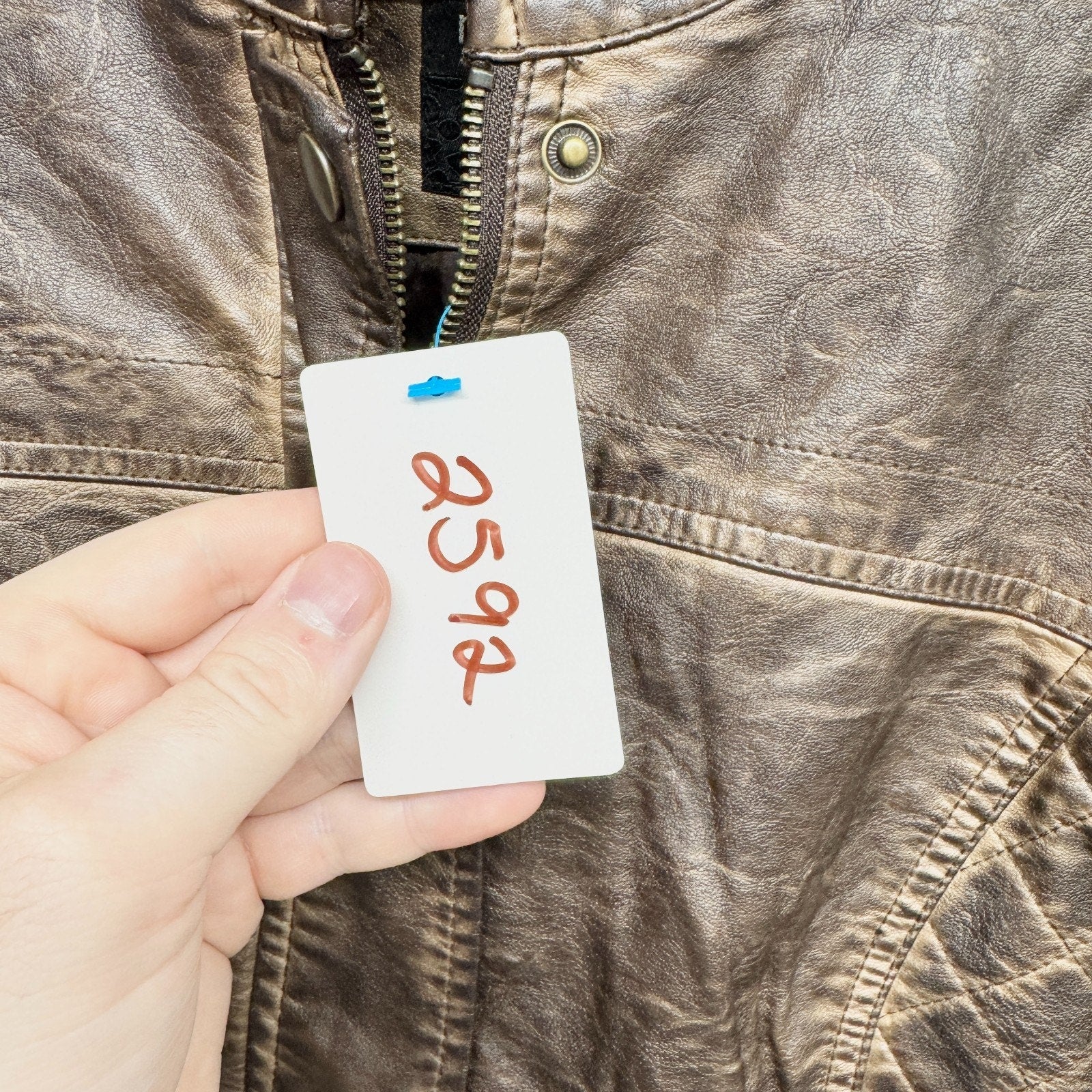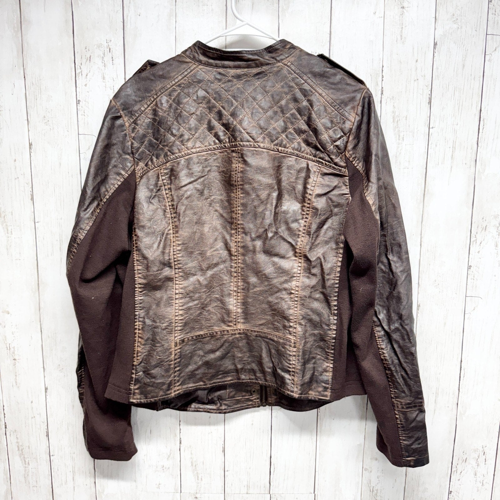 Maurices Jacket Women Size 2 Brown Distressed Faux Leather Collared Quilted Bomber Grunge