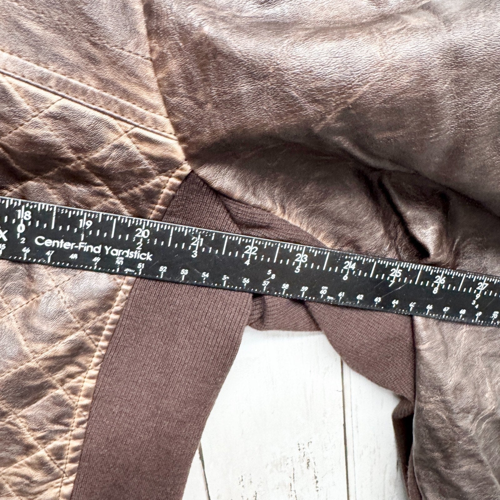 Maurices Jacket Women Size 2 Brown Distressed Faux Leather Quilted Bomber Grunge