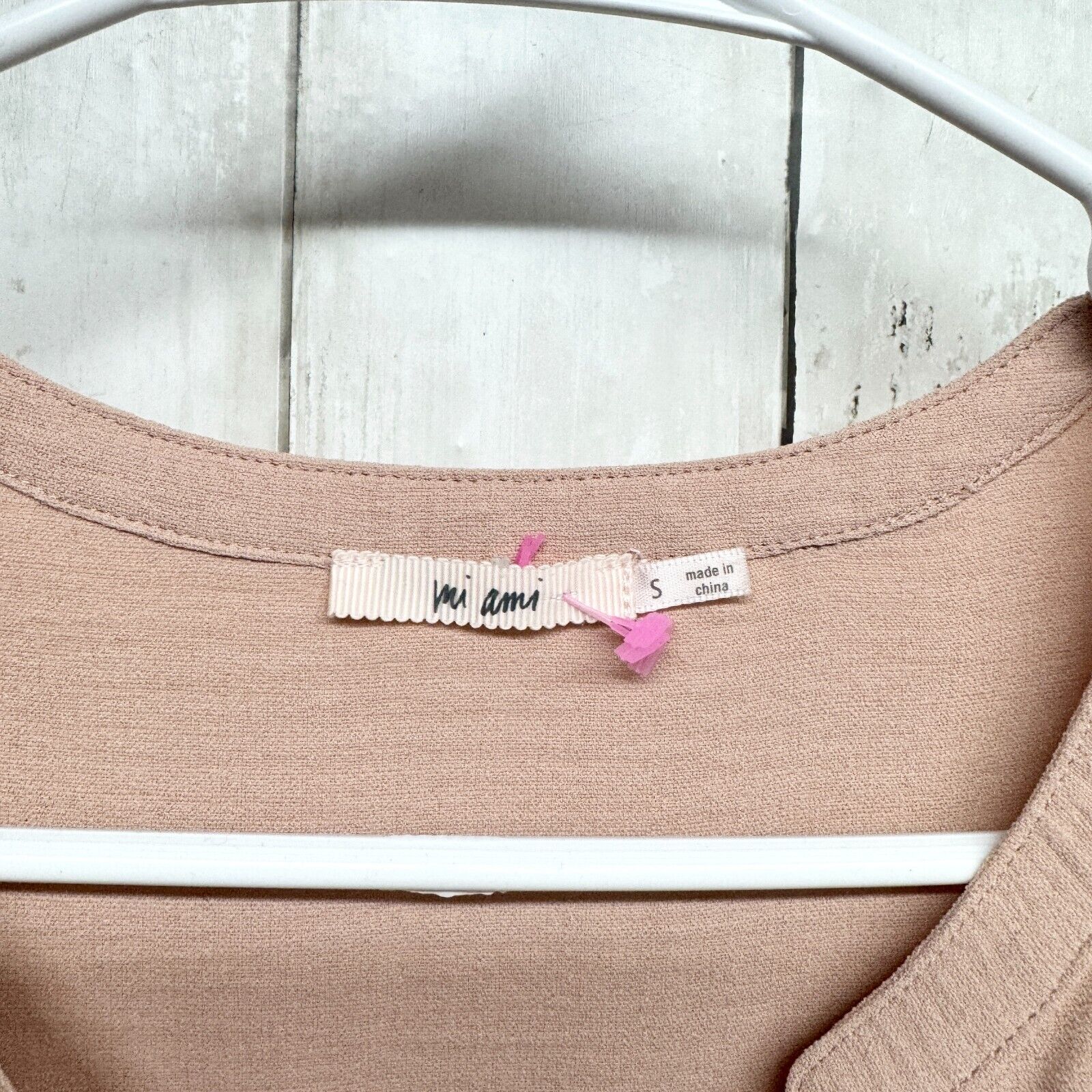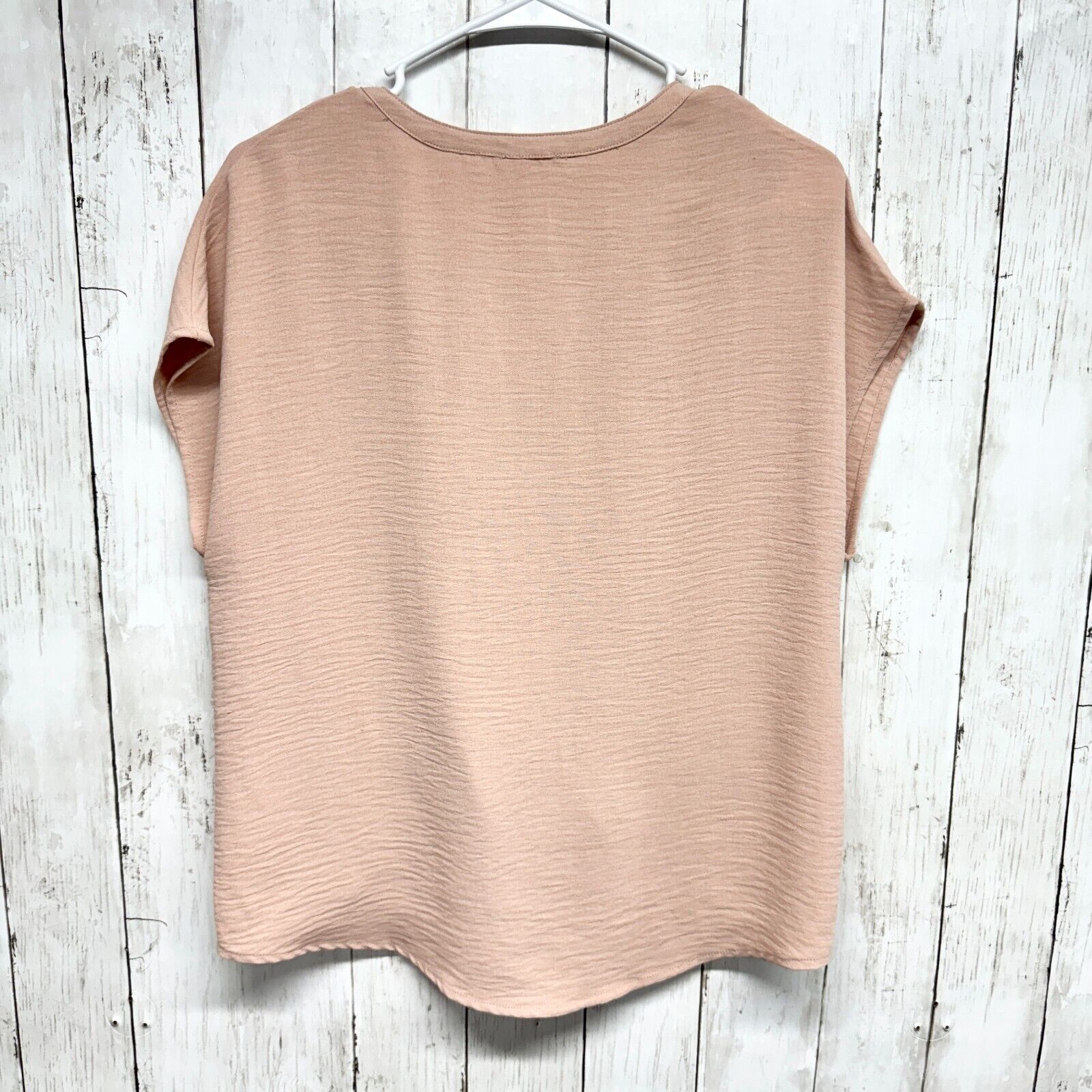 MI AMI Blouse Women Size Small Crossover Blush Deep V Short Sleeve Button Snap