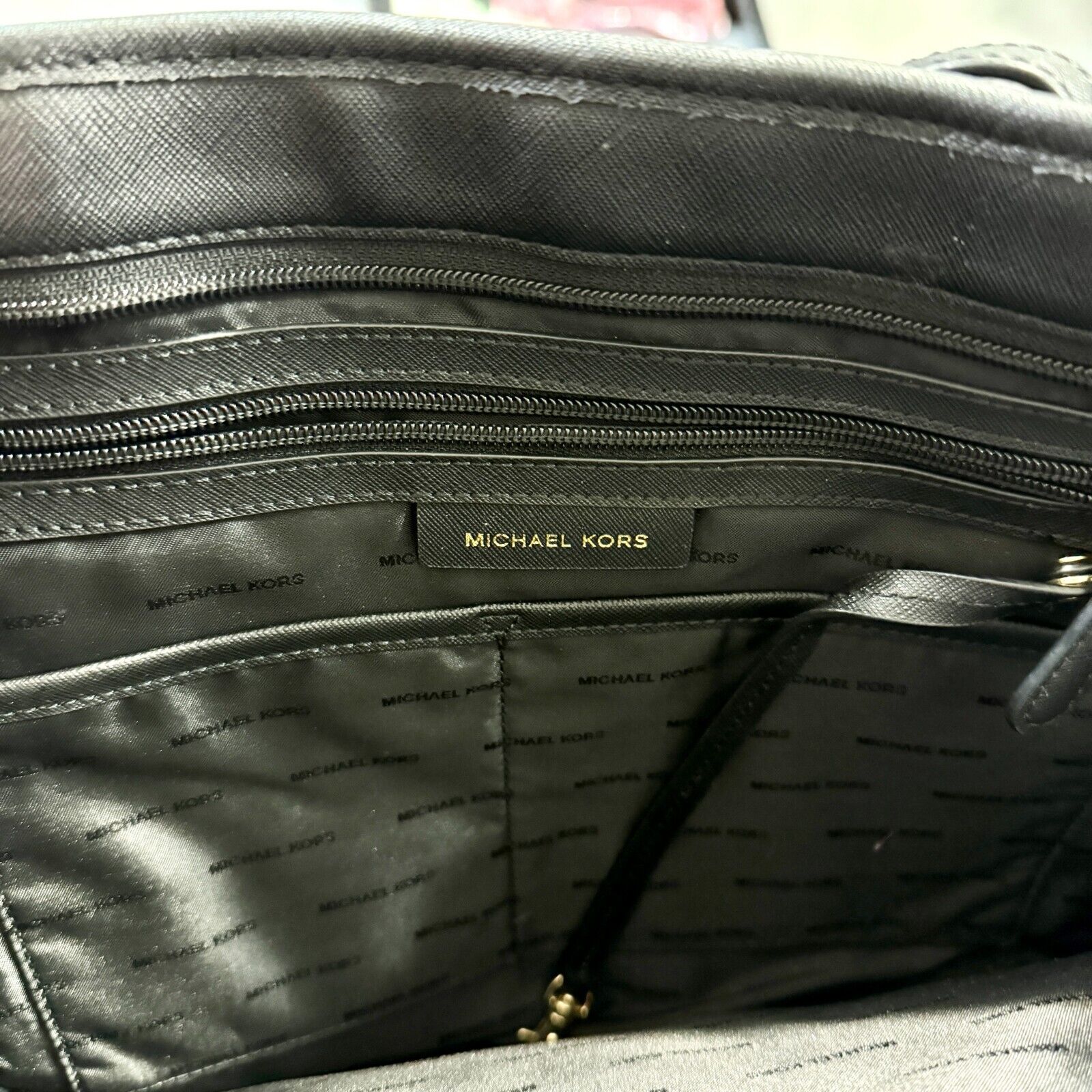MICHAEL KORS Women Large Extra Slim Black Jet Setter Pebbled Leather Tote Bag spacious, elegant, versatile, durable, lightweight, sophisticated, travel, sleek, functional, premium