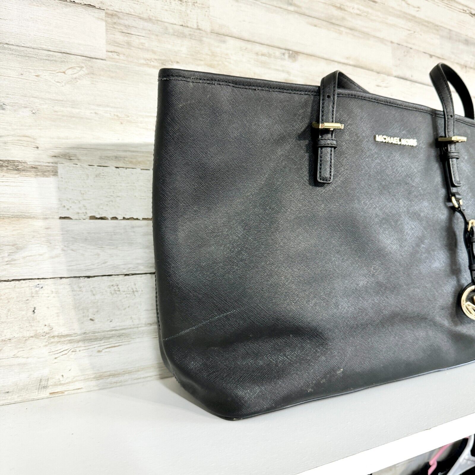 MICHAEL KORS Women Large Extra Slim Black Jet Setter Pebbled Leather Tote Bag
