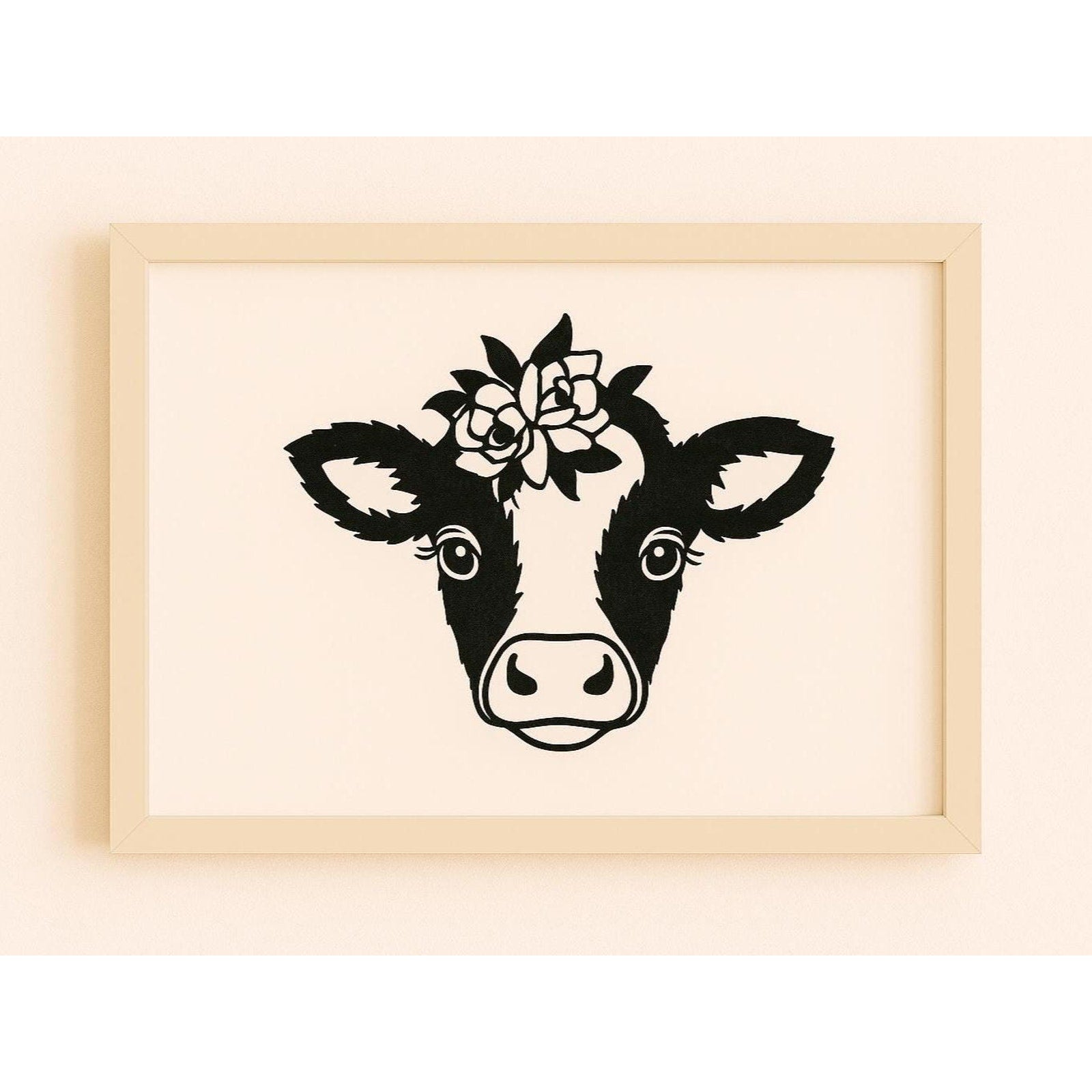 Minimalist Abstract Wall Art | Black Line Cow Modern Farm Life Artwork