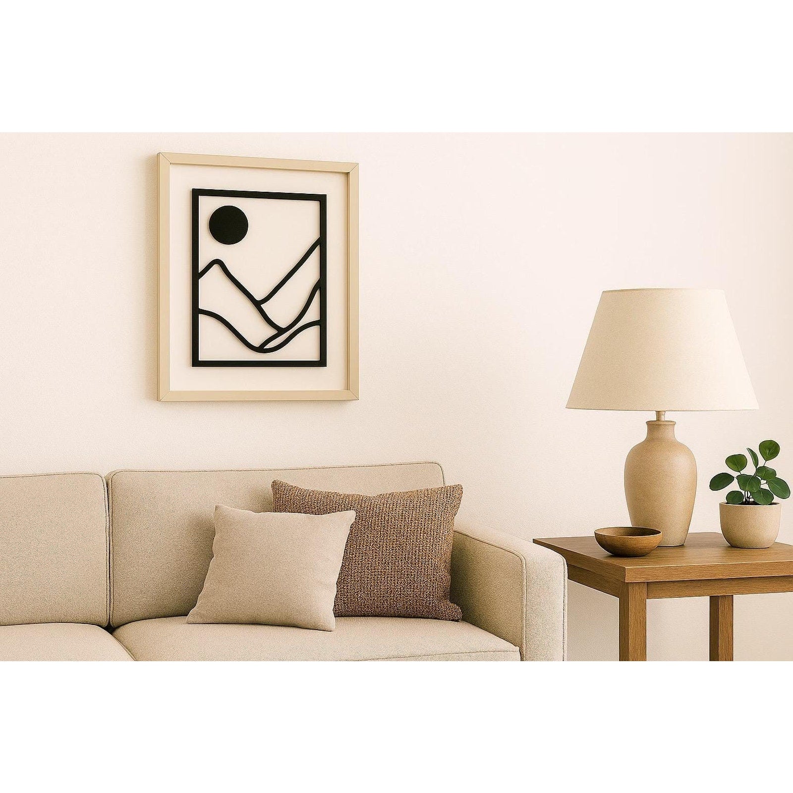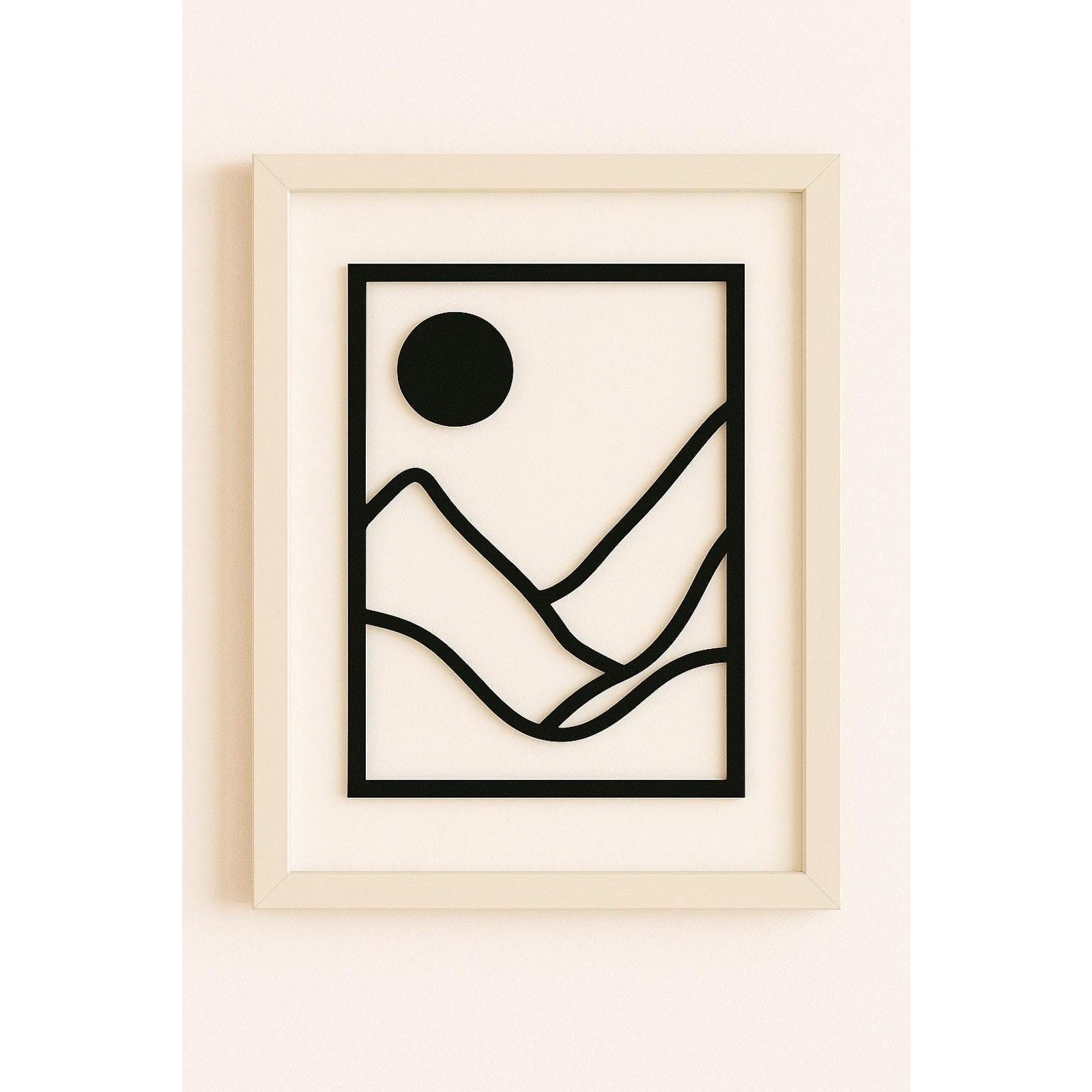 Featuring bold black linework that evokes mountain silhouettes and a solid sun/moon element, this piece is printed directly onto an 8x10 matte board for a clean, dimensional look. The neutral tones and simple geometry make it a perfect fit for contemporary, Scandinavian, or Japandi-inspired interiors.