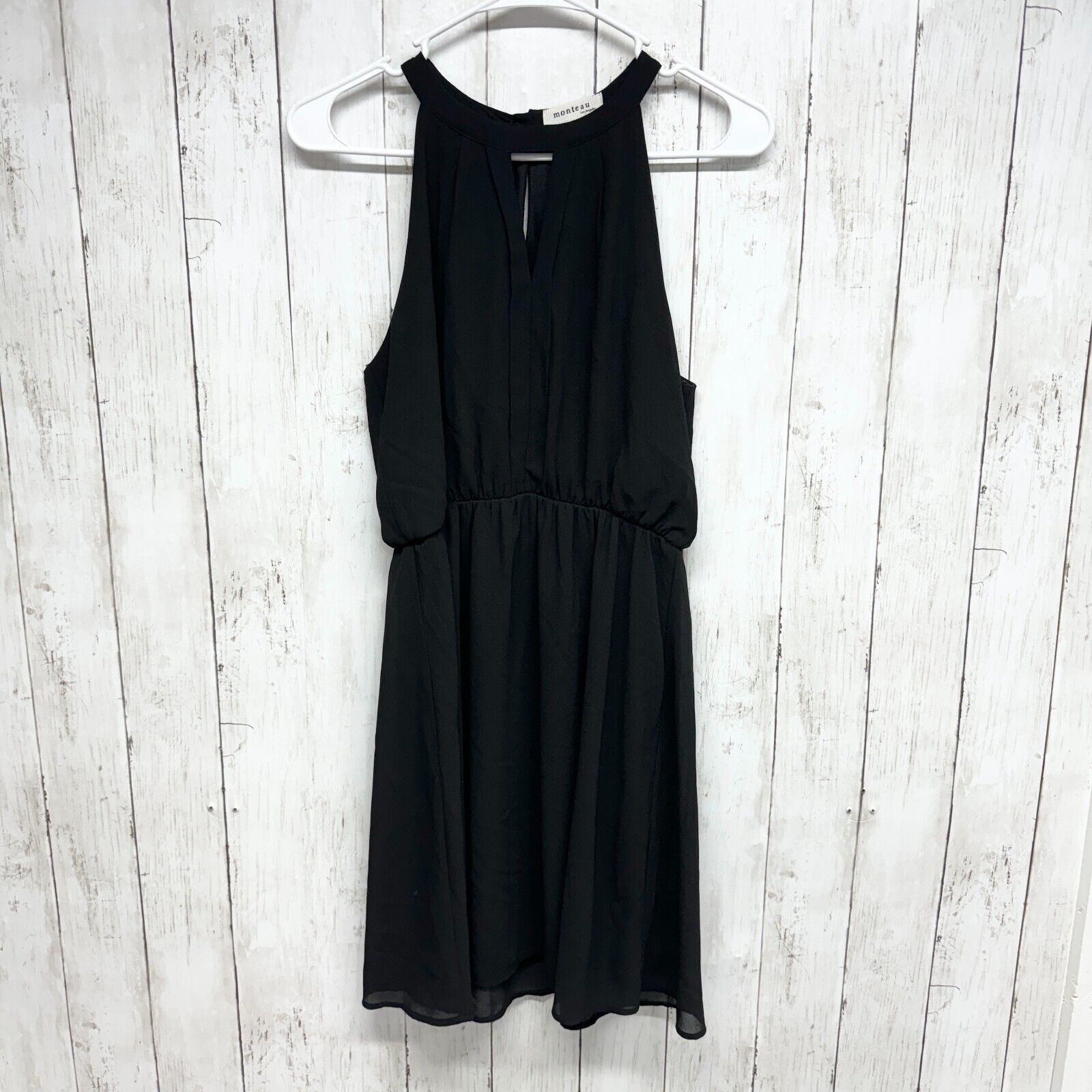 Monteau Dress Size Small Mini Womens Fit & Flare Black Sleeveless High Neck