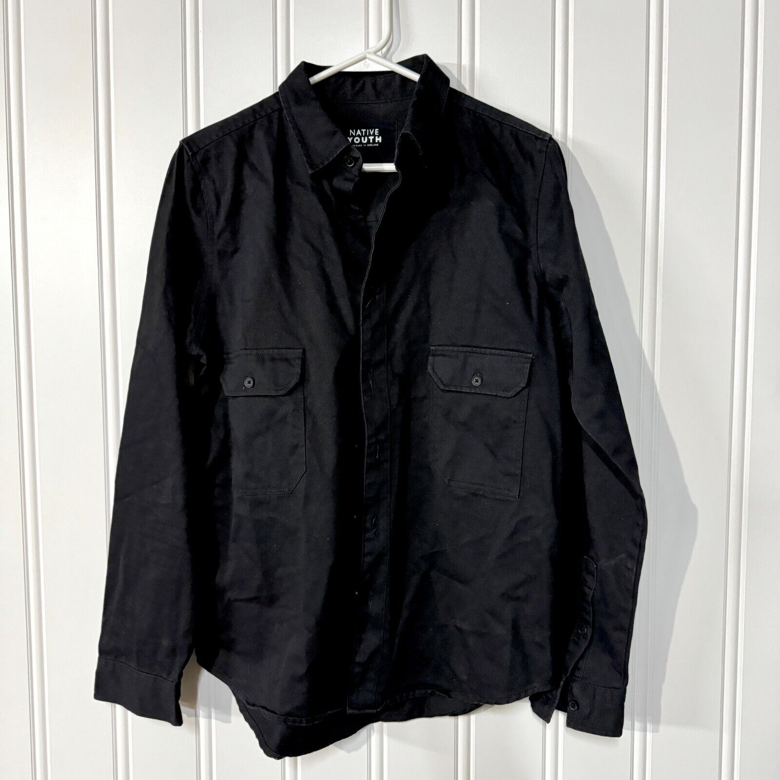 Native Youth Black Rugged Cotton Long Sleeve Casual Button Down Size Small