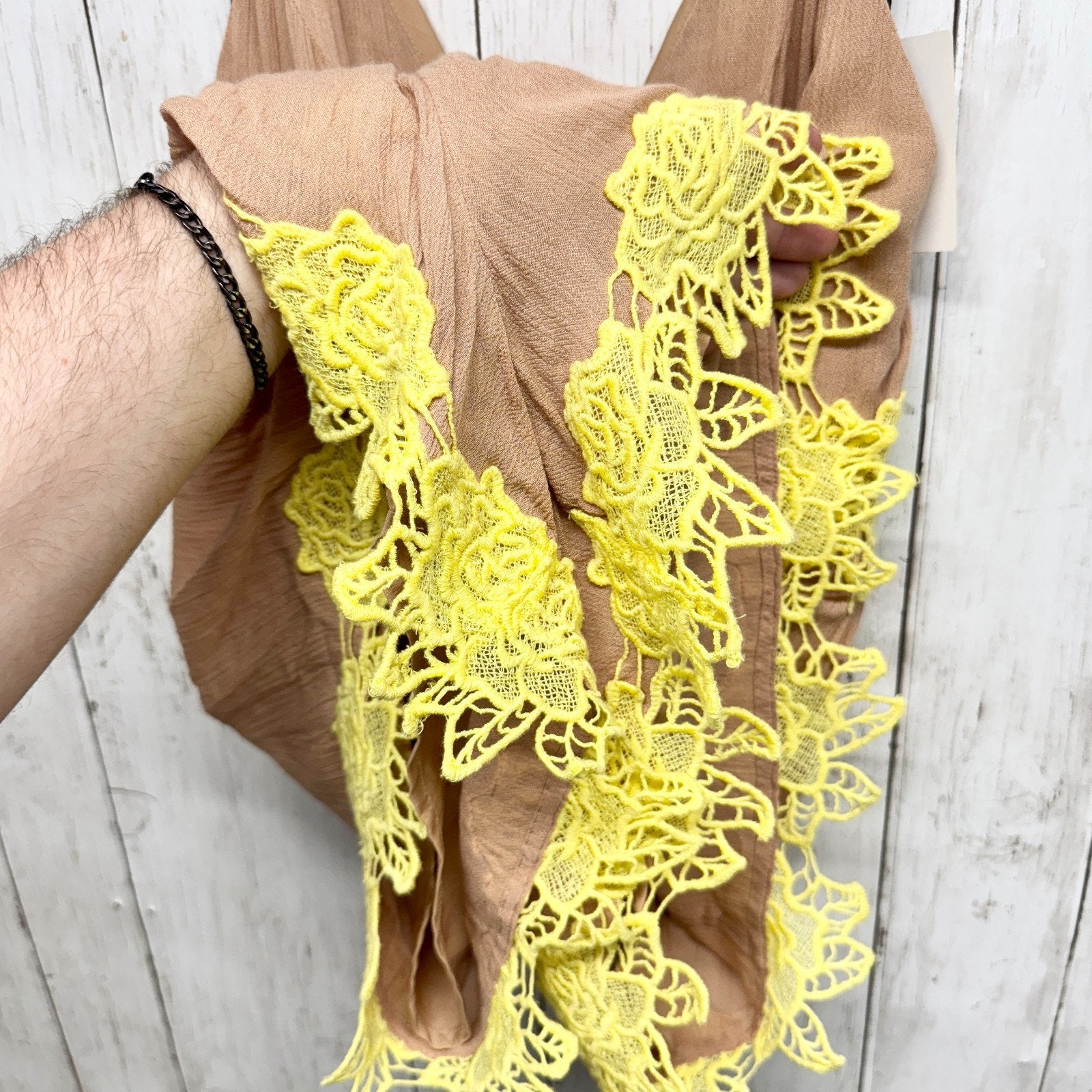 NBD Romper Women Bust 34" Tan Floral Embroidered V-Neck Embroidered Trim Boho