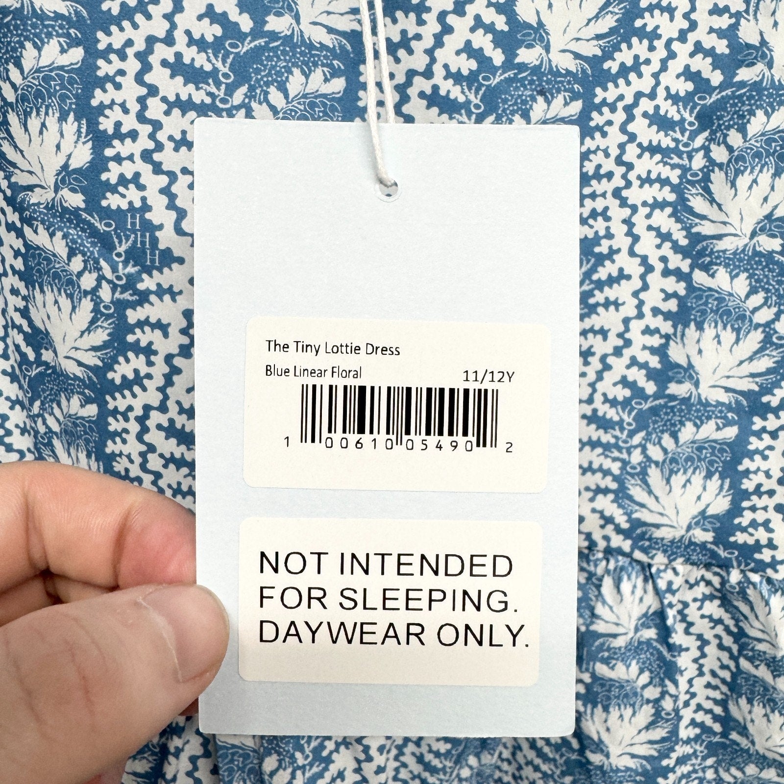 NEW Hill House Dress Girls Size 11/12Y The Tiny Lottie Dress Blue Linear Floral