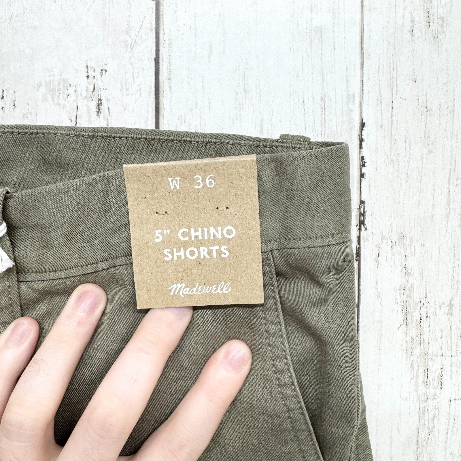 New Madewell Short Men Size 36 Olive 5" Chino Shorts Zip Fly Slash Pocket Preppy
