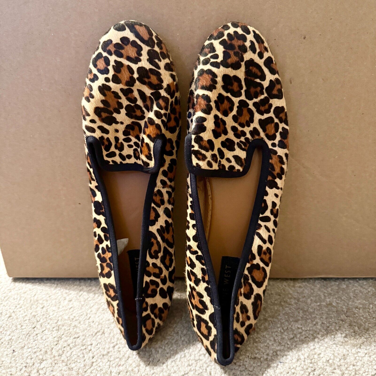 Nine West Flats Women Size 10.5 Round Tie Leopord Animal Print Abay Smoking