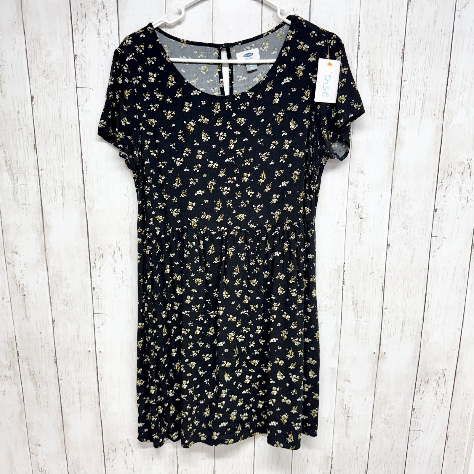 Old Navy Dress Women Size Medium Black Dainty Floral Short Sleeve T-Shirt Mini