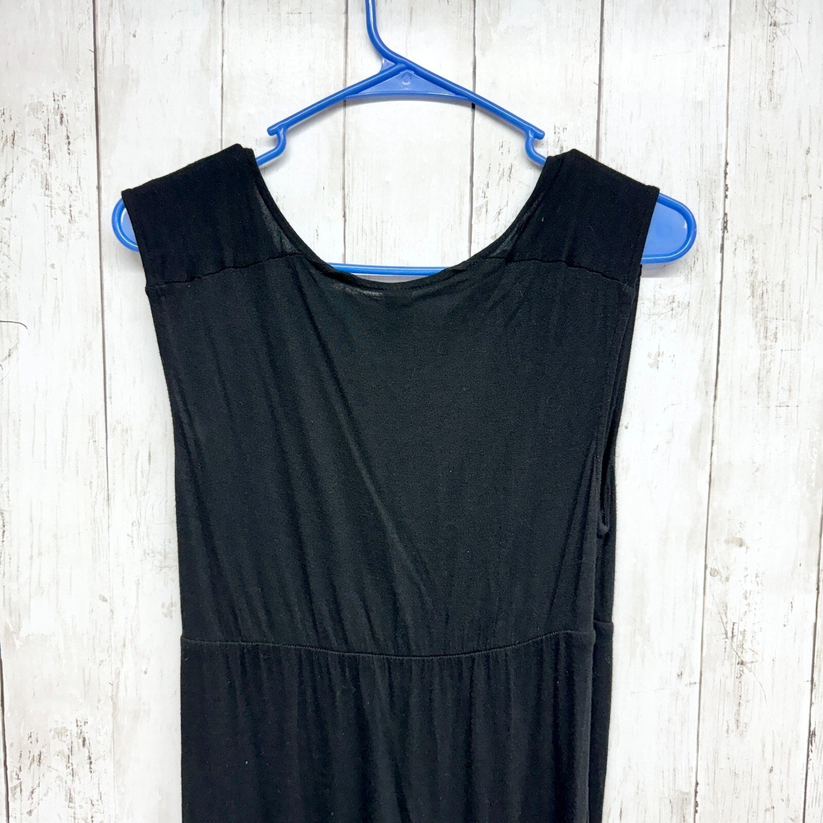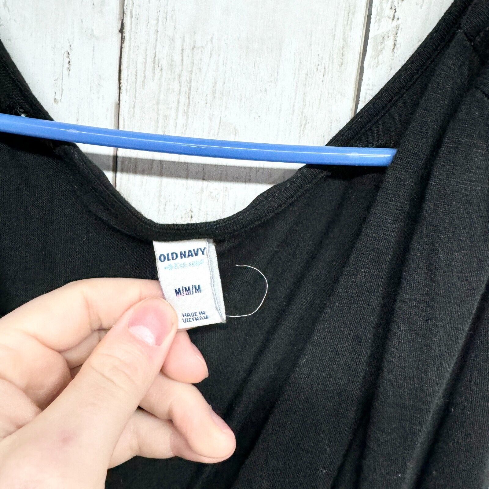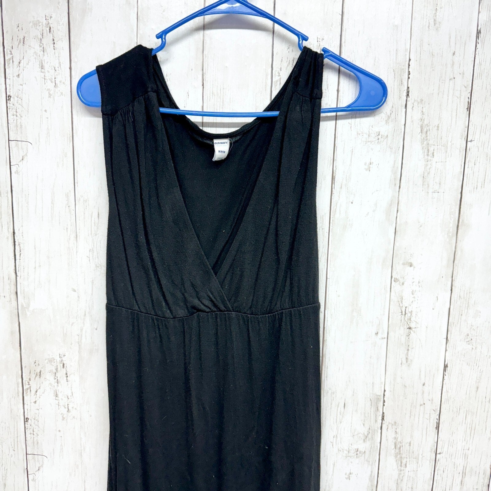 OLD NAVY Dress Women Size Medium Maxi Black Cotton Sleeveless Deep V Neck Casual