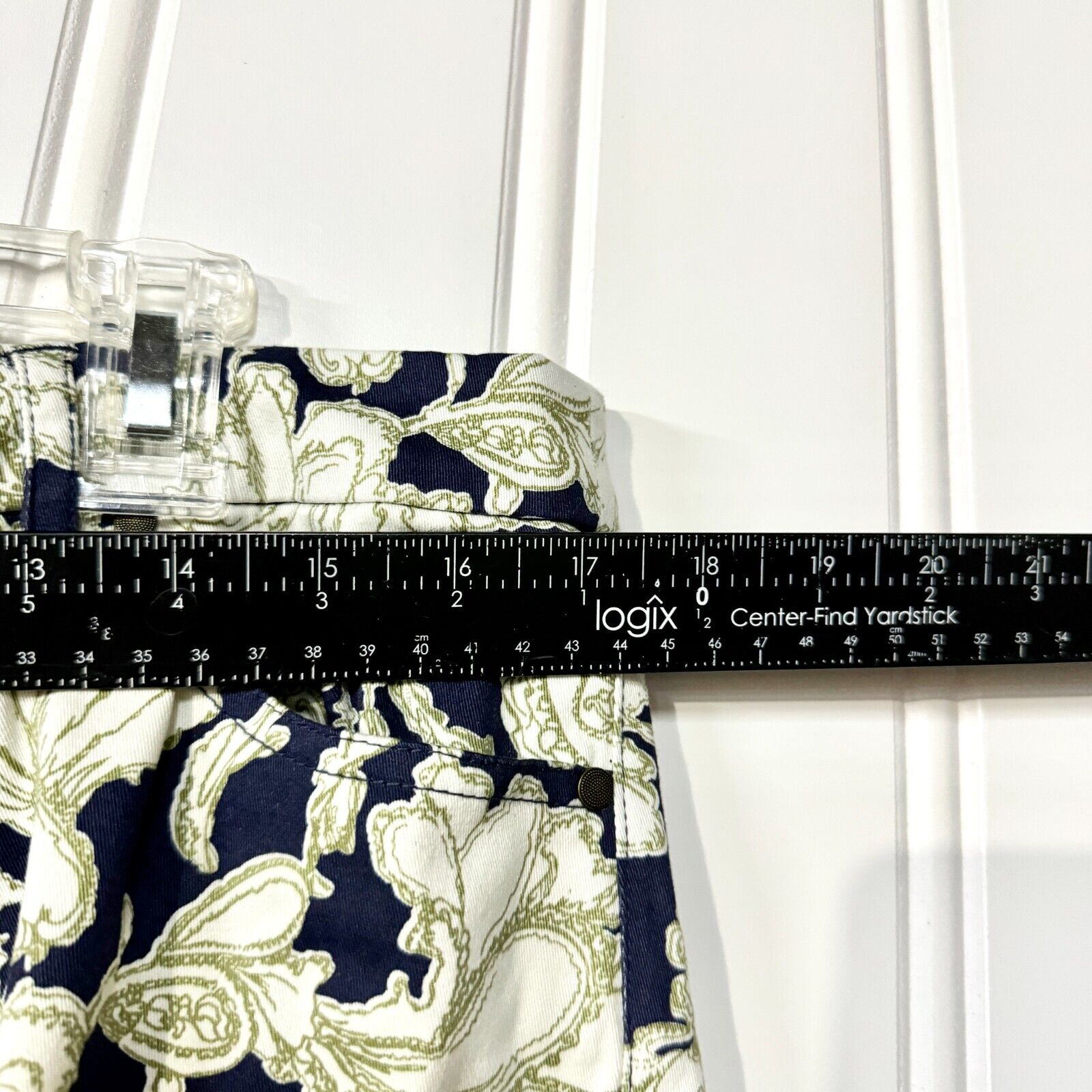 ORVIS Pants Women Size 14 Low Rise Skinny Floral Navy Blue Button Front Zip Up