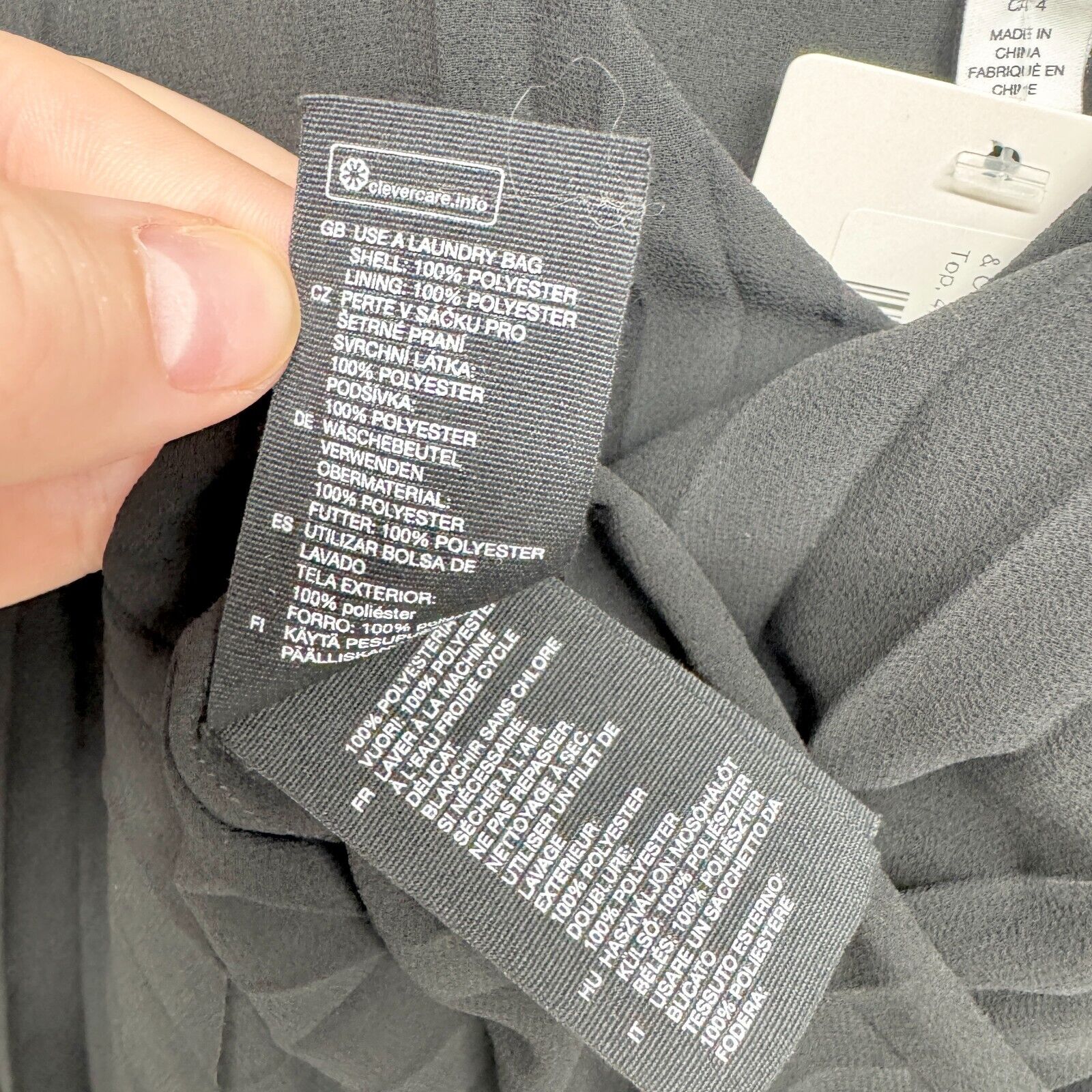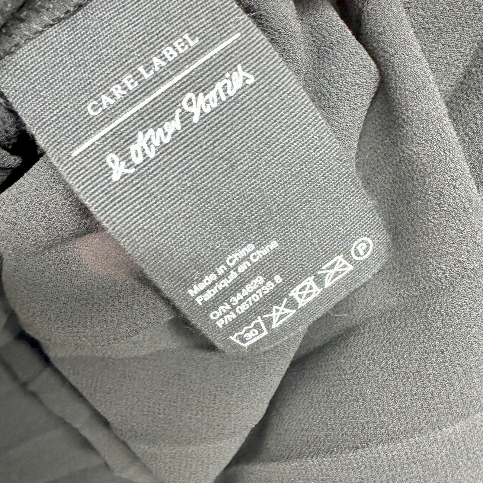& Other Stories Asymmetrical Chiffon Pleated Black V Neck Tank Top Size 4