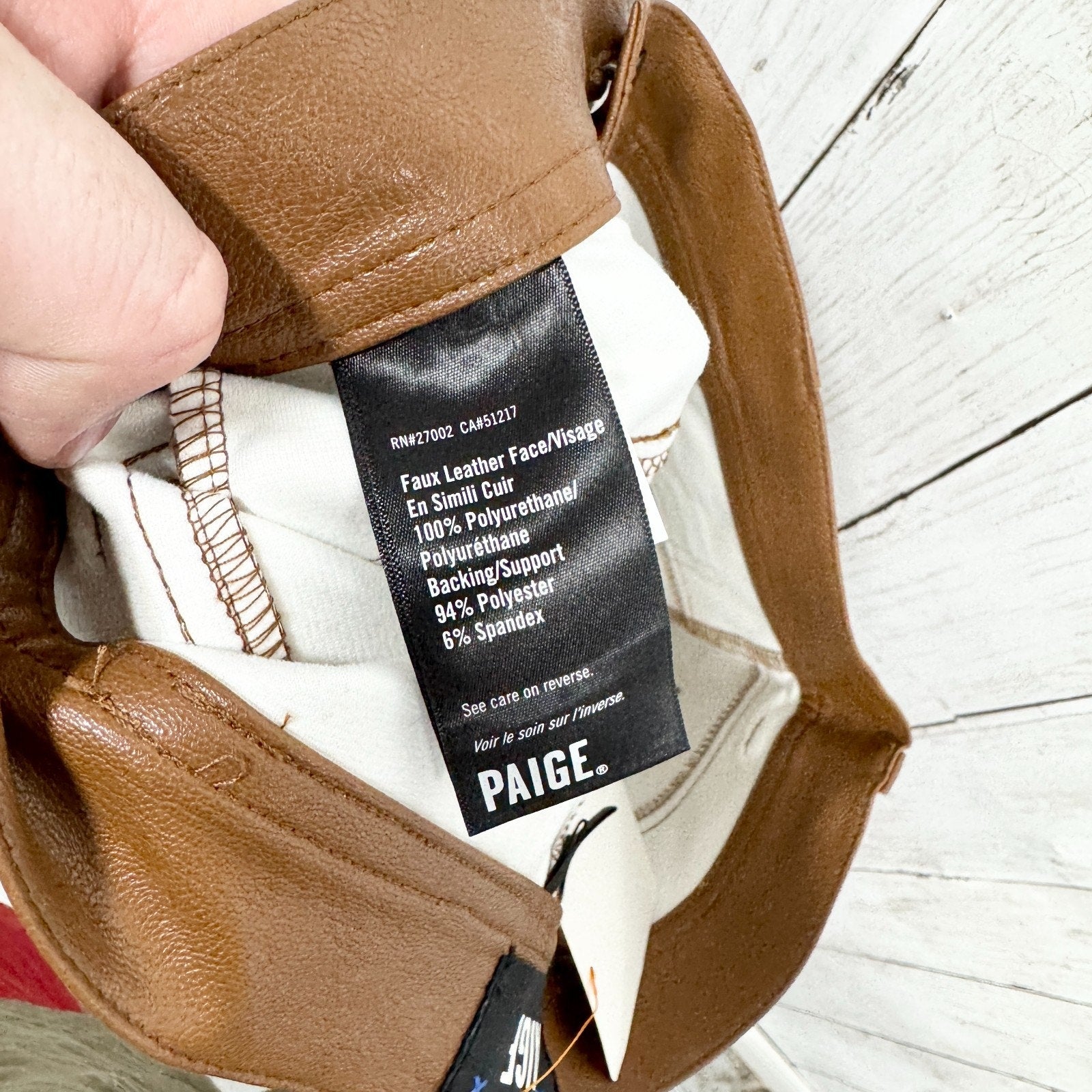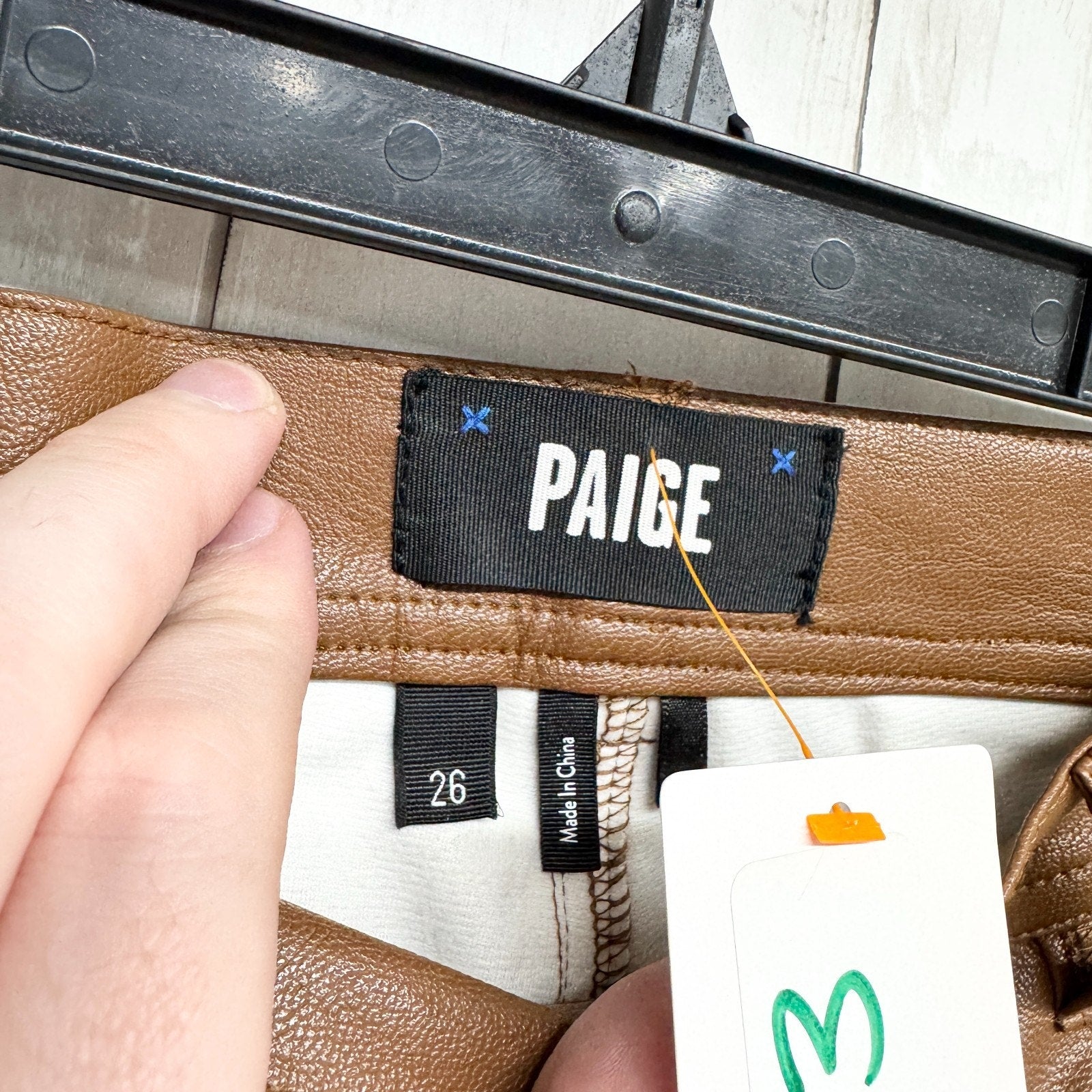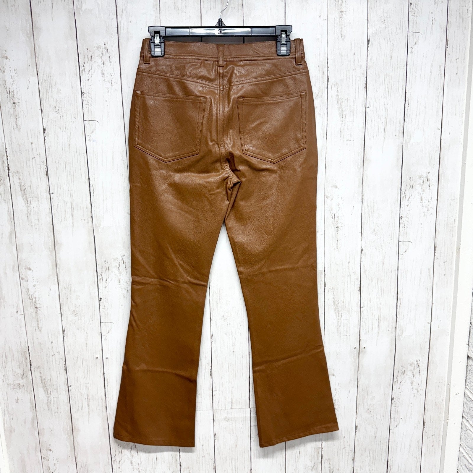 Paige Pants Women Sz 26 Dark Argan Brown Faux Leather Relaxed Straight 5-Pocket