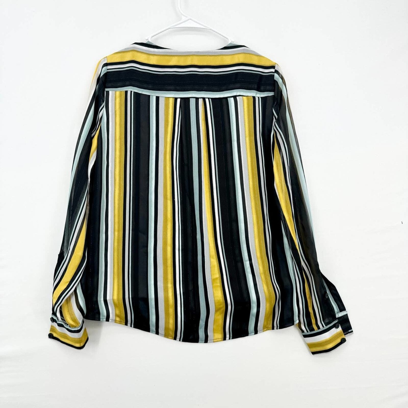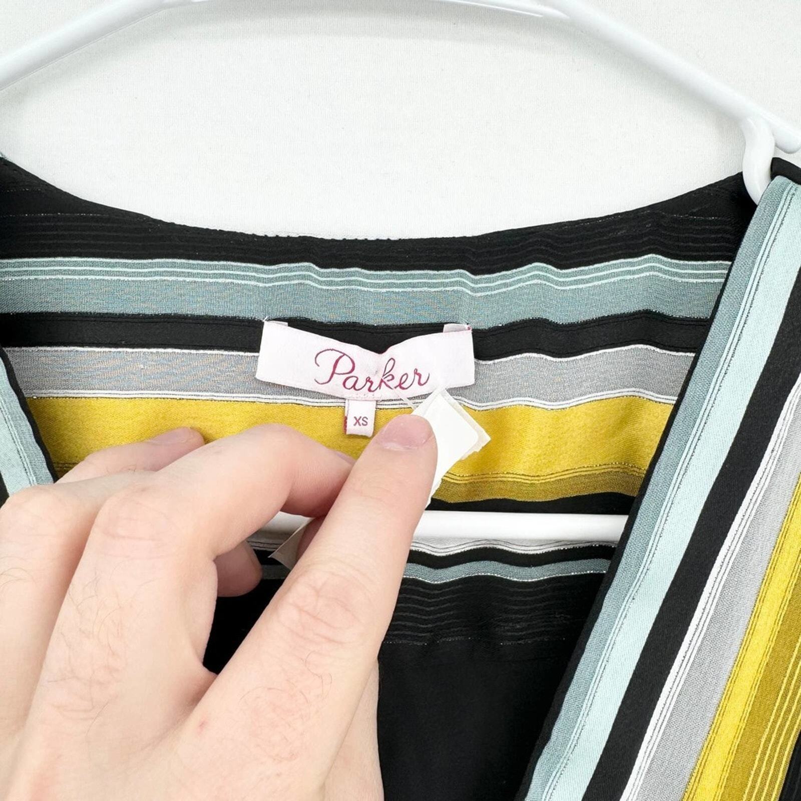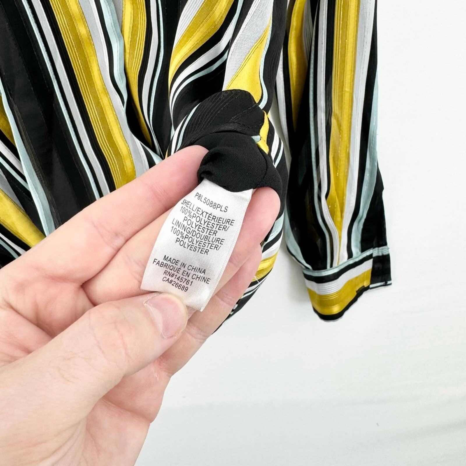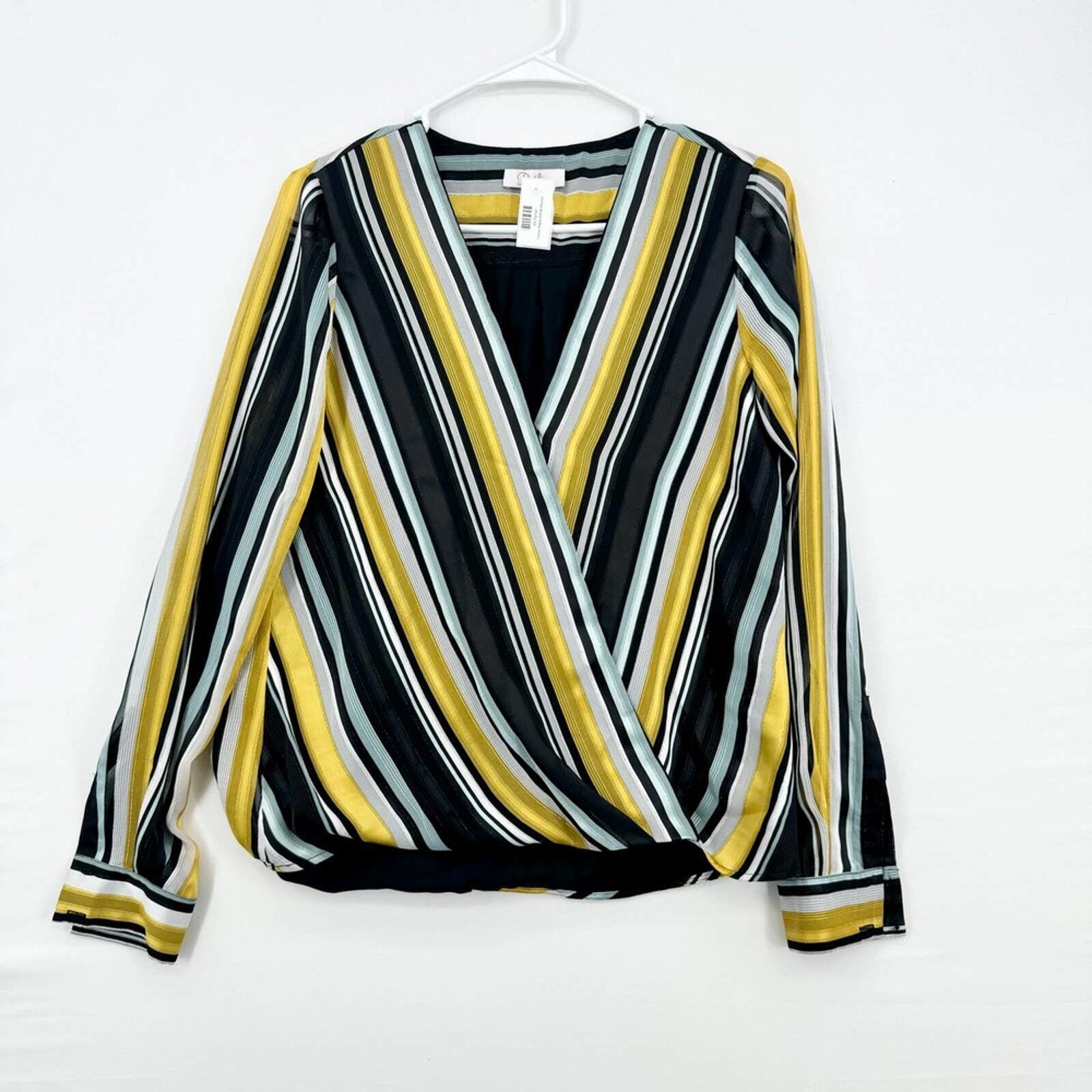 PARKER Blouse Women Size XS Deep V Neck Lola Long Sleeve Draped Wrap Black & Yellow Fashion, Chic, Trendy, Stylish, Elegant, Modern, Casual, Formal, Apparel, Outfit, Boutique, Statement, Luxury, Wardrobe, Classic