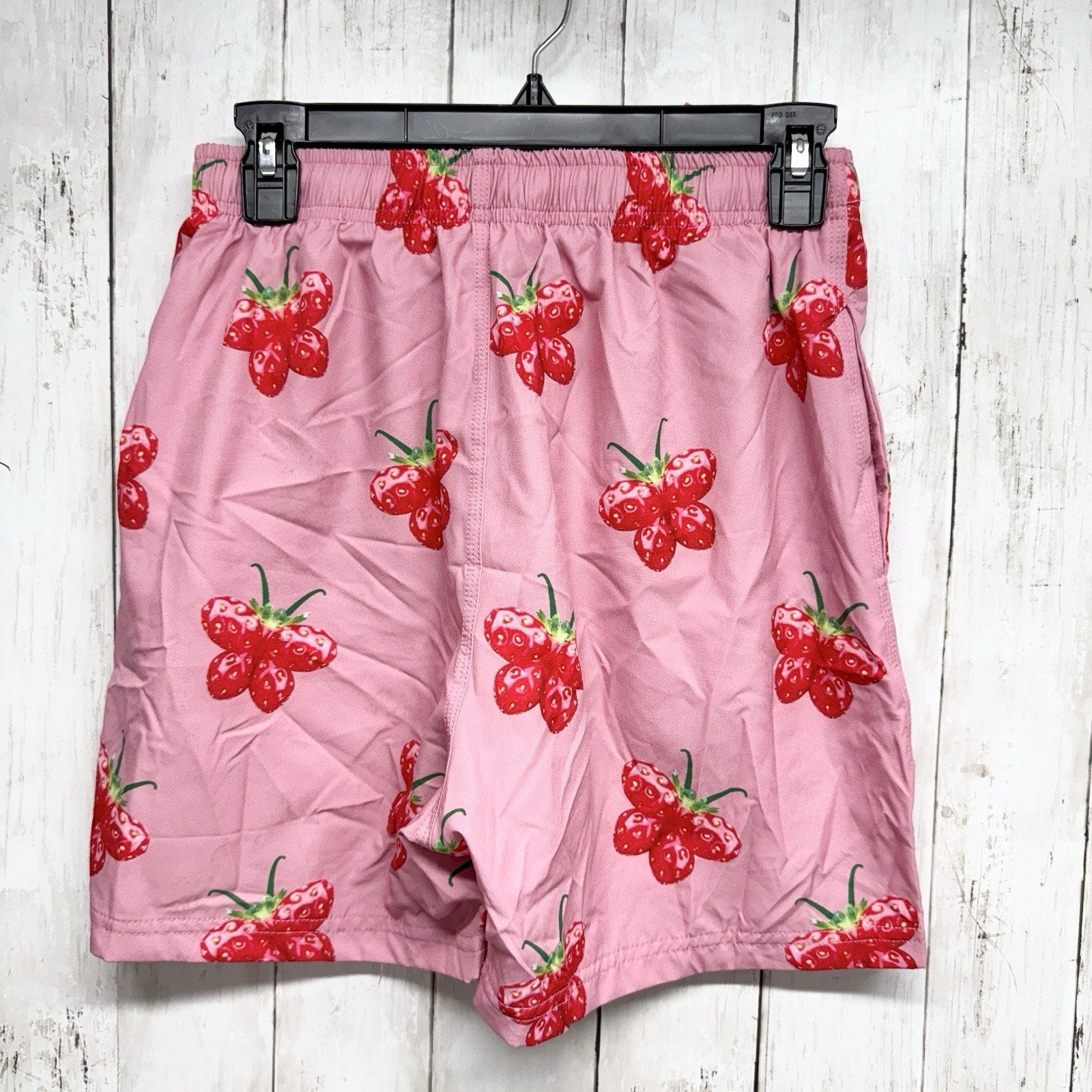 Petals and Peacocks Shorts Men Sz Small Pink Strawberry Print Swim Short Trunks