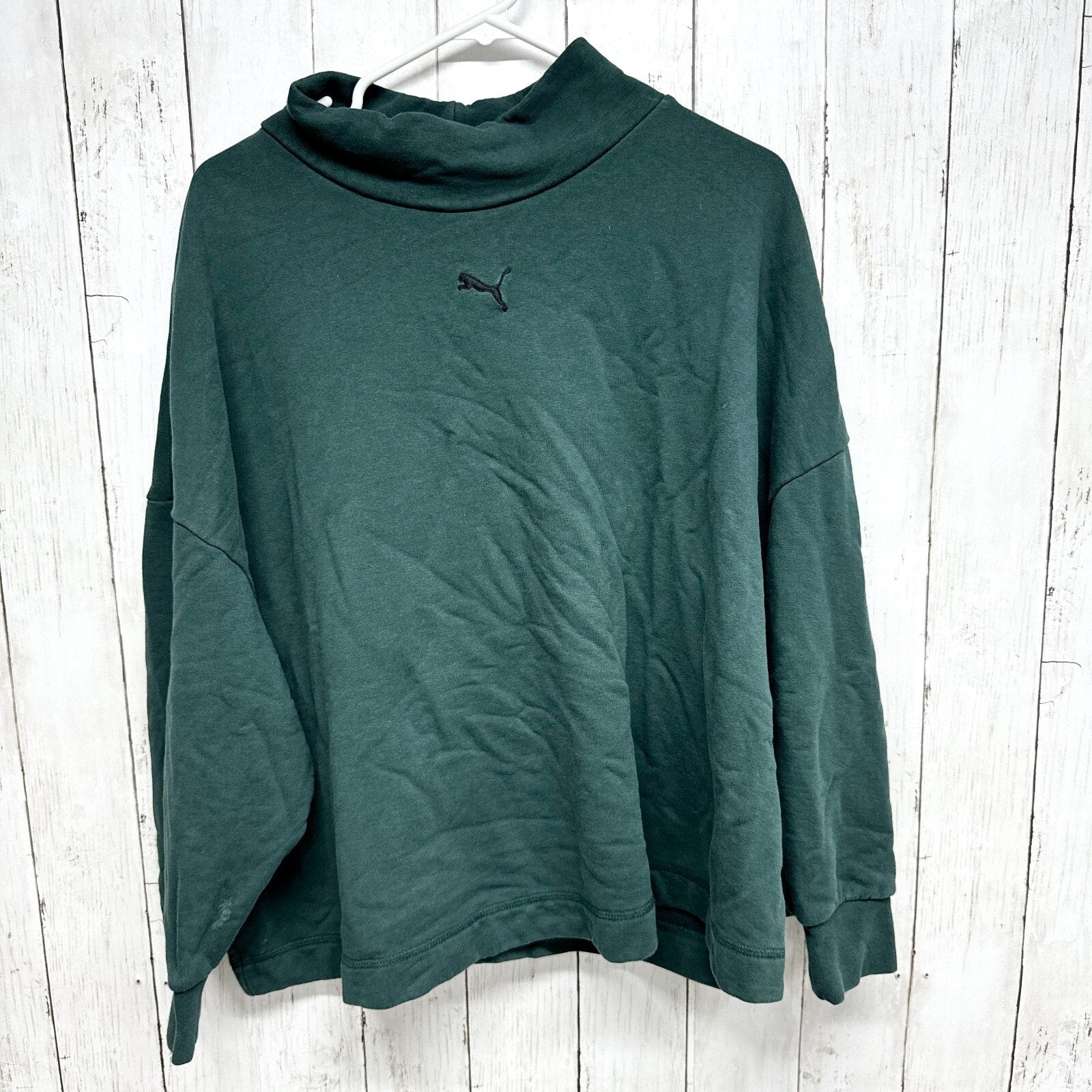 Puma Pullover Women Size 3X Mock Cowl Neck Teal Sweatshirt Embroidered Logo