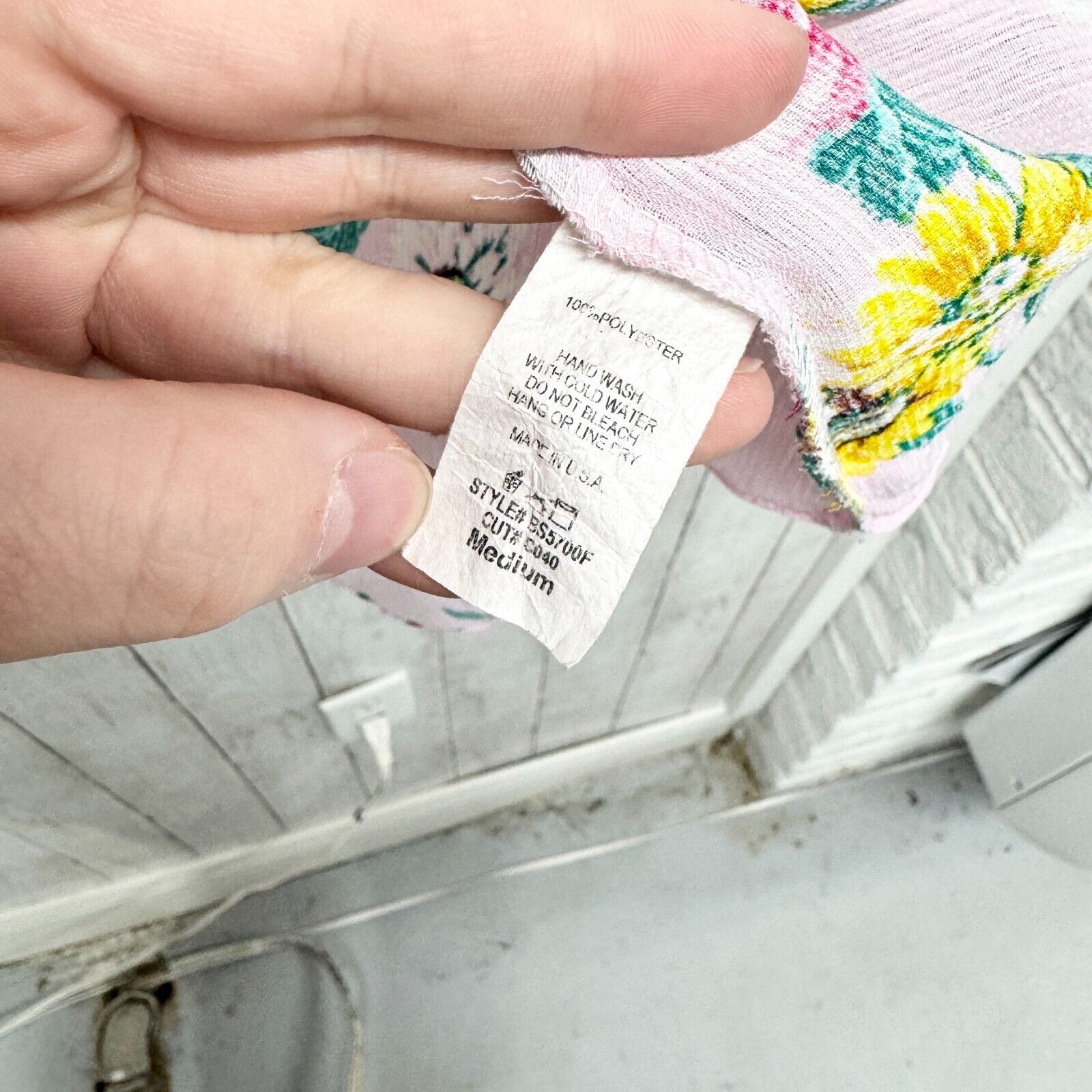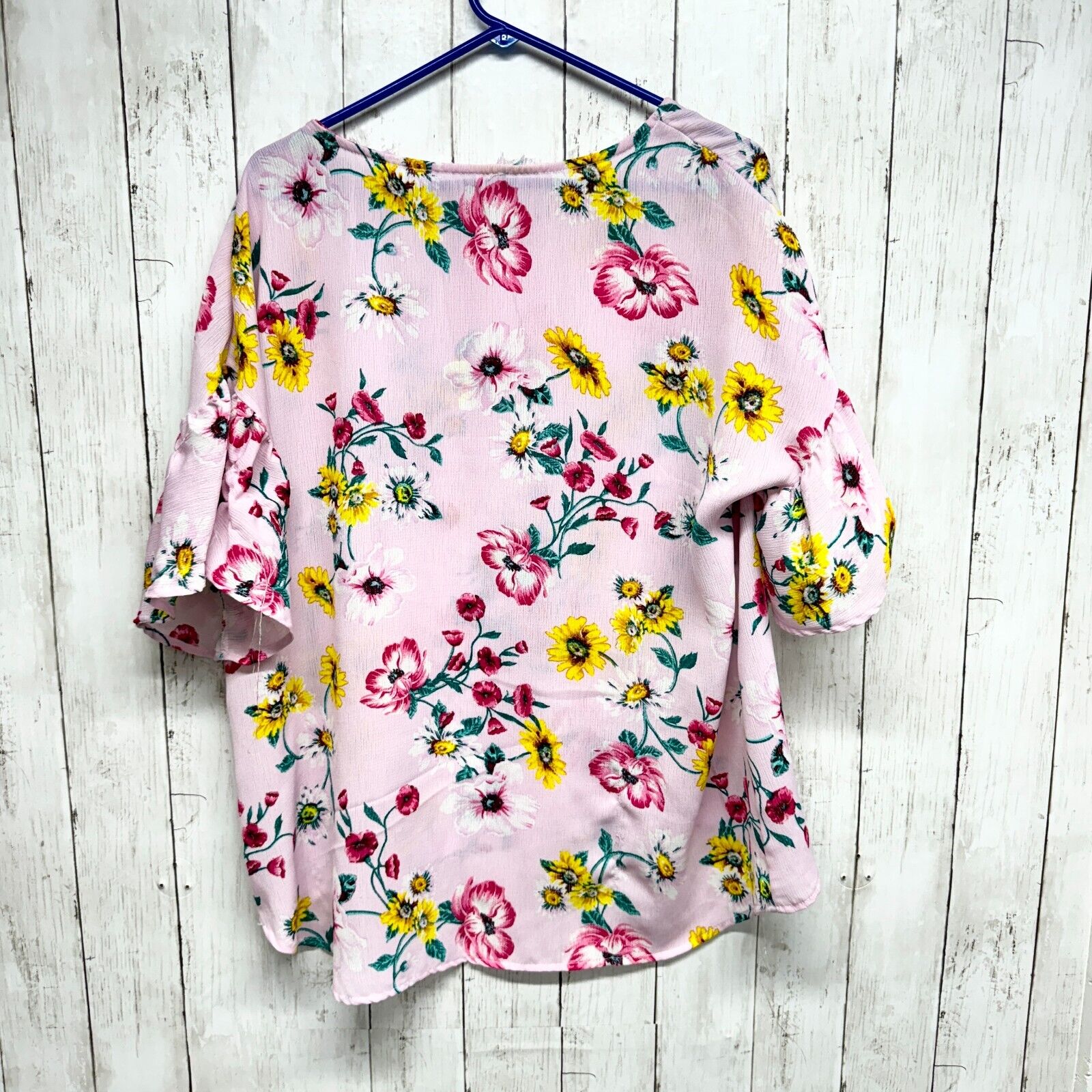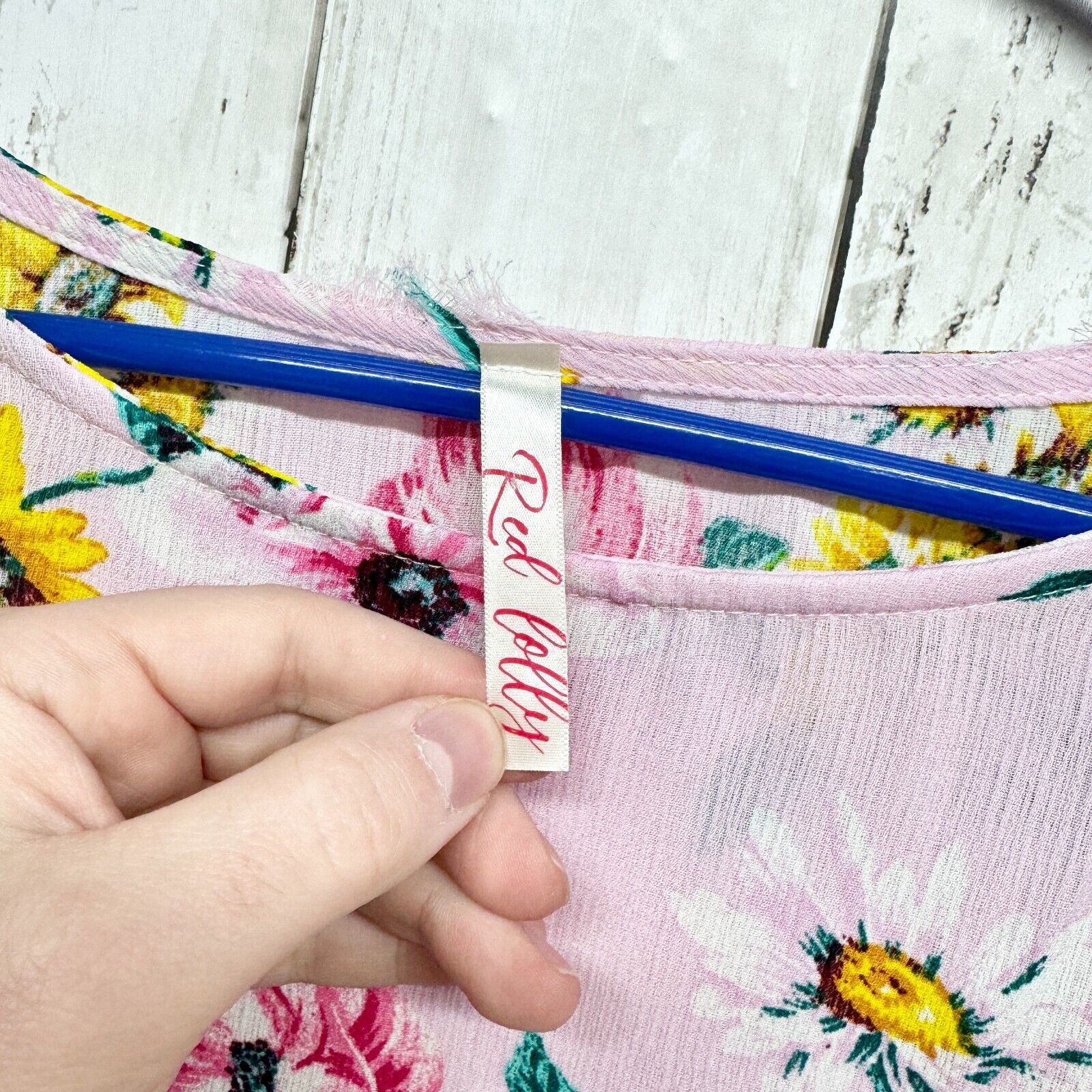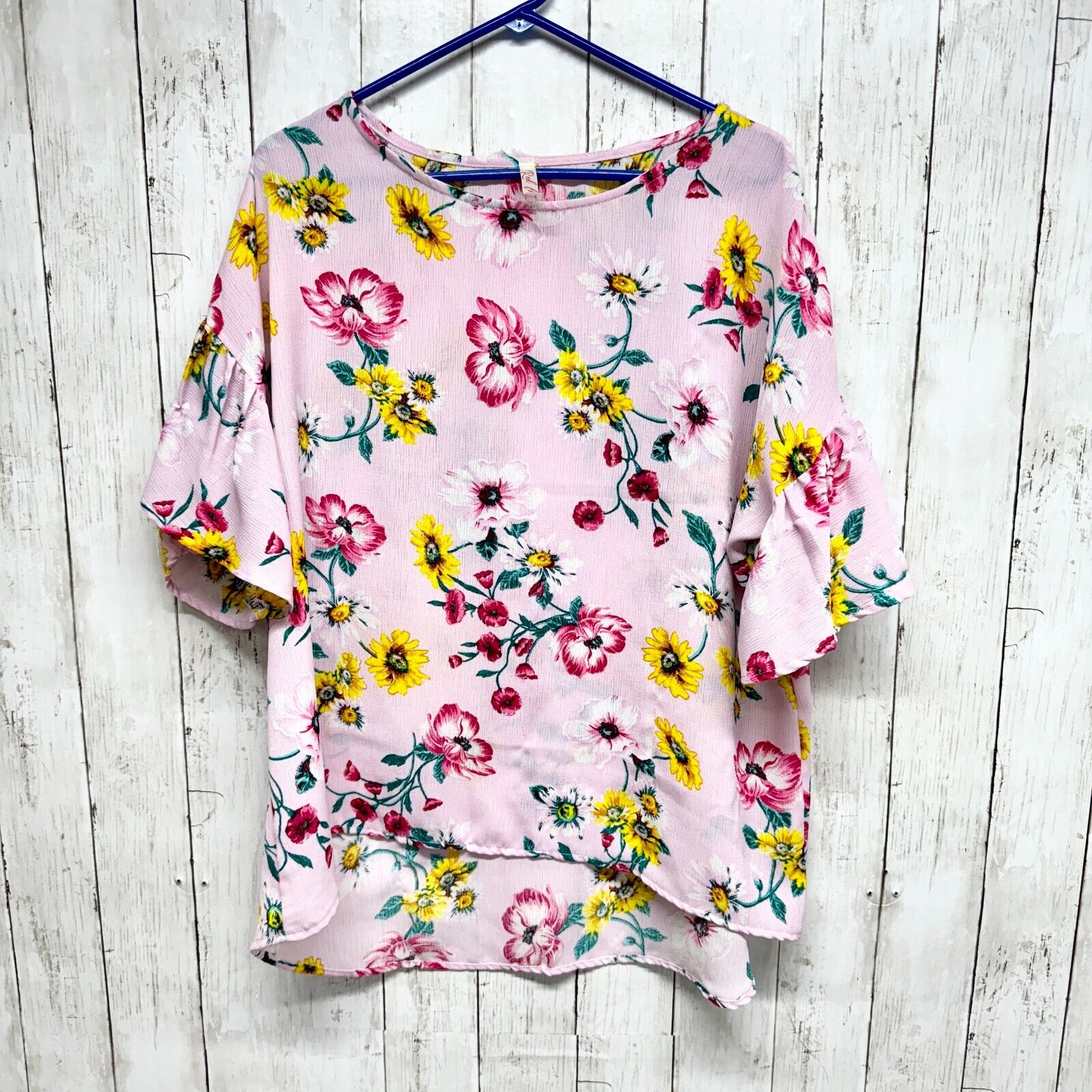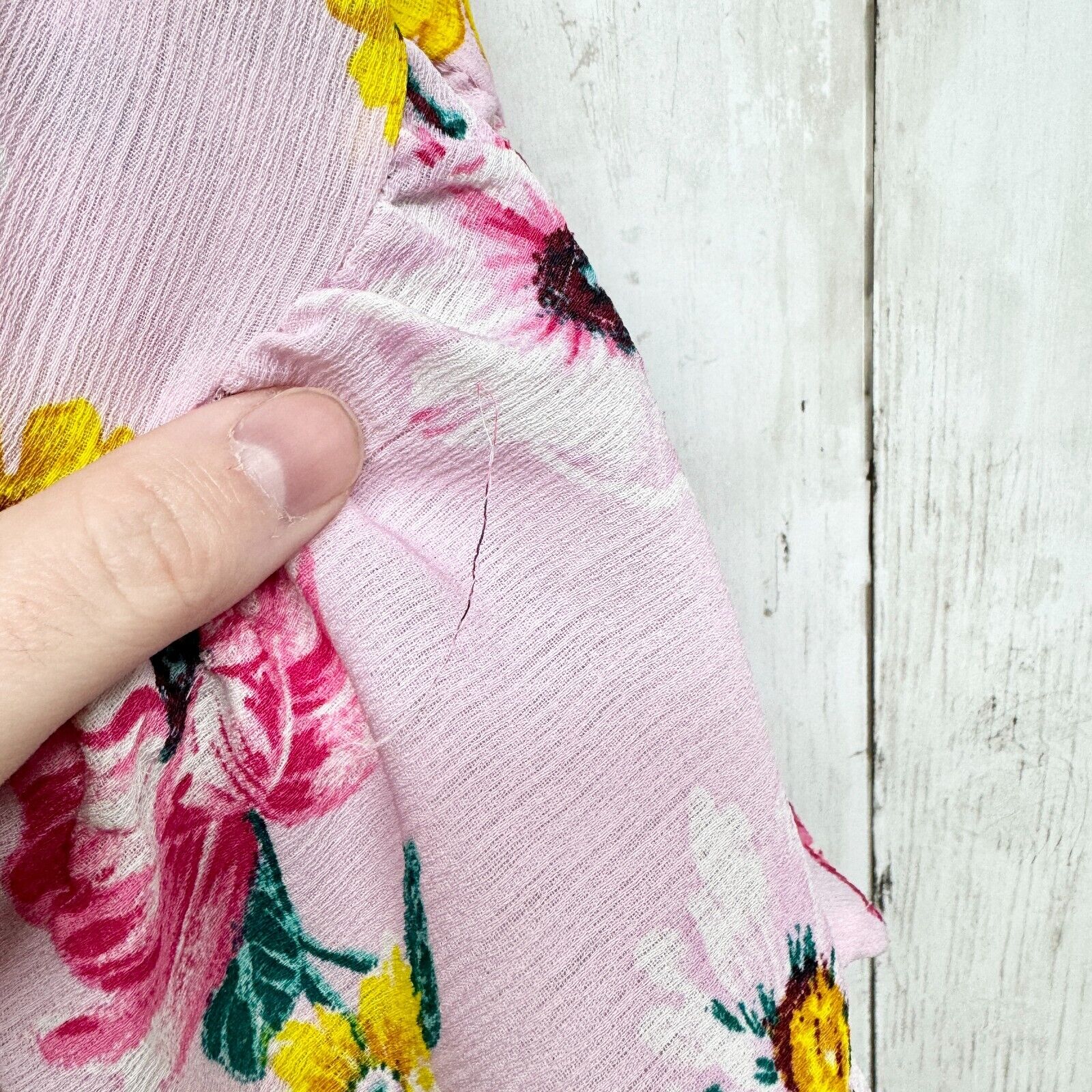 RED LOLLY Shirt Women M Short Sleeve High Low Floral Pink Round Neck Polyester