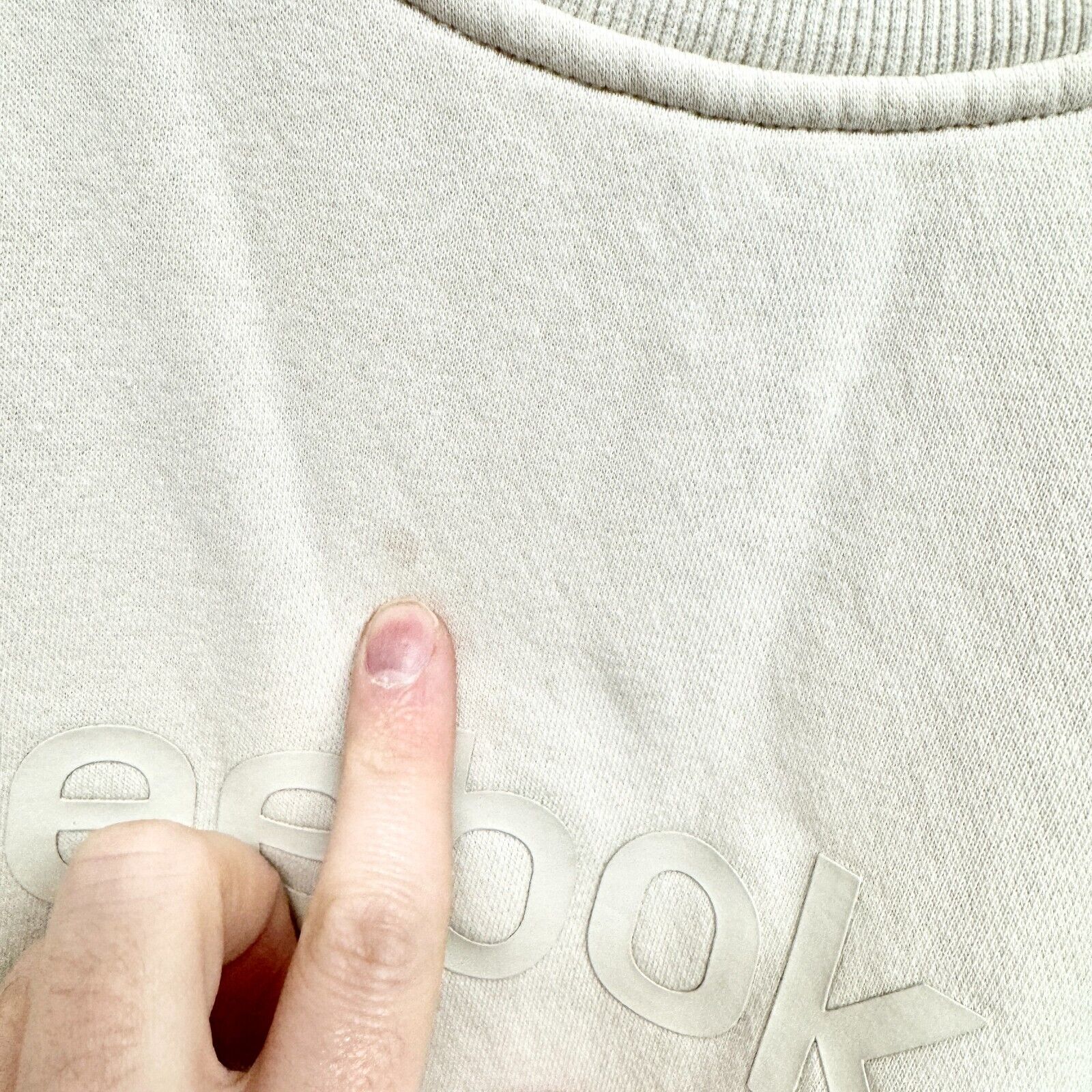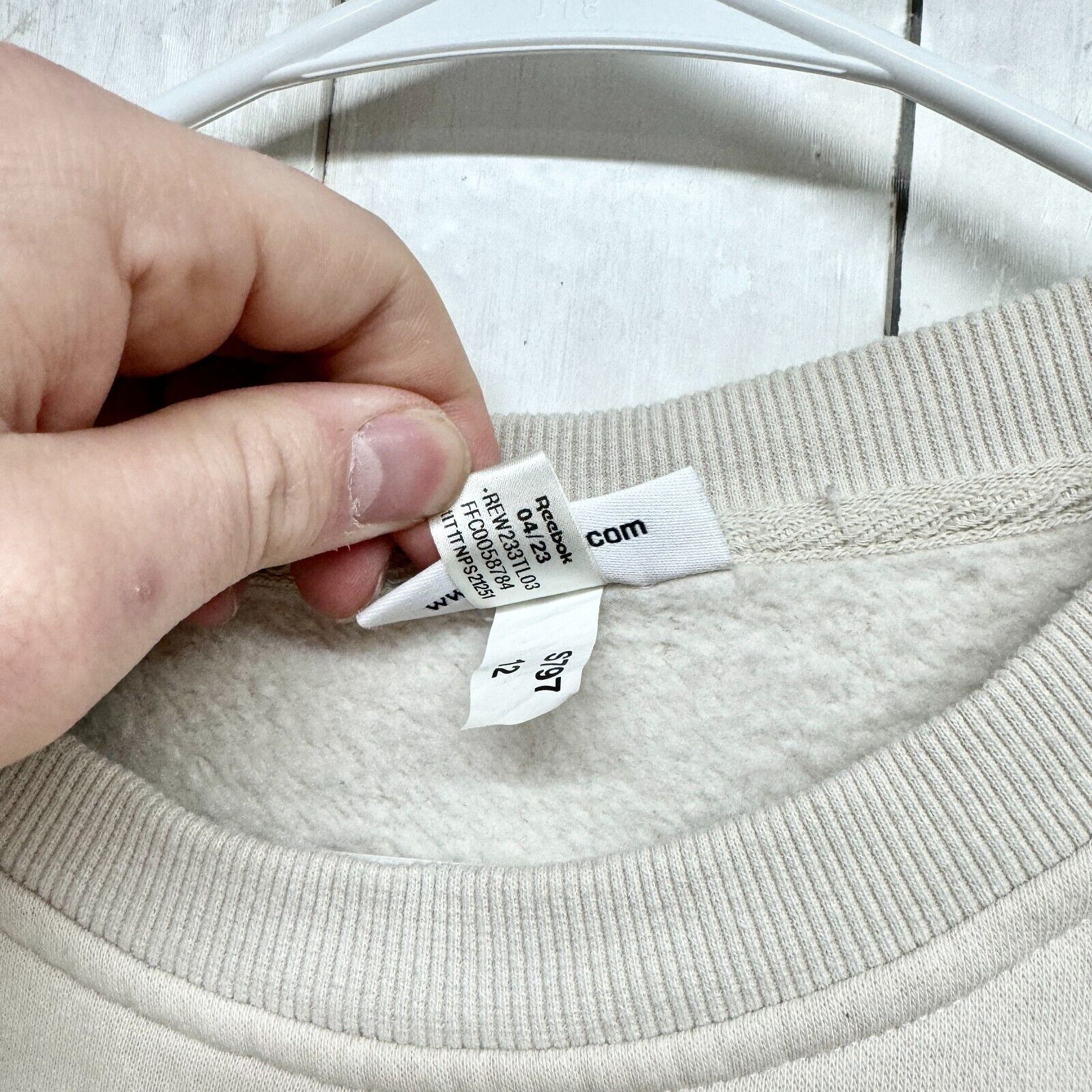 REEBOK Sweater Women Sz XL Cotton Ivory Brown Long Sleeve Crewneck Graphic Logo