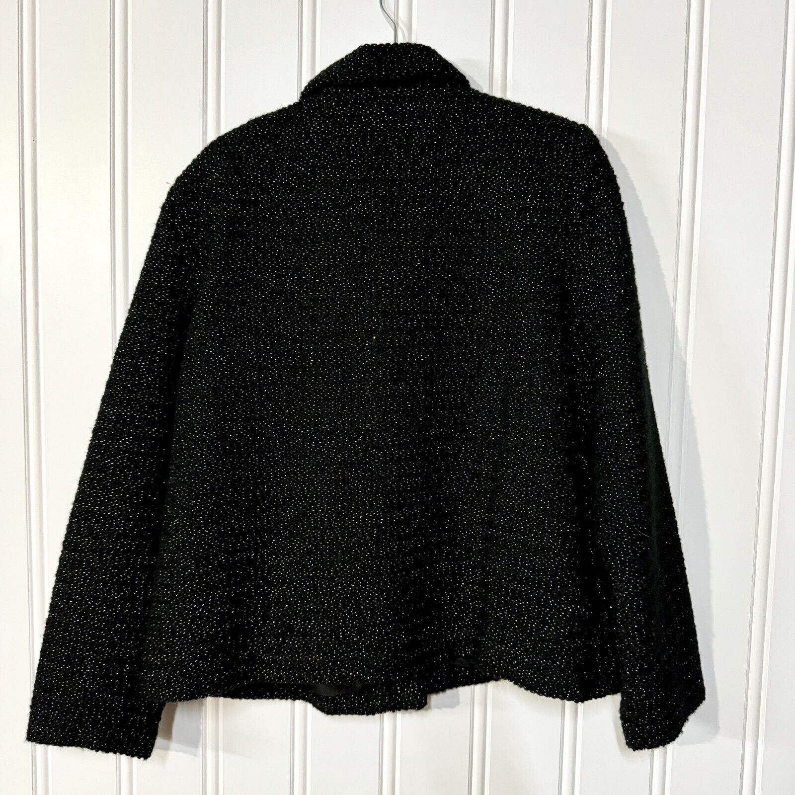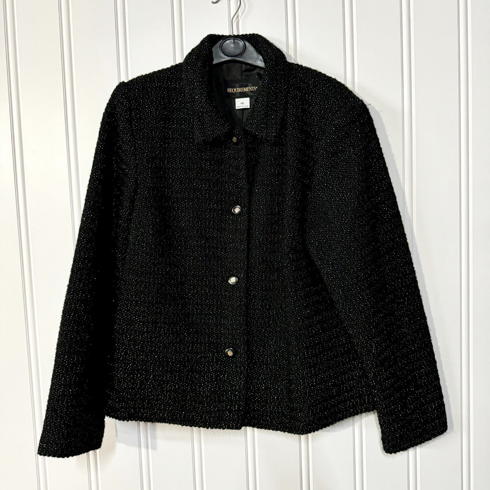 REQUIRMENTS Jacket Women Size 16 Black Woven Tweed Button Down Collared Acrylic Sophisticated, Stylish, Timeless, Chic, Comfortable, Classic, Structured, Polished, Feminine, Versatile, Trendy, Elegant, Durable, Professional, Tailored, Lightweight, Modern, Layering Piece, Refined