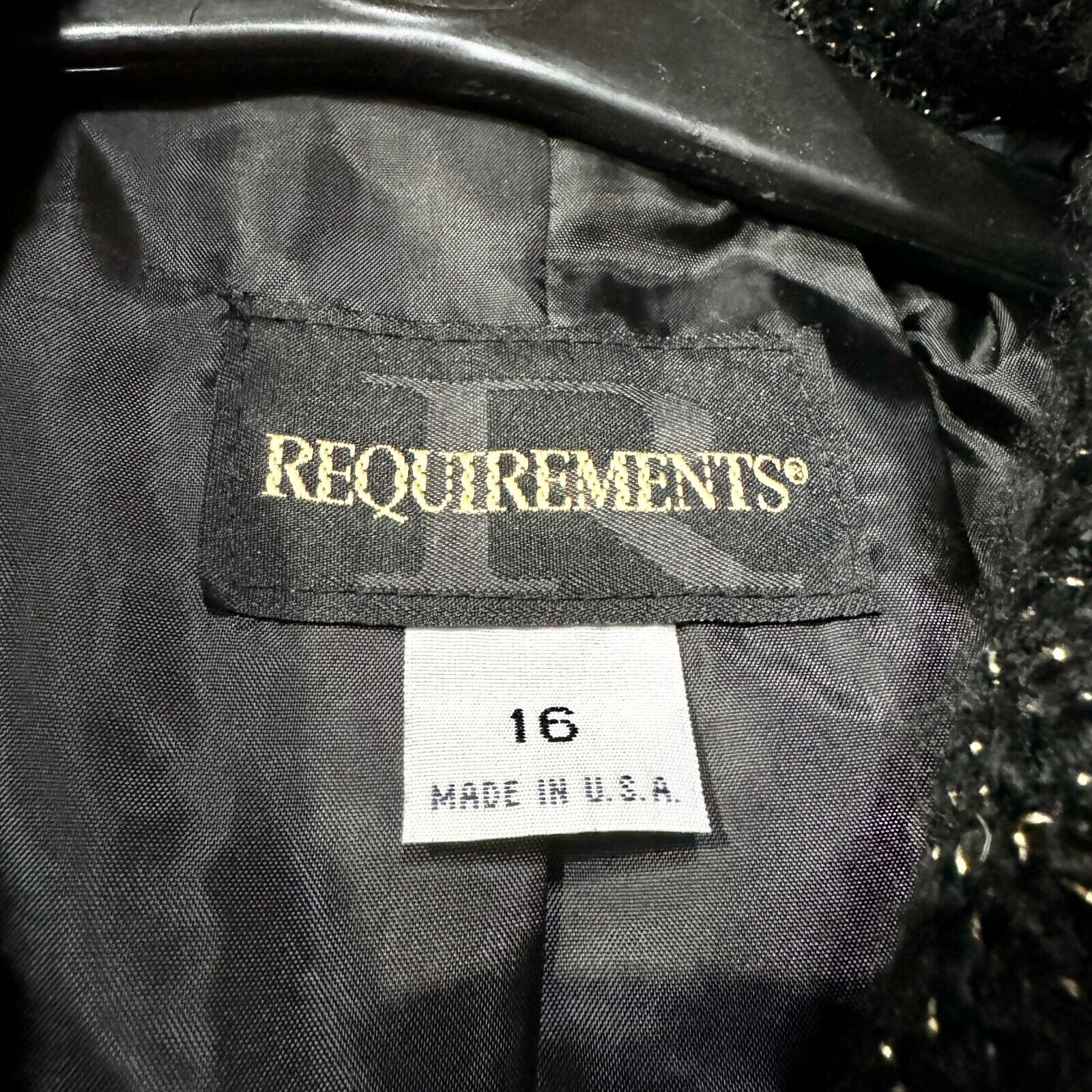 REQUIRMENTS Jacket Women Size 16 Black Woven Tweed Button Down Collared Acrylic