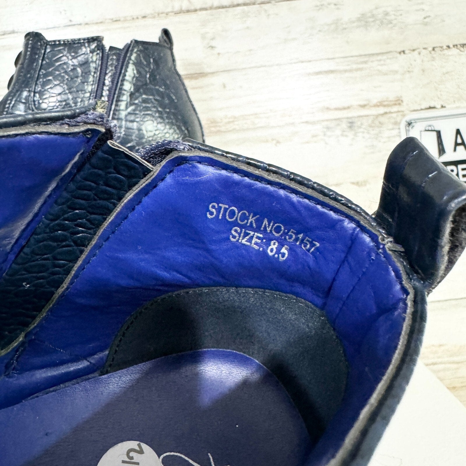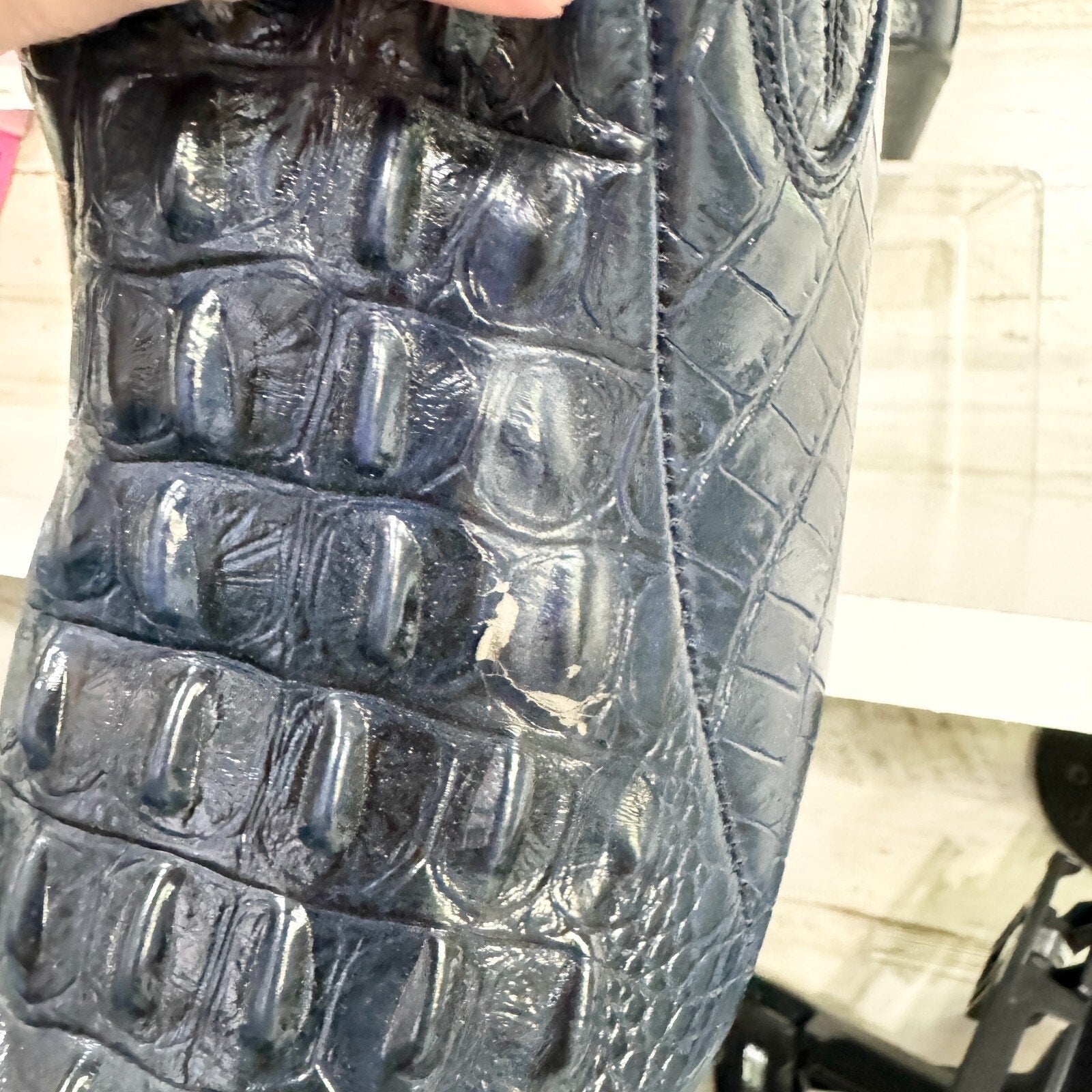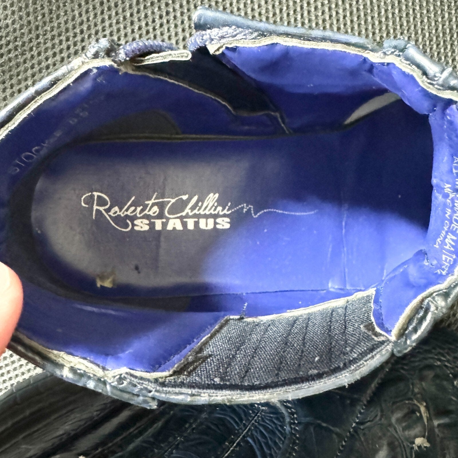 Roberto Chillini Mens Size 8.5 Blue Ultra Gator Embossed Ankle Boot Zip Up Heel