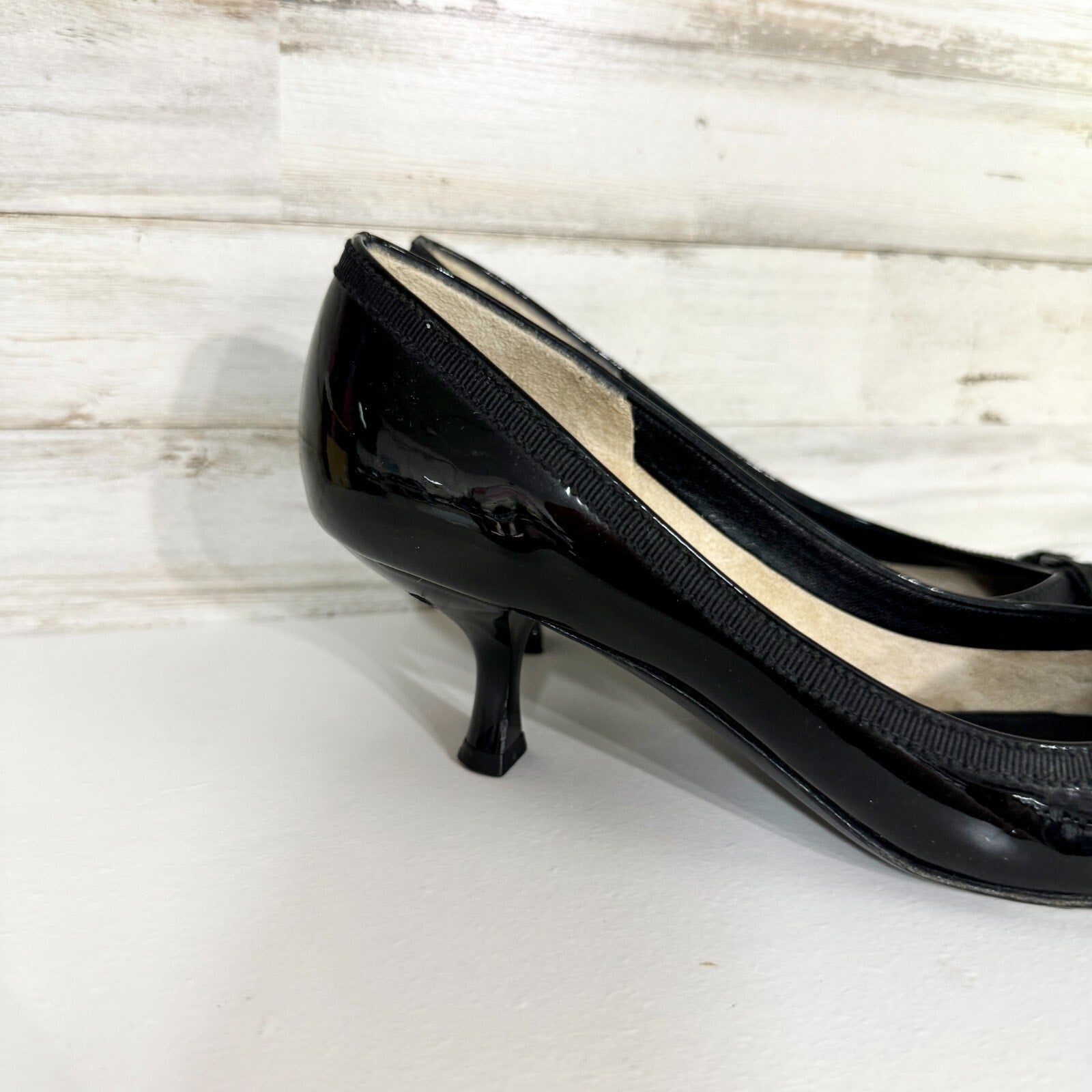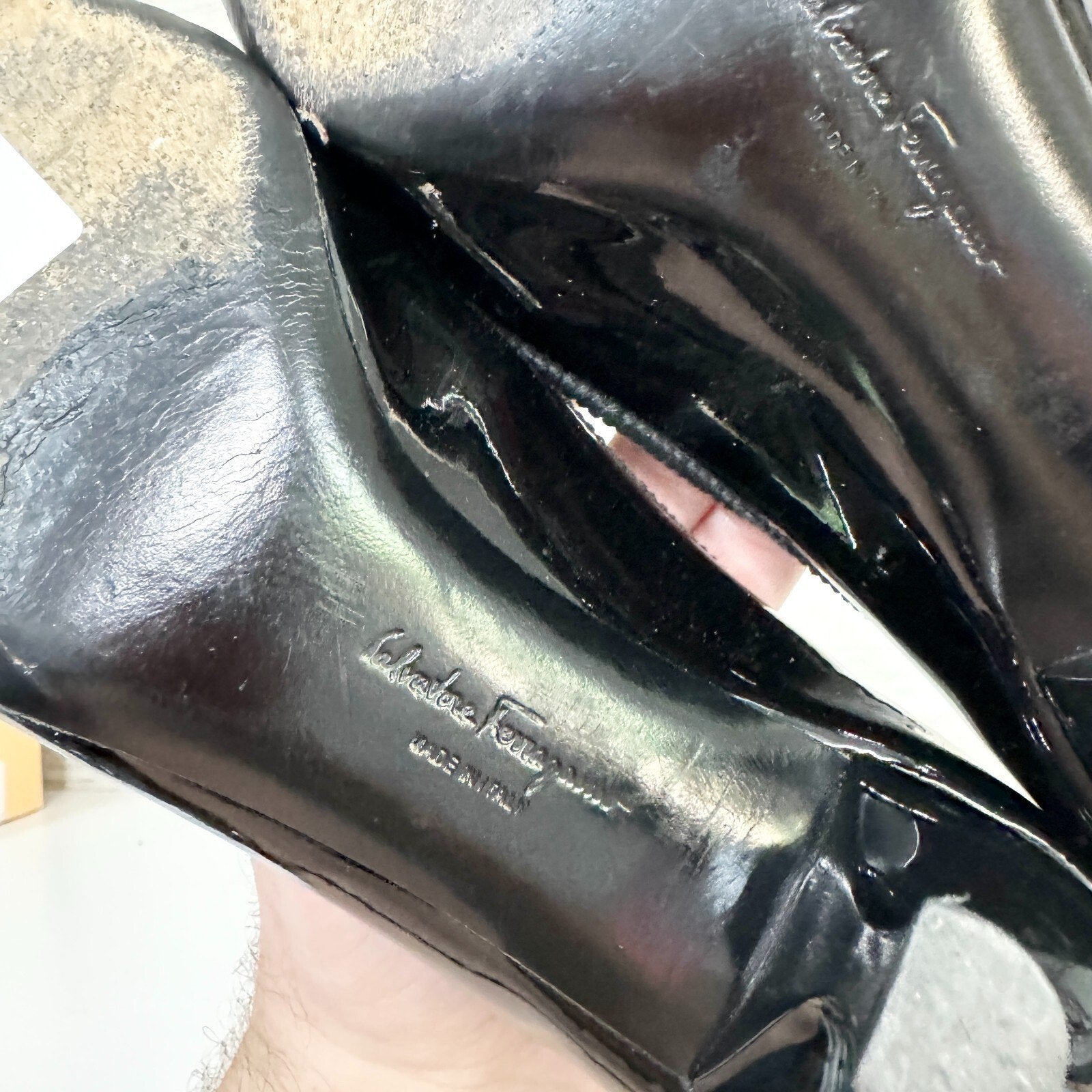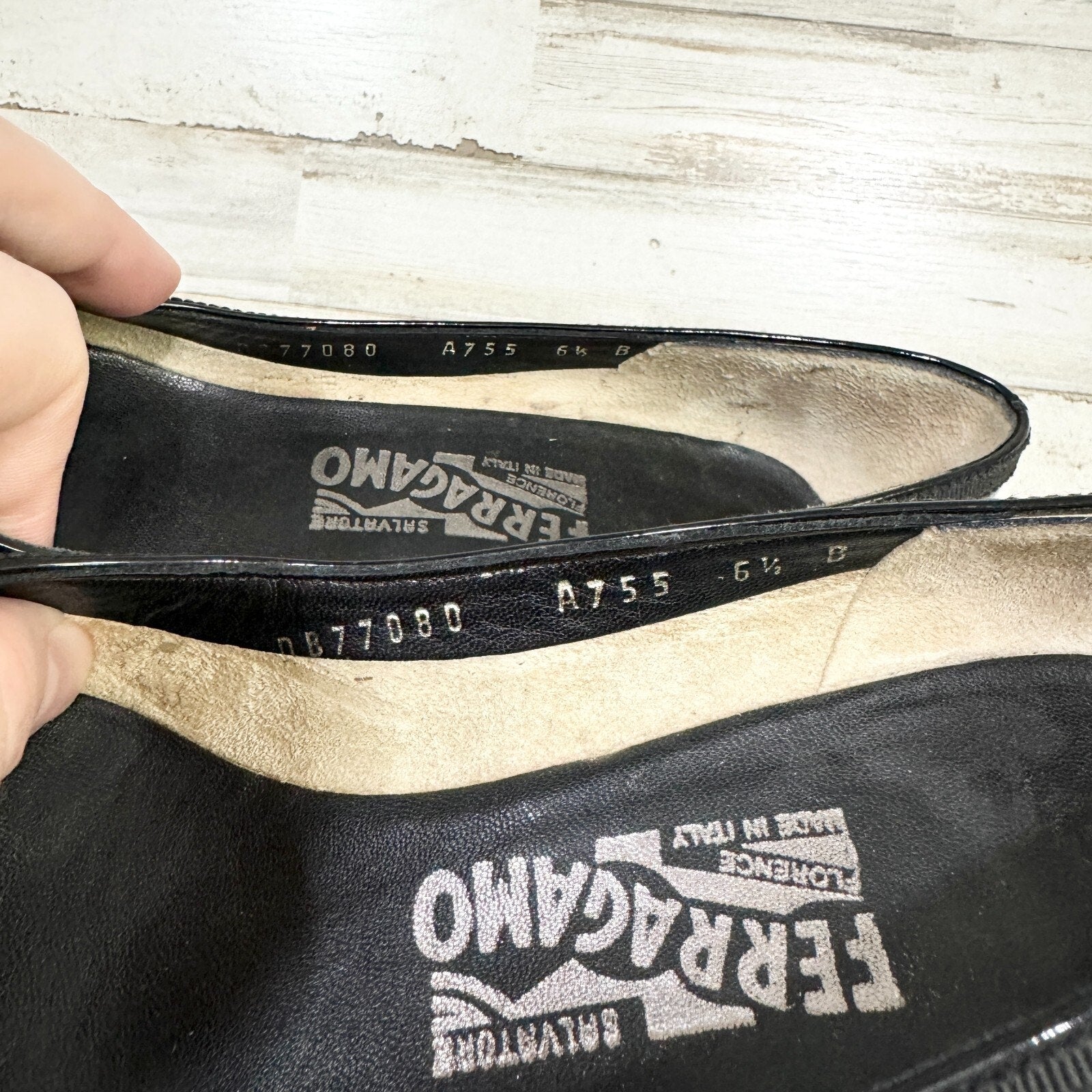Salvatore Ferragamo Heels Women Size 6.5 Grace Black Nero Calf 2 1/2" Bow Stitch