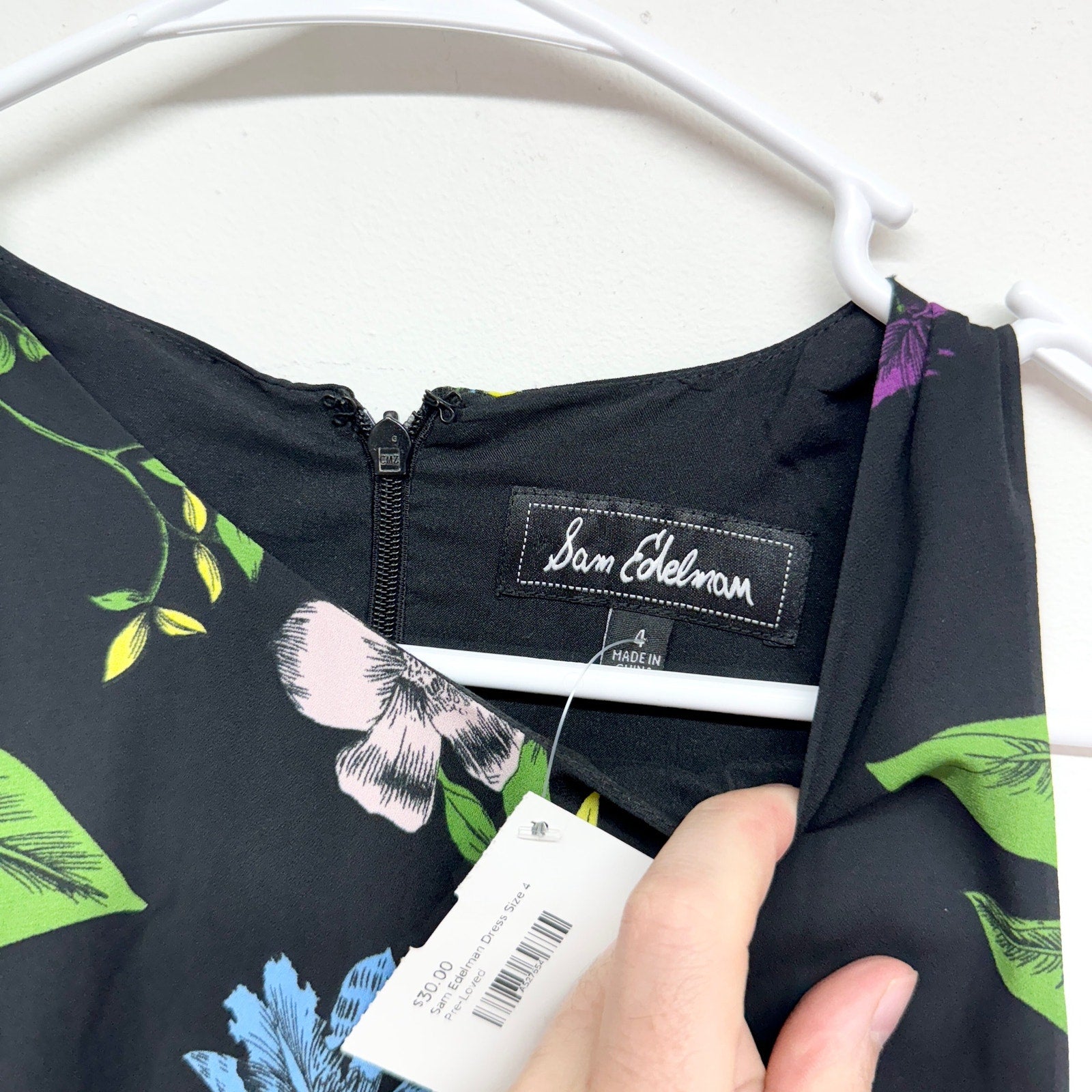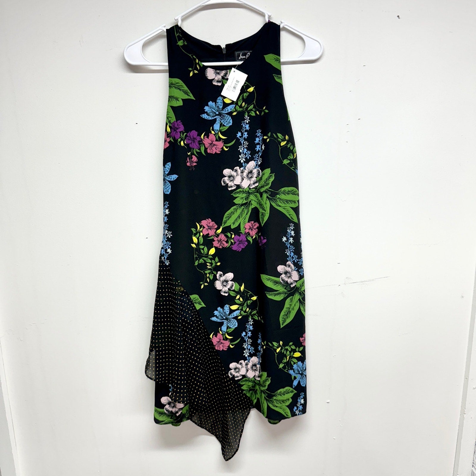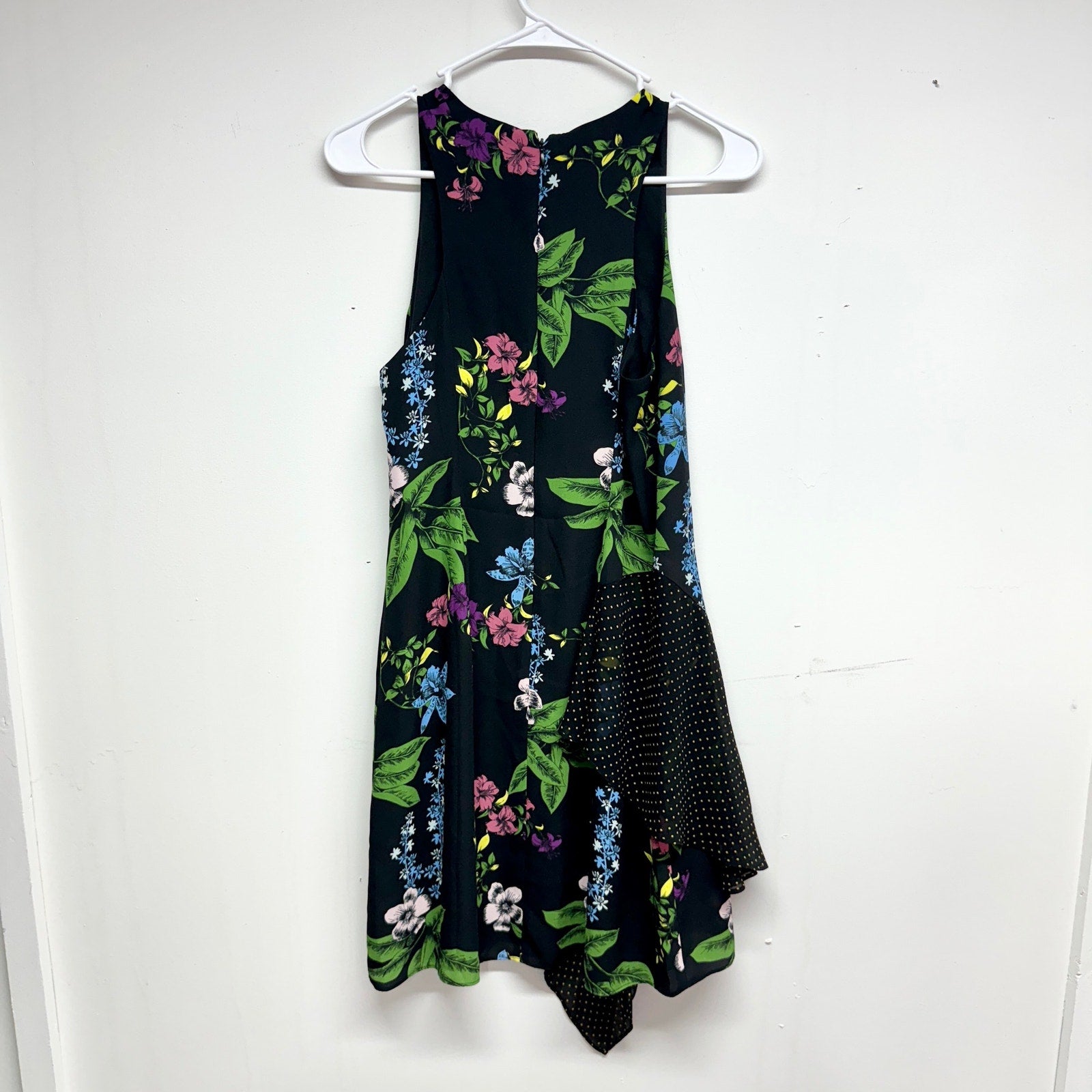 Sam Edelman Women's Black & Floral Sleeveless Mixed Media Side Drape Size 4