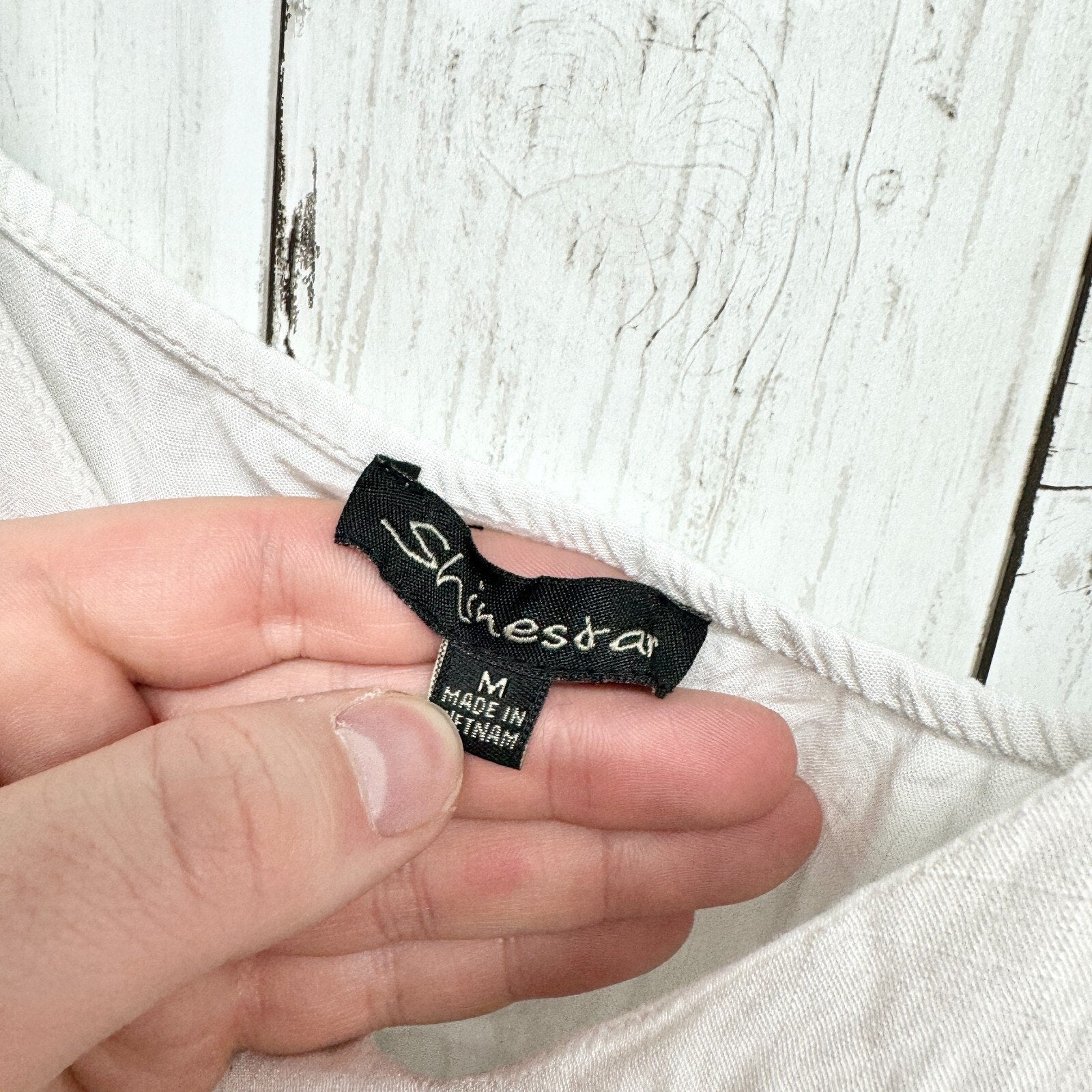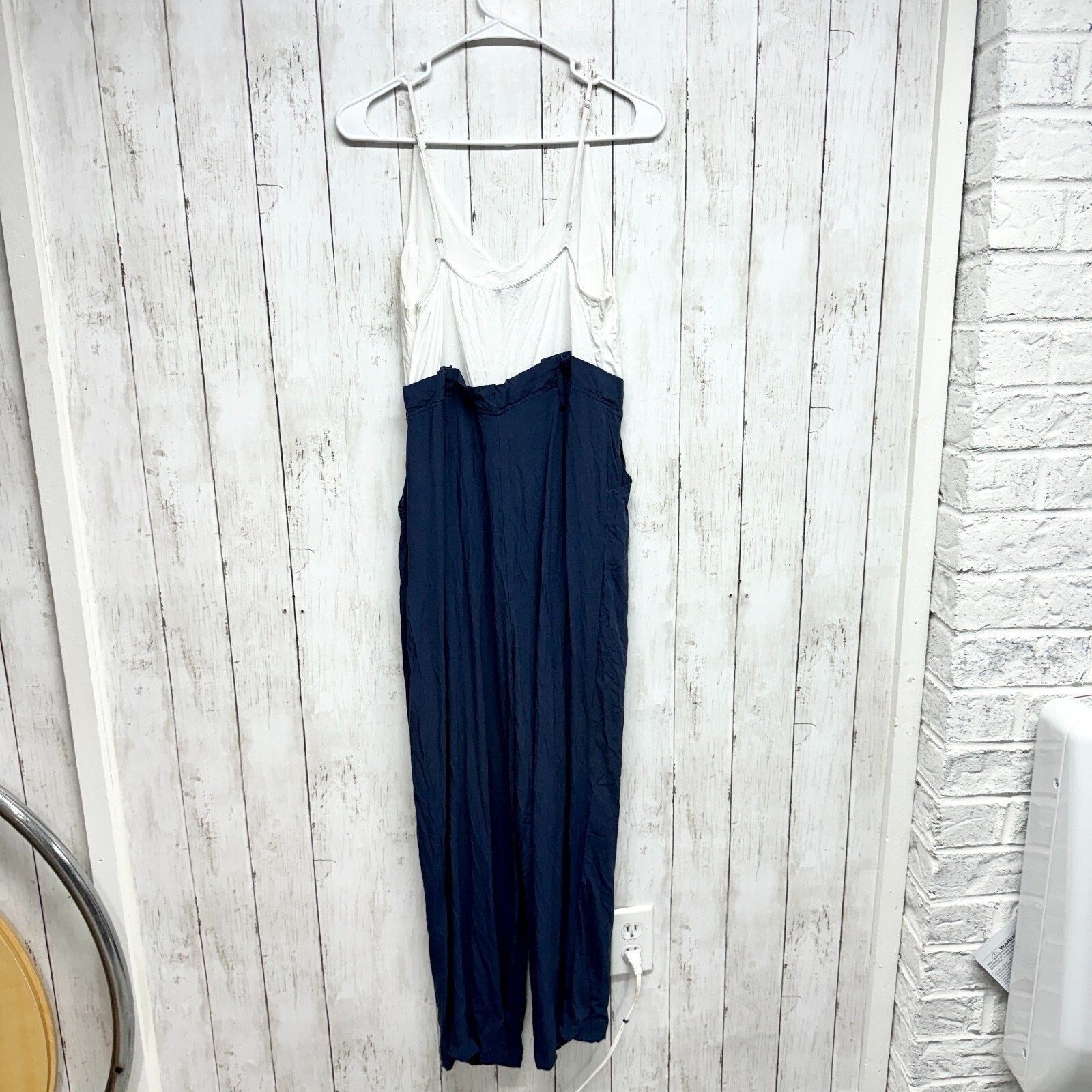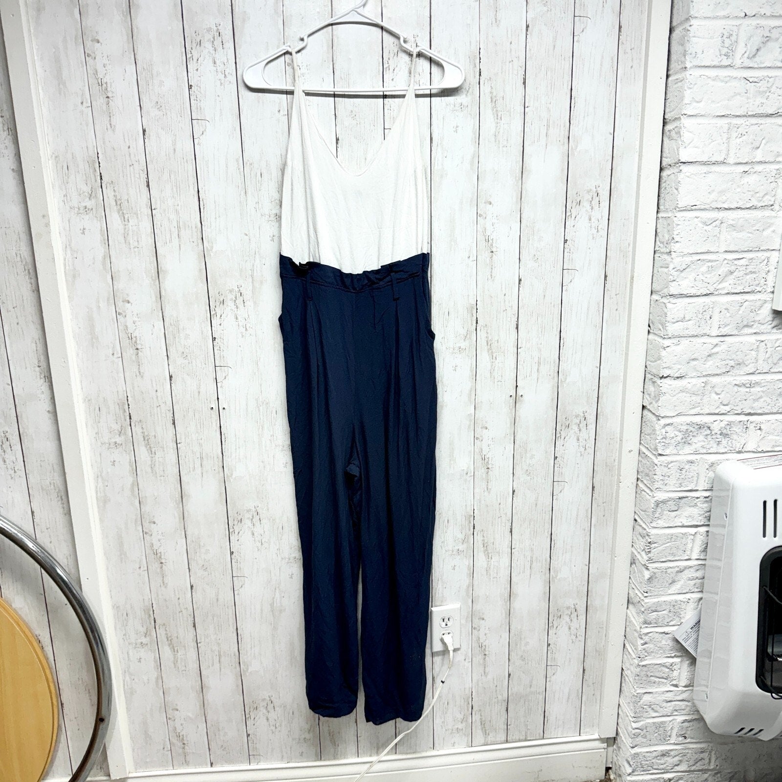 SHINESTAR Jumpsuit Women Size M Sleeveless White & Blue Summer Casual Polyester