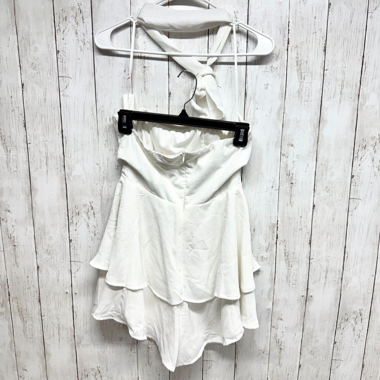 Showpo Romper Women Size 10 White Halter Zip Back Ruffle Short Bridal Wedding