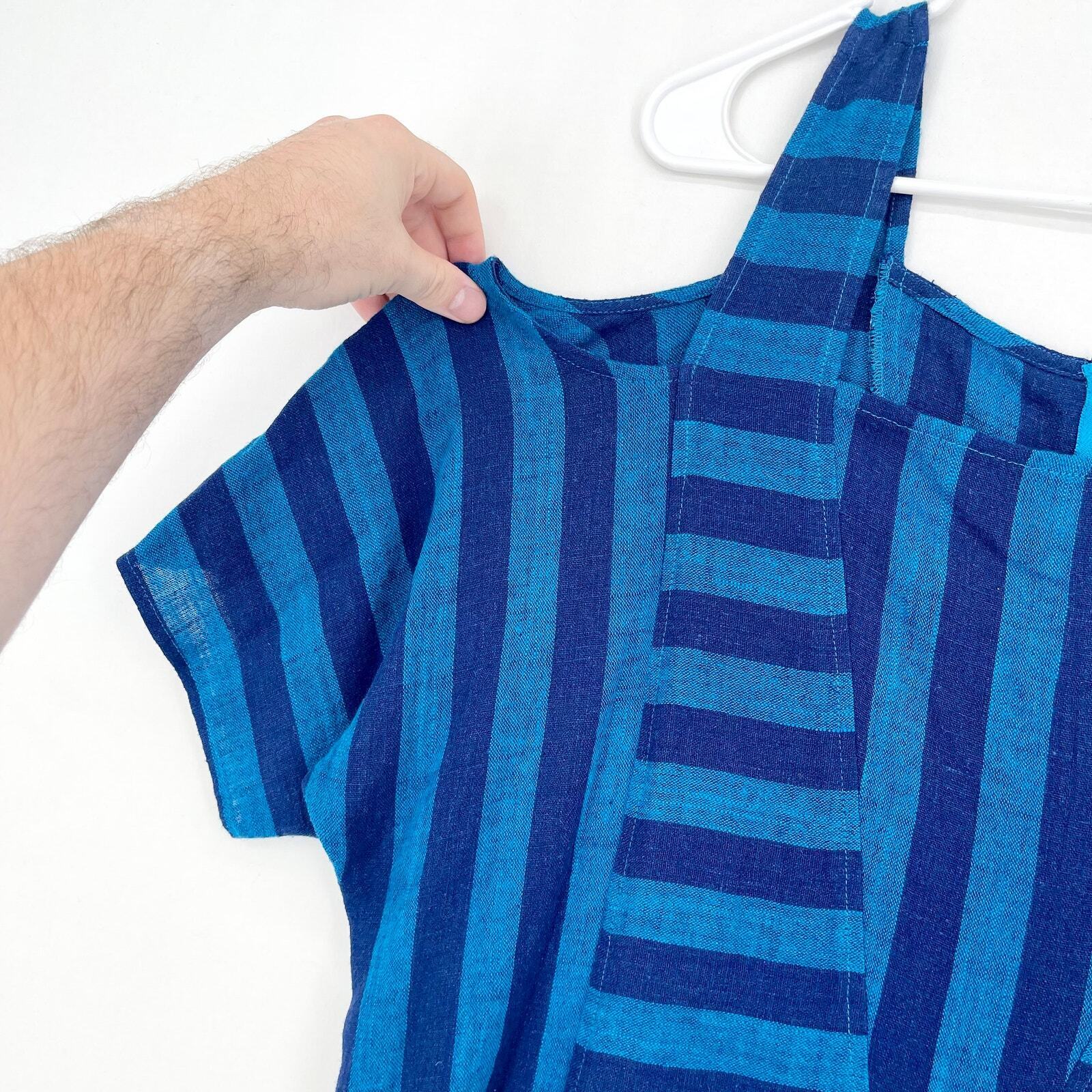Soft Surroundings Cold Shoulder Blue Stripe Tunic Ocean Blouse Size Medium