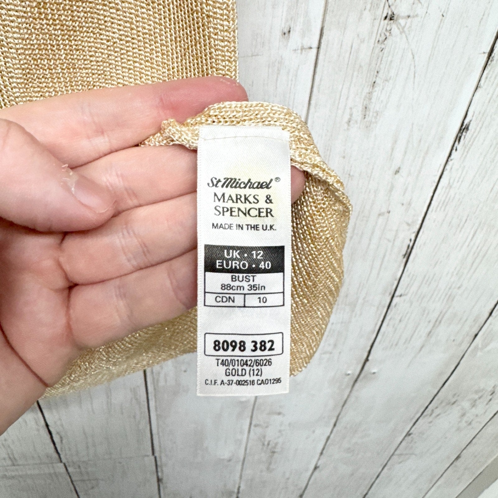St Michael Marks & Spencer Blouse Women Size 12 Gold Knit Short Sleeve Sweater