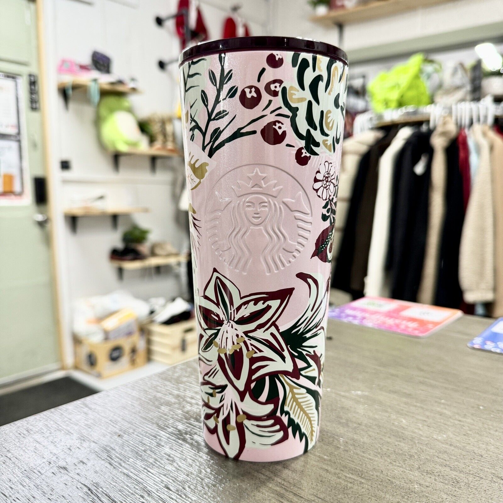 Starbucks Holiday Tumbler 24oz 2022 Pink Enchanted Forest NO STRAW