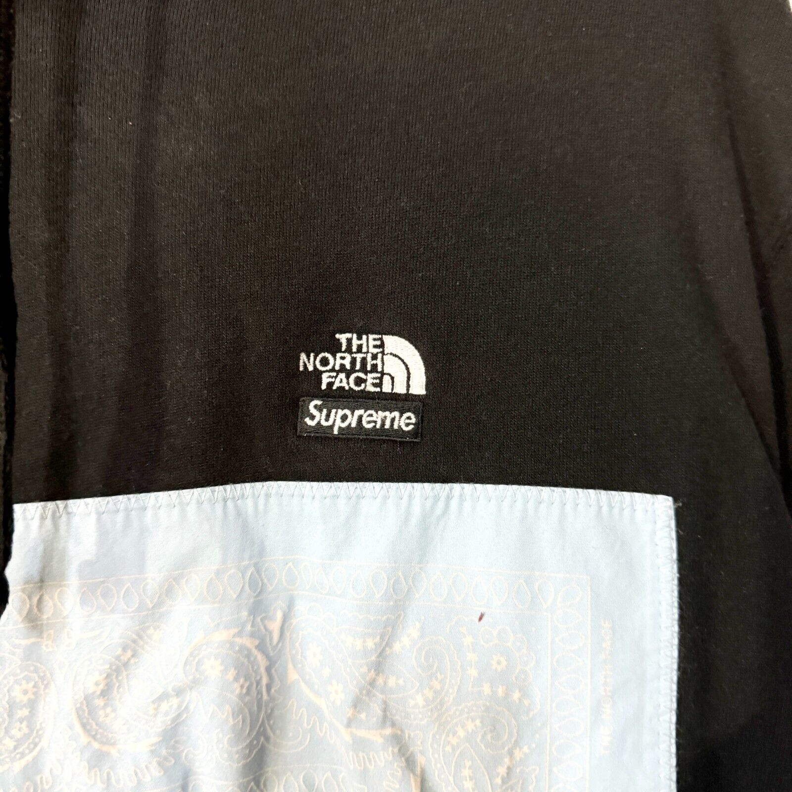 SUPREME X NORTH FACE Hoodie Mens Size Medium Bandana Sweatershirt Black Pocket Collaborative, iconic, limited, design, urban, stylish, exclusive, fashionable, cozy, branded, versatile, premium, essential, popular, collectible
