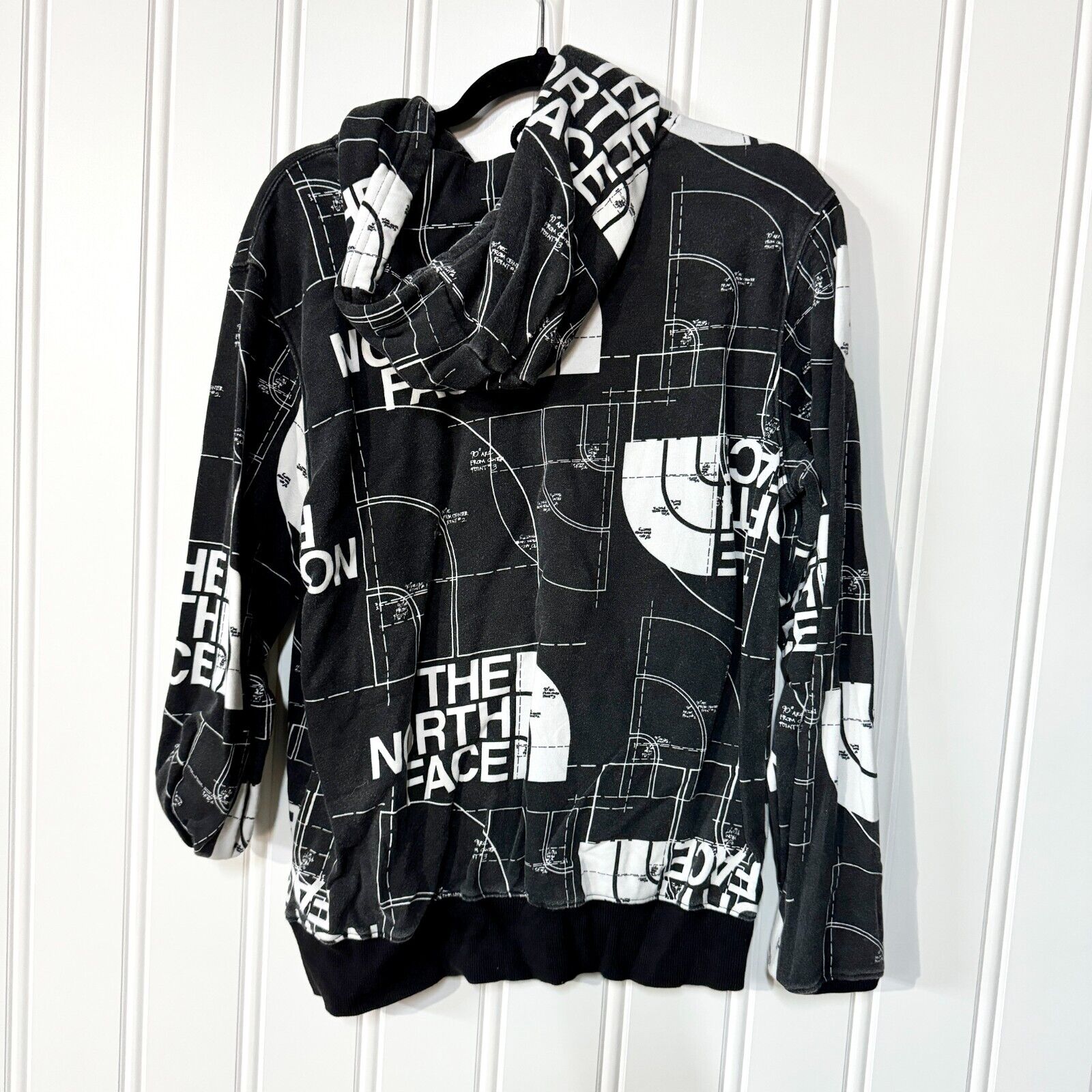 THE NORTH FACE Hoodie Mens Size Small All Over Print Long Sleeve Crewneck Black The North Face hoodie men's size small, black color, all-over print design, long sleeve, crewneck style, comfortable cotton-blend fabric, relaxed fit, casual and outdoors-friendly, durable construction, ideal for layering or standalone wear